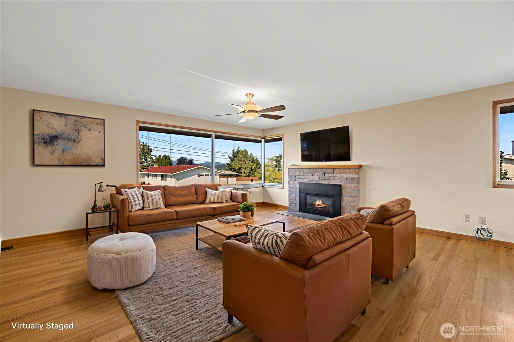 Welcome to your slice of paradise! This charming single-story home with a finished basement offers timeless appeal and breathtaking views of Mount Baker and Padilla Bay through expansive windows, including a stunning large corner window. Nestled in a prime location near town, schools, and the hospital, this well-loved gem combines convenience with serenity. Inside, original hardwood floors gleam, spacious bedrooms provide comfort, and the updated kitchen boasts sleek granite countertops perfect for culinary adventures. Outside you will find mature landscaping, a large detached garage, and expansive driveway offering ample parking for boats or RV's. Meticulously maintained, this move-in-ready home is ready for its next chapter—yours!
