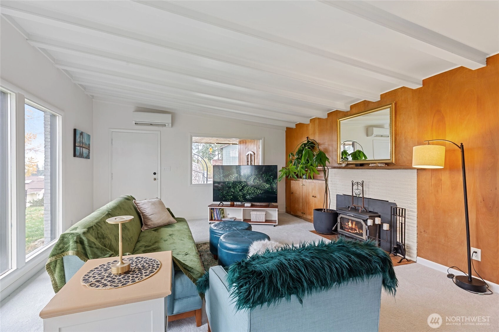 Mid-century gem meets charming one-level living in this inviting home! Enjoy a view of the Strait & Mount Baker from the generous floor-to-ceiling windows that fill the home w/tons of natural light.Designed with comfort & functionality in mind, this home features three bedrooms, and large bonus room offering flexible room options.The eat-in kitchen offers a warm, welcoming space.The large yard boasts room to garden, play, or relax.Brand new roof, new carpets and new water heater provide peace of mind. Spacious storage room. Ductless mini-split for A/C comfort & efficiency.Situated in a prime location in a desirable “Up the Hill” neighborhood, close to schools, parks, and in-town amenities making it an ideal blend of convenience & serenity.