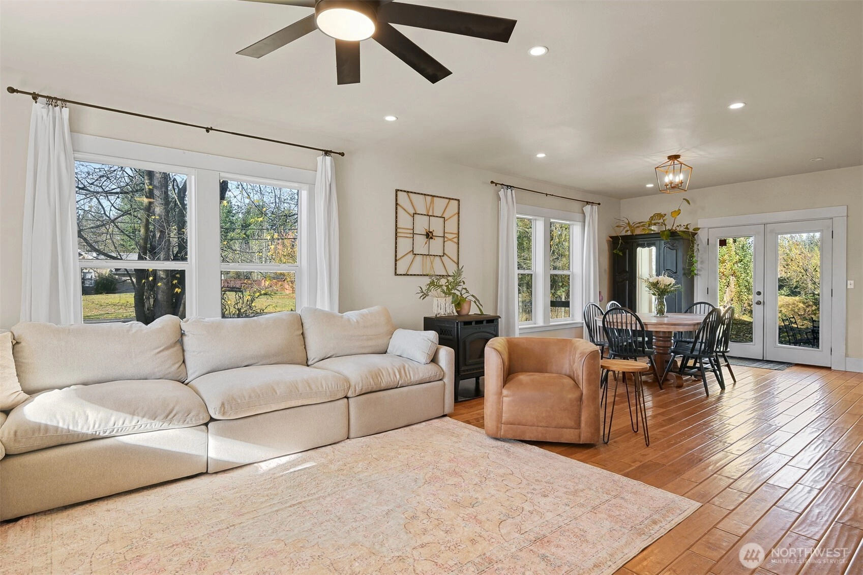 Discover the lifestyle you’ve been dreaming of in this classic, updated farmhouse on 5 expansive acres! Beautiful wood floors flow throughout, spacious main level, featuring large bright kitchen, walk-in pantry, dining area with/ cozy pellet stove, inviting living room, & versatile den, great for entertaining! 3 bedrooms w/ large full bath conveniently located upstairs, filled with natural light. Outside, enjoy open space for gardening, animals, shop perfect for hobbies, storage, or workspace. Fenced backyard w/ patio, plenty of room & potential to add detached ADU, this property offers flexibility & future opportunity. Country serenity meets modern comfort - minutes from town, & easy freeway access, this is the one you’ve been waiting for!
