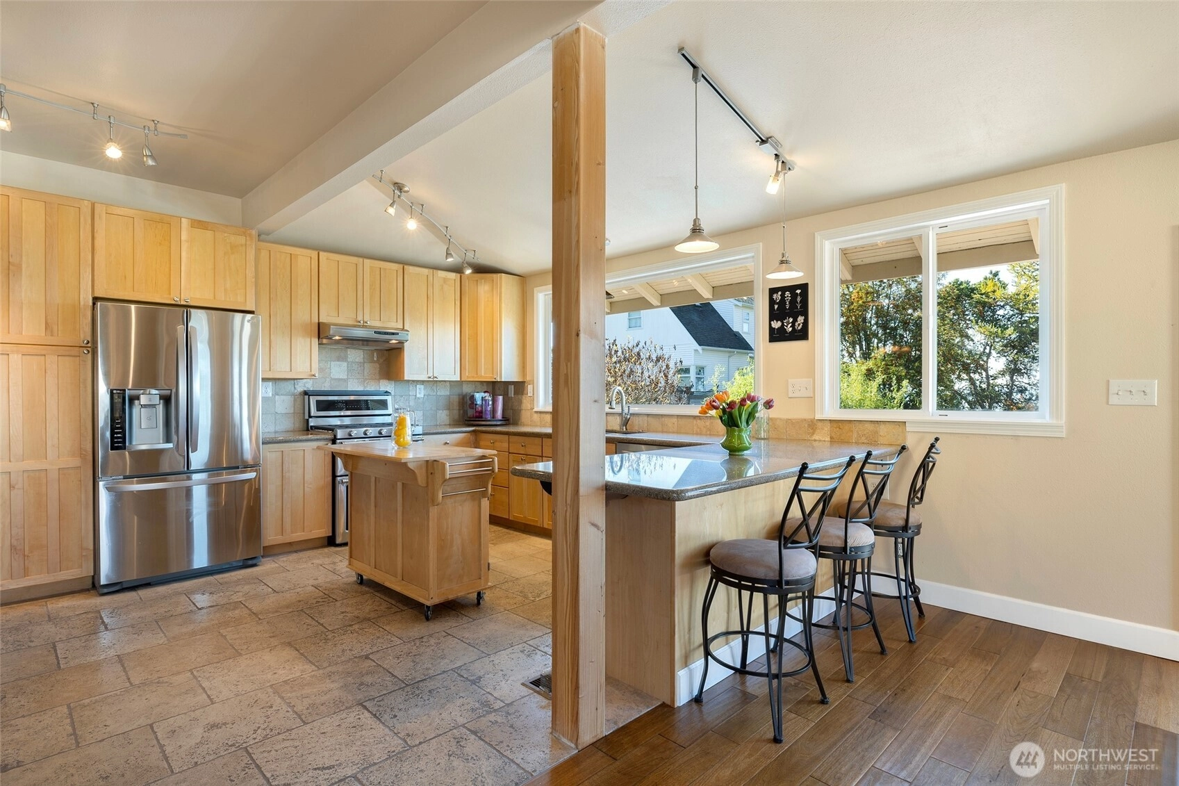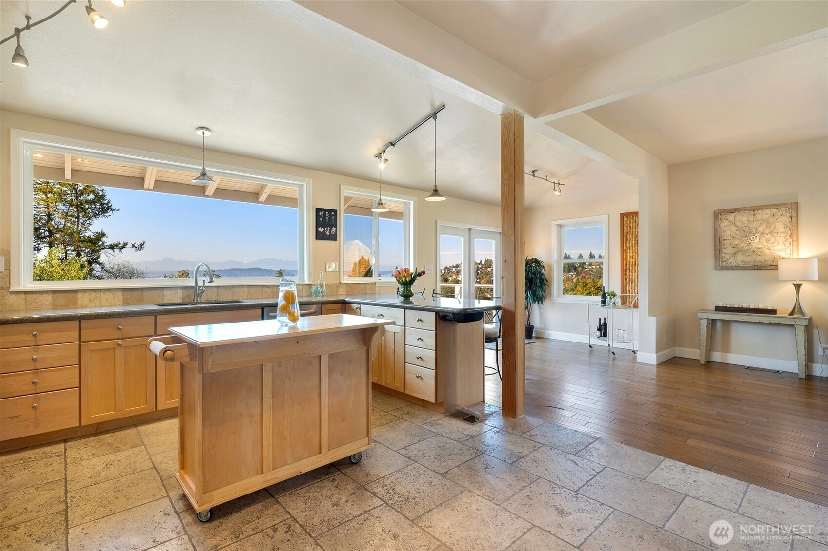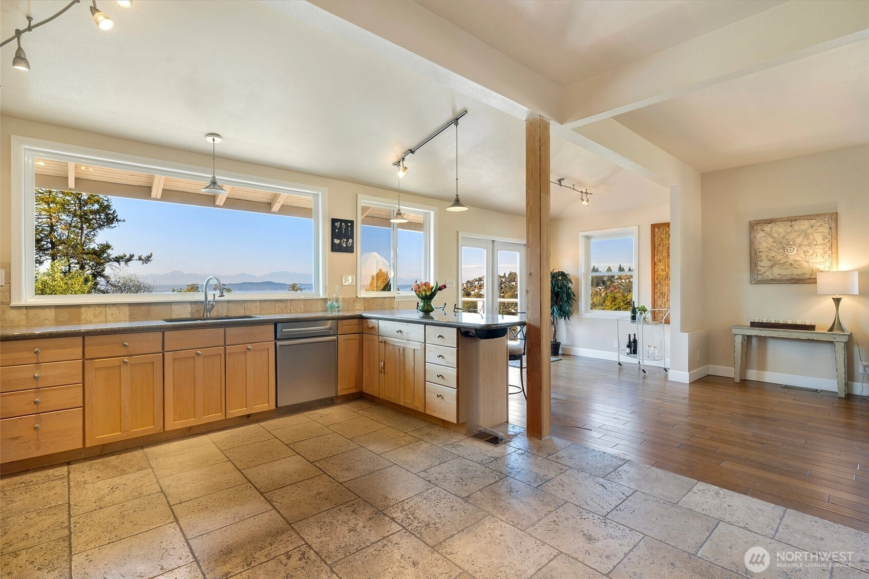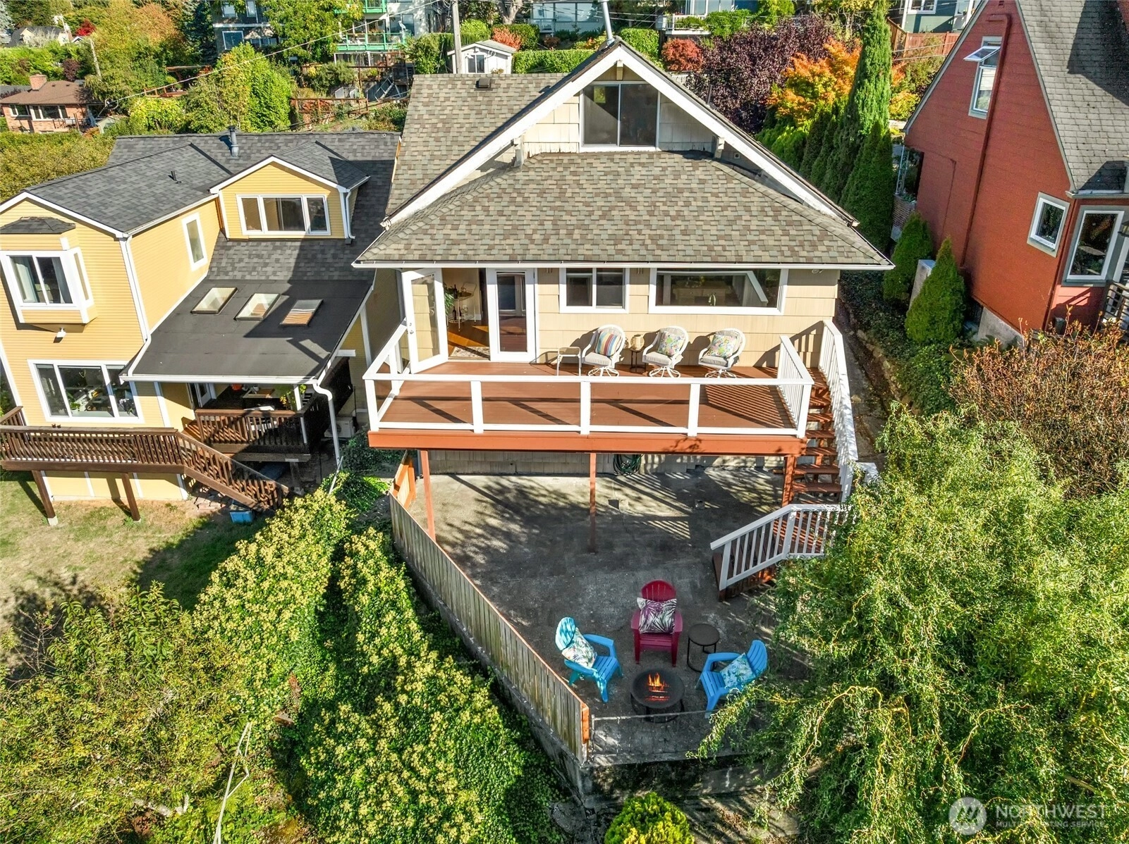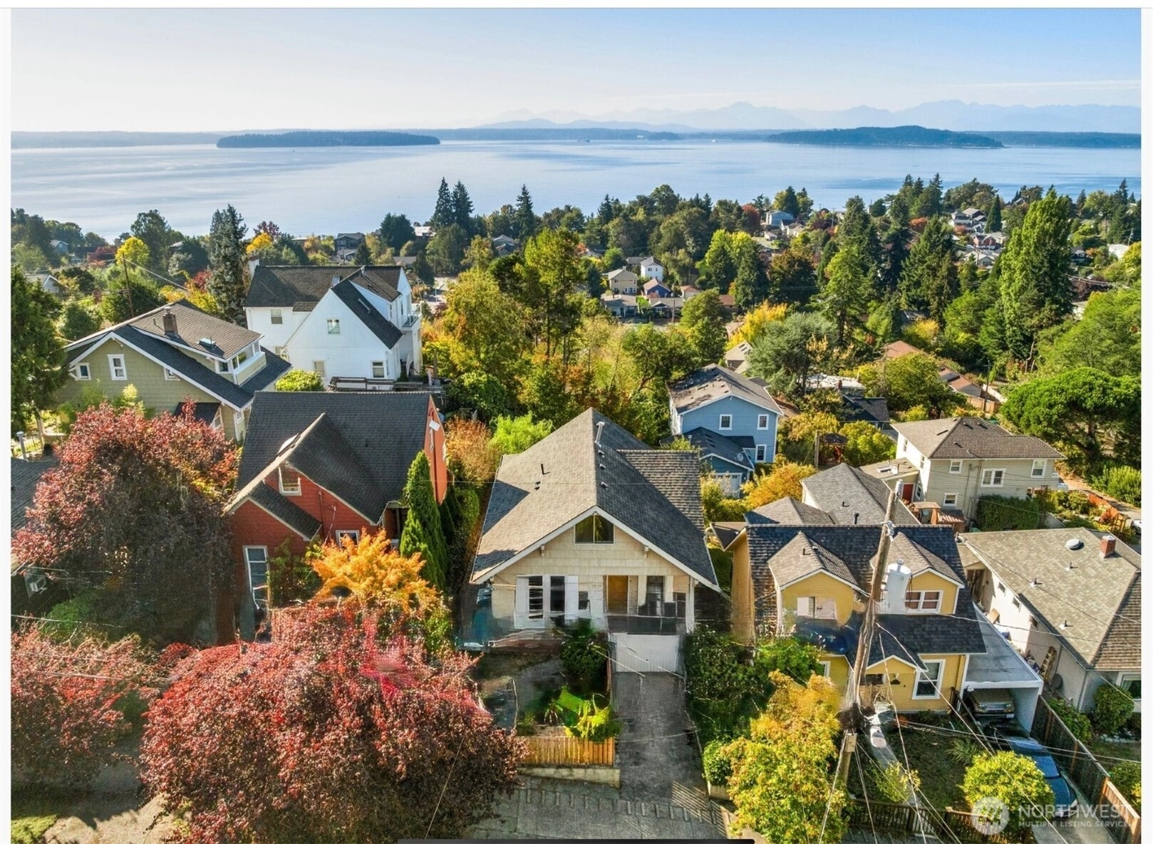 Huge Price Reduction, great opportunity. Come see this Seaview stunner with views from every floor. The main floor was made for entertaining with a wall of windows to capture the incredible Sound views. The large open kitchen with bar seating adjoins the dining area with the double-sided fireplace all steps away from the french doors and large deck. Kitchen also offers dual fuel range. Upstairs, take in the views from the primary suite with 3/4 bath. Upstairs has a flex room that has potential for 3rd bedroom/playroom or office? Downstairs is where the extra potential is. Open view basement with walk-out door leading to patio with views, great for extra rooms or MIL? Located close to The Junction or walk down to the beach.