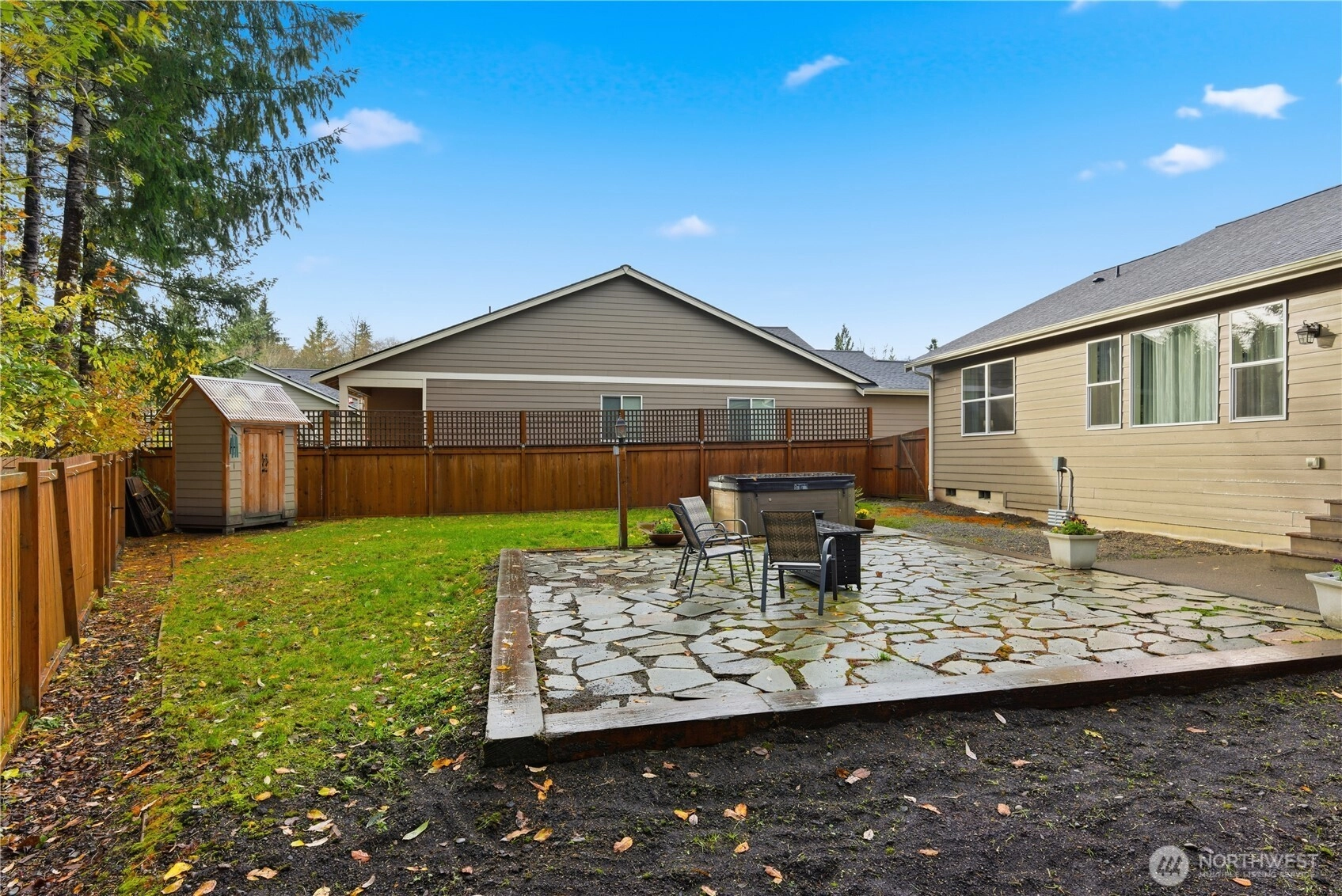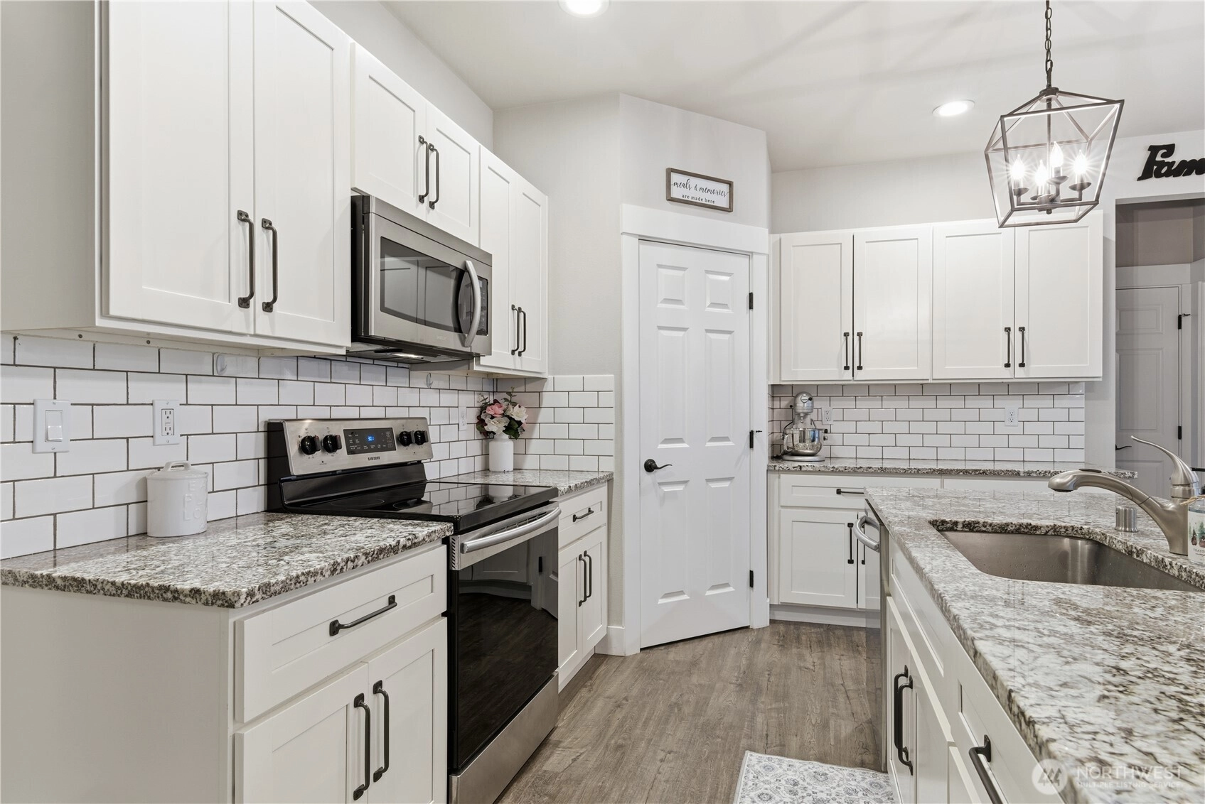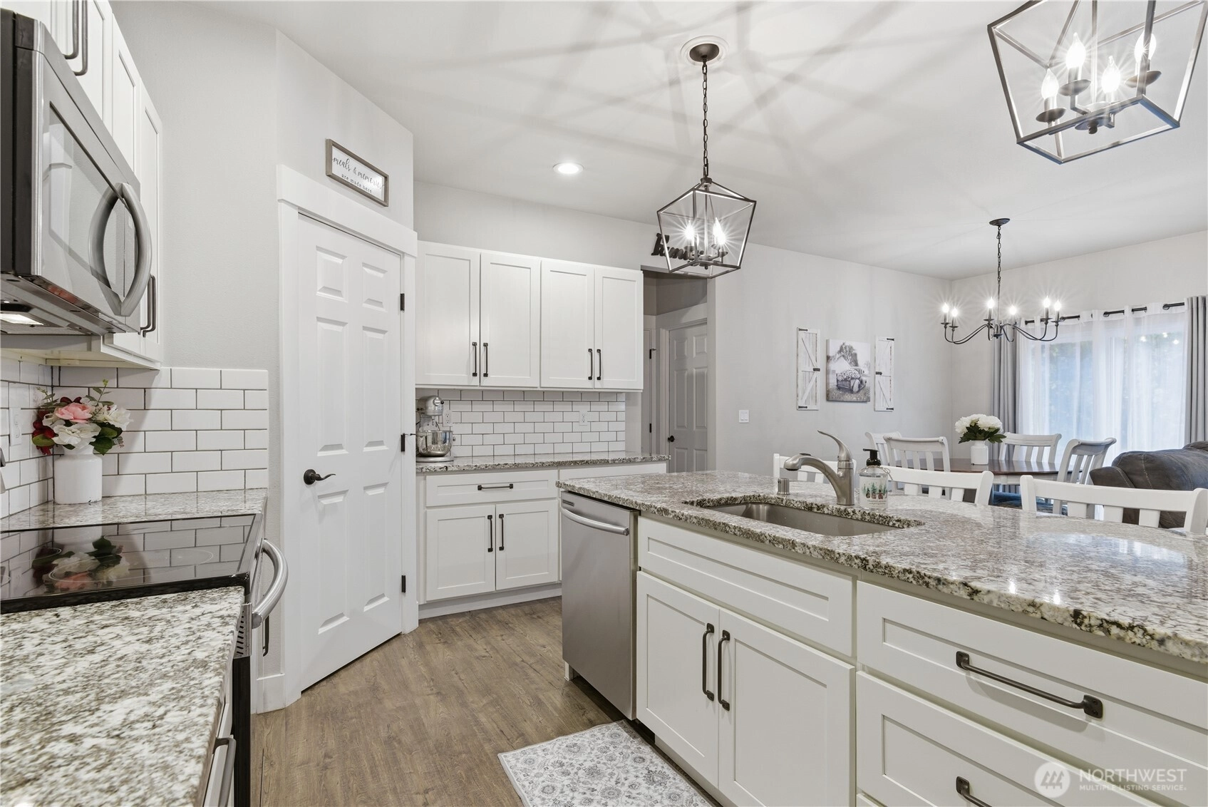 Modern style, thoughtful design, and a tranquil natural setting in this 3-bedroom, 1.75-bath rambler, offering a perfect blend of comfort and privacy. Deluxe craftsman-style design with a three-car garage & well-maintained landscaping, including hot tub. The open-concept living area welcomes you with abundant natural light, neutral tones, and elegant finishes. The spacious living room flows seamlessly into the dining area, making it ideal for both relaxing and entertaining. Granite countertops, white shaker cabinets, stainless steel appliances, and a large island with bar seating. The primary suite includes a private bath with modern fixtures and walk-in closet. Two additional bedrooms provide flexibility for guests, an office, or hobbies.