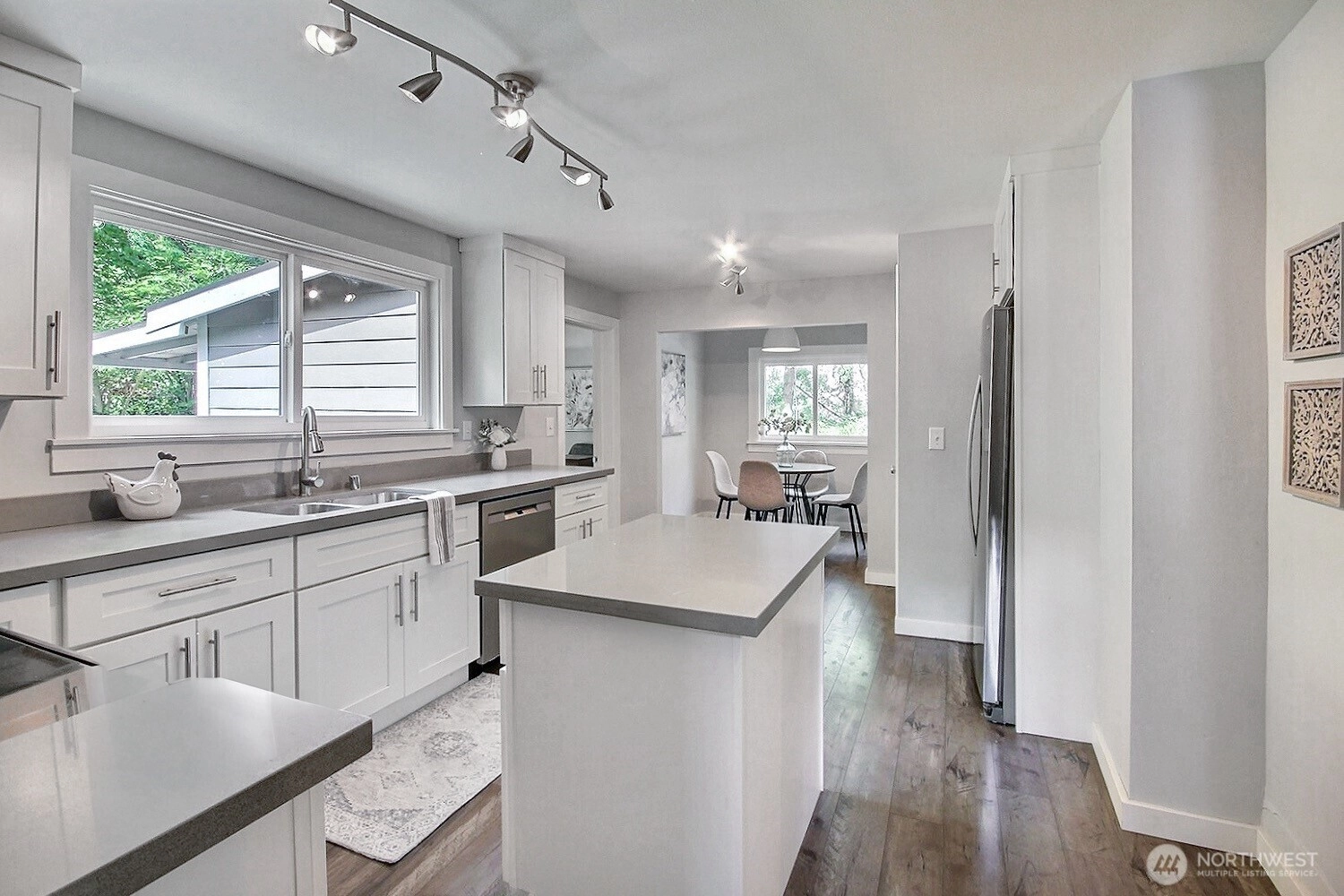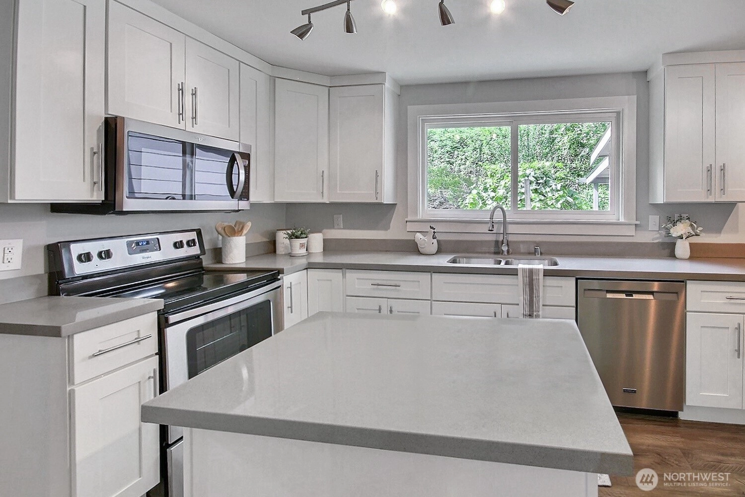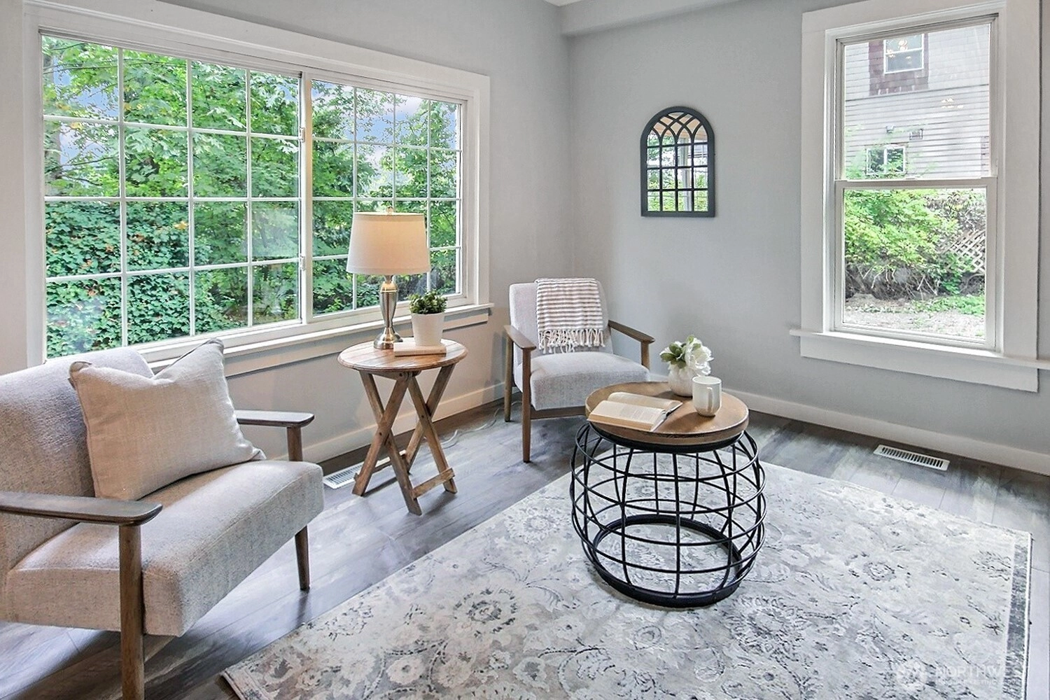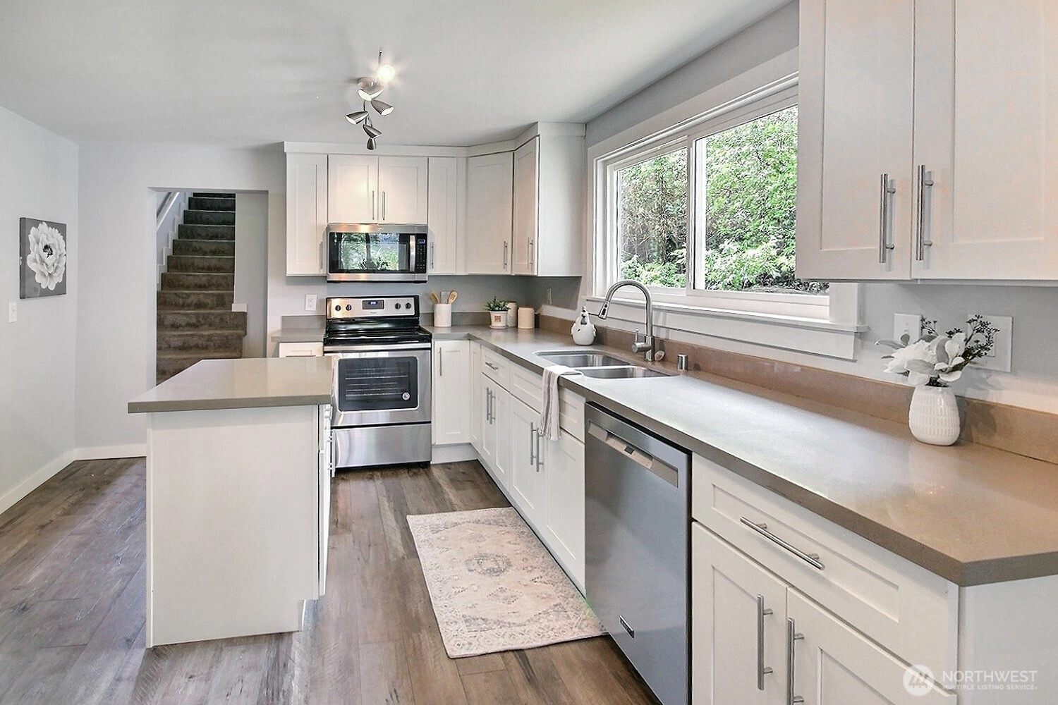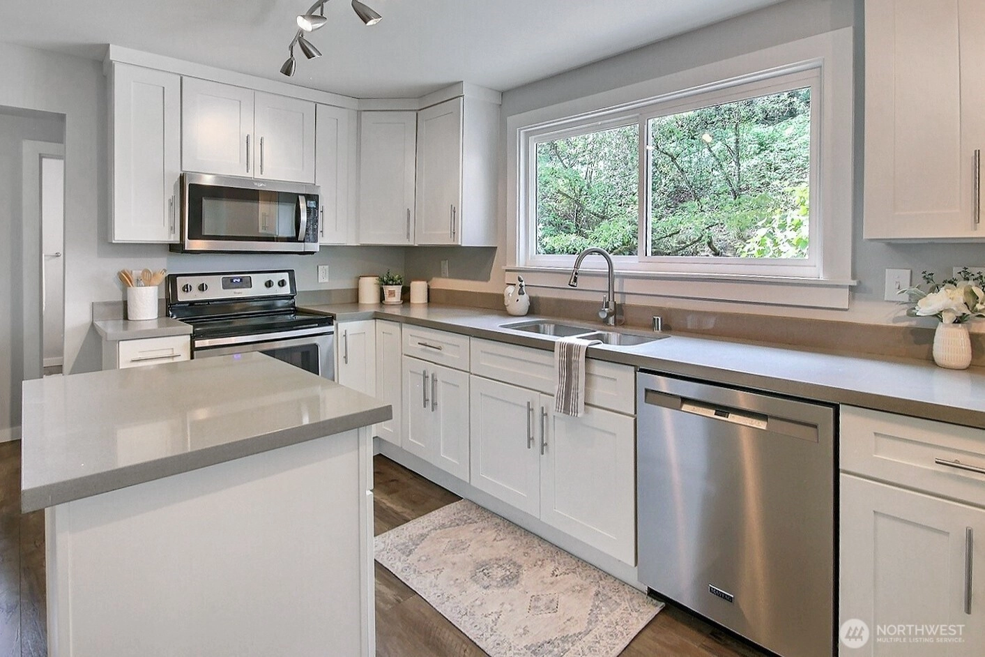 The best of both worlds, privacy and a prime location! This fully remodeled 3 bed, 1.75 bath home sits on a shy ½ acre, nestled among the trees. Updated in 2019 and move in ready, it features a spacious island kitchen with quartz counters and stainless appliances, a light filled living room, and fresh interior paint on the main level. Enjoy outdoor living with a wraparound front deck and covered back patio. Plenty of parking. Just 10–15 mins to Downtown Seattle, 10 mins to the airport, and 5 mins to shopping and dining!