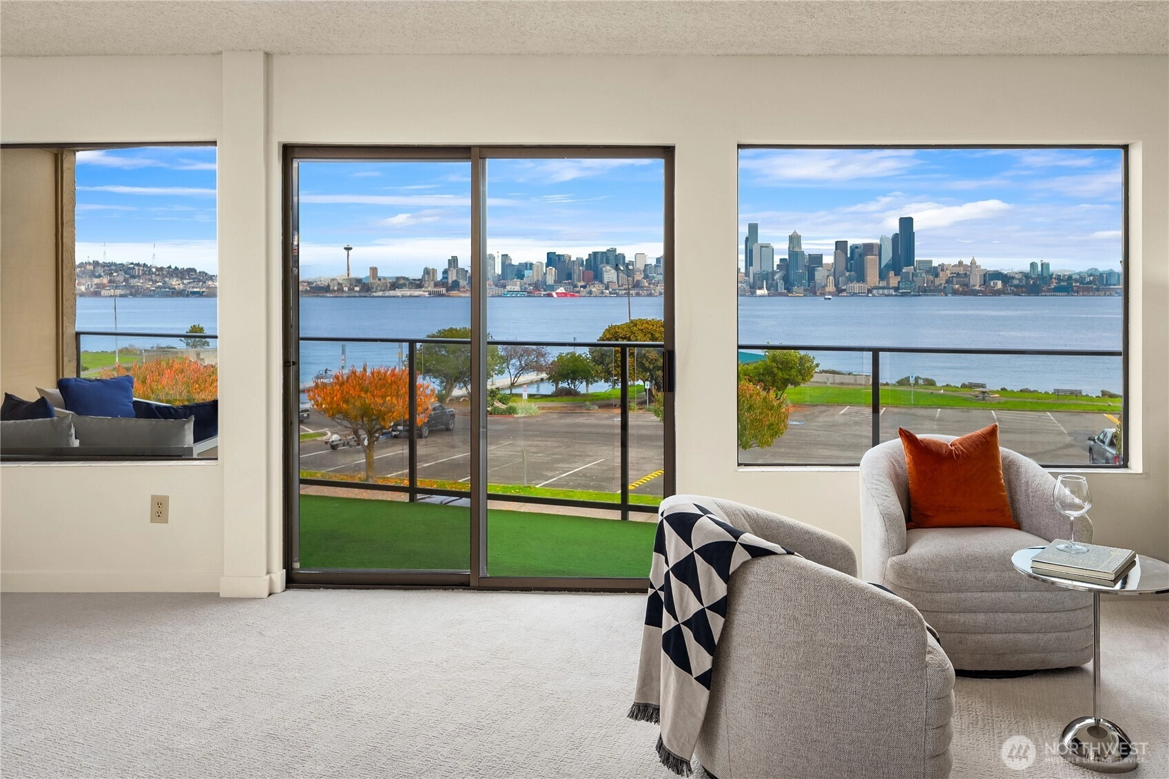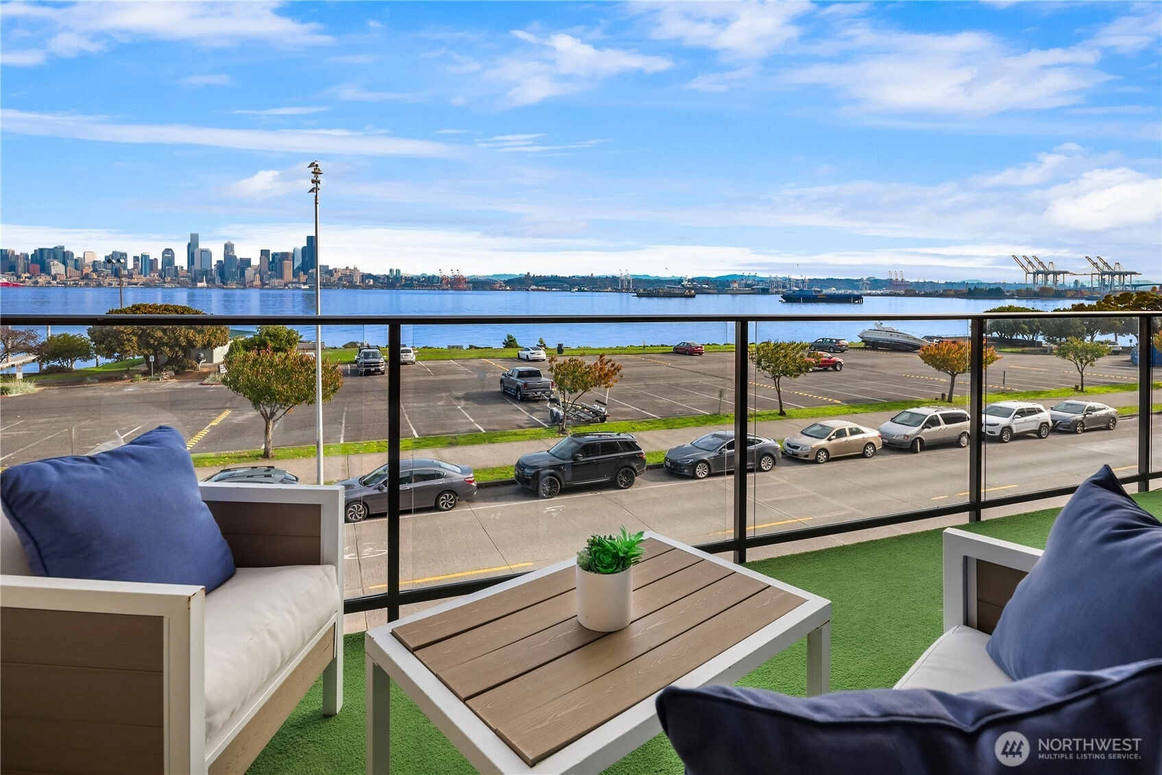 Wireless views of Elliott Bay, the city & mountains abound from this beautiful beach condo! This spacious 2 bed / 1.75 bath unit will not disappoint, featuring a host of updates including new flooring, fresh paint, quartz counters, 1-year old water heater, gas fireplace & more. Enjoy an open concept layout with entertainment sized living & dining spaces, a covered view deck & a thoughtful kitchen with breakfast bar. The bedrooms are generous, with the primary featuring a huge walk-in closet & en-suite bath with double-sinks. Exceptional storage - including 3 storage units - plus 2 dedicated parking spots in a secure garage. Well run HOA & coveted West Seattle location near the Water Taxi, Marination Ma Kai, Alki beach & more. Welcome home!