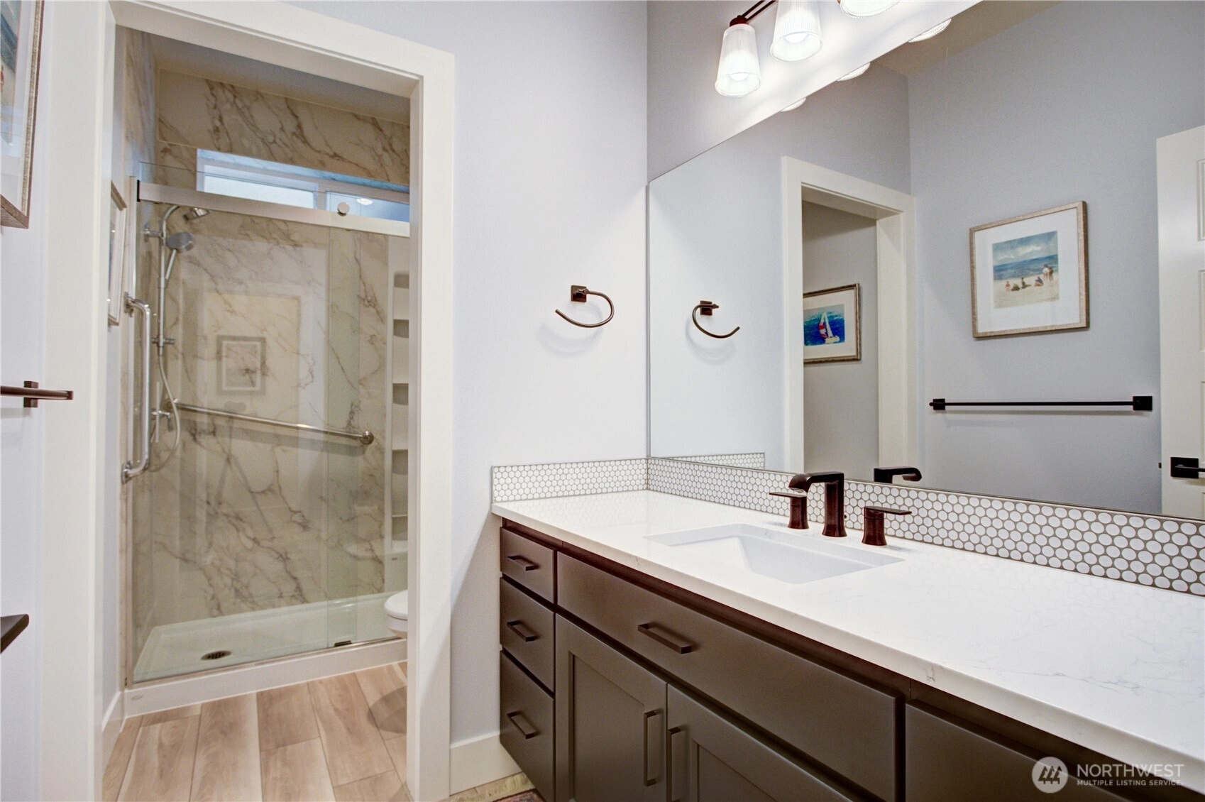 At the Highest Point in the Reserve at Enchantment in the Highly-Desired Glenmore Community), this 1.03 Acre, 2,873 Sq Ft, 3 Bed, 2 Bathroom (One Full, One 3/4) Rambler w/ a Bonus Room offers a Private, Park-Like Retreat with Glimpses of the Olympic Mountains & Memorable Sunsets. Over $175,000 in upgrades deliver Comfort, Security, and Style - from a Chef’s Kitchen w/ Quartz Countertops & Stainless Steel Appliances to Spa-Inspired Baths, a Whole-House Generac Generator, an Air Purification System + Curated Landscaping. Enjoy One-Level Living, a Bonus Room, an Indoor/Outdoor Fireplace & a Fenced Garden Retreat. Intelligent Systems, Thoughtful Finishes & a Resilient Setting make this home a standout in a community of 21 Farm-Style Residences.