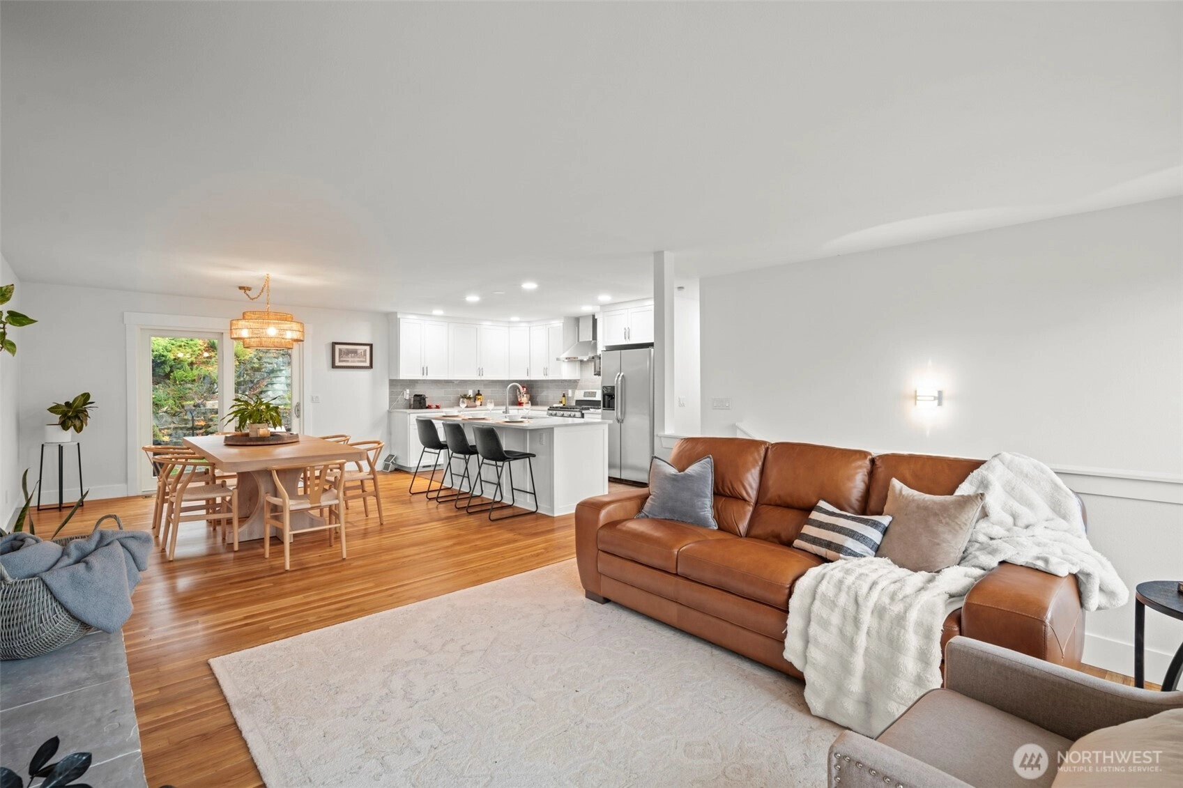 Beautifully updated! Enjoy a stunning chef’s kitchen featuring large island w/seating, tile backsplash, SS appliances, & pantry. Open-concept, gorgeous hardwoods, & spacious dining room for entertaining. Cozy up to 2 fireplaces, one on each level. This home boasts Primary suite w/2closets & 3/4 bath, 2 guest bds w/balcony access. Unique lower level, ADU incl kitchen, dining, full bath, bdrm, & large family room, or downstairs office/flex space. Tranquil backyard w/view area above, stone pathways, terraced planting beds, sprinkler system & large shed. Views of the Sound! Port Package! Roof & HVAC less than 2 yrs old, 2 car insulated grge, A/C, RV parking. Easy access to I-5, shopping, & Des Moines Creek Trail! Pre-Inspected & move in ready!