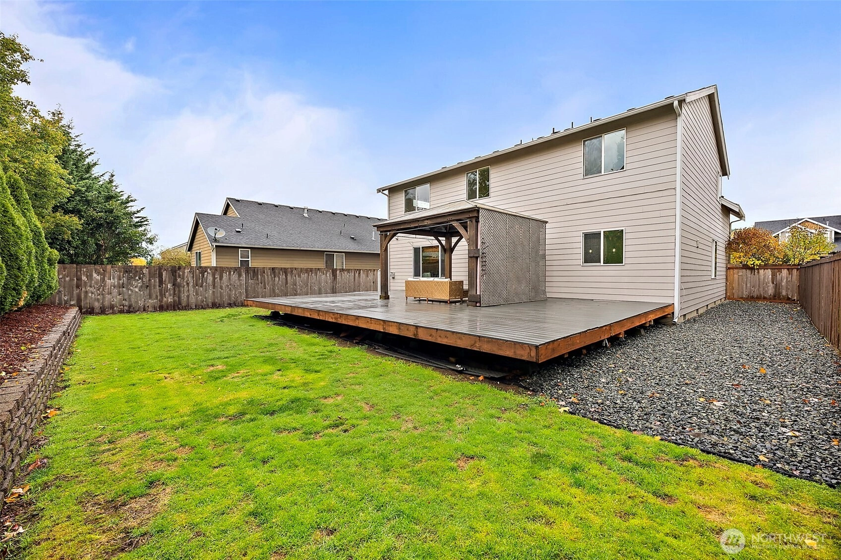 Imagine moving into this fully refreshed home, ready to gather friends for the holidays, in a small town with a Big View and a Big Heart. Orting is a lifestyle--full of community, Friday Night Lights, loud basketball games, beautiful parks, the BEST mountain view! This beautiful home has 4 huge bedrooms, plus bonus room, main floor with two living room spaces and two dining spaces, super large back trex deck w/ gazebo, fully fenced for your furry family. New full exterior and interior painting (check that off a to-do list), hand scraped look LVT floors (easy care), stainless appliances stay (new microwave), check out all the garage storage racks for all your stuff, new lighting throughout. This one checks everything on your list!