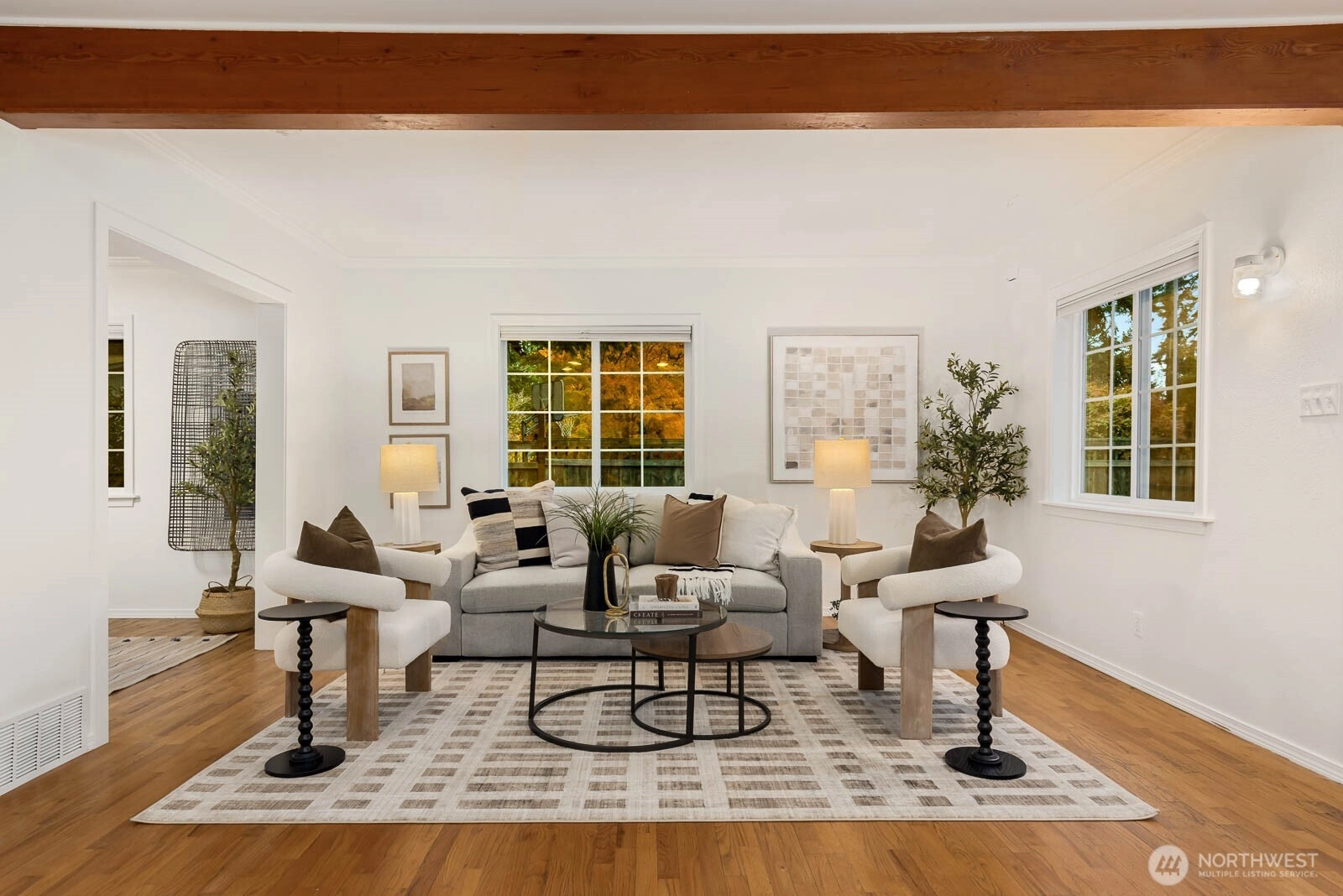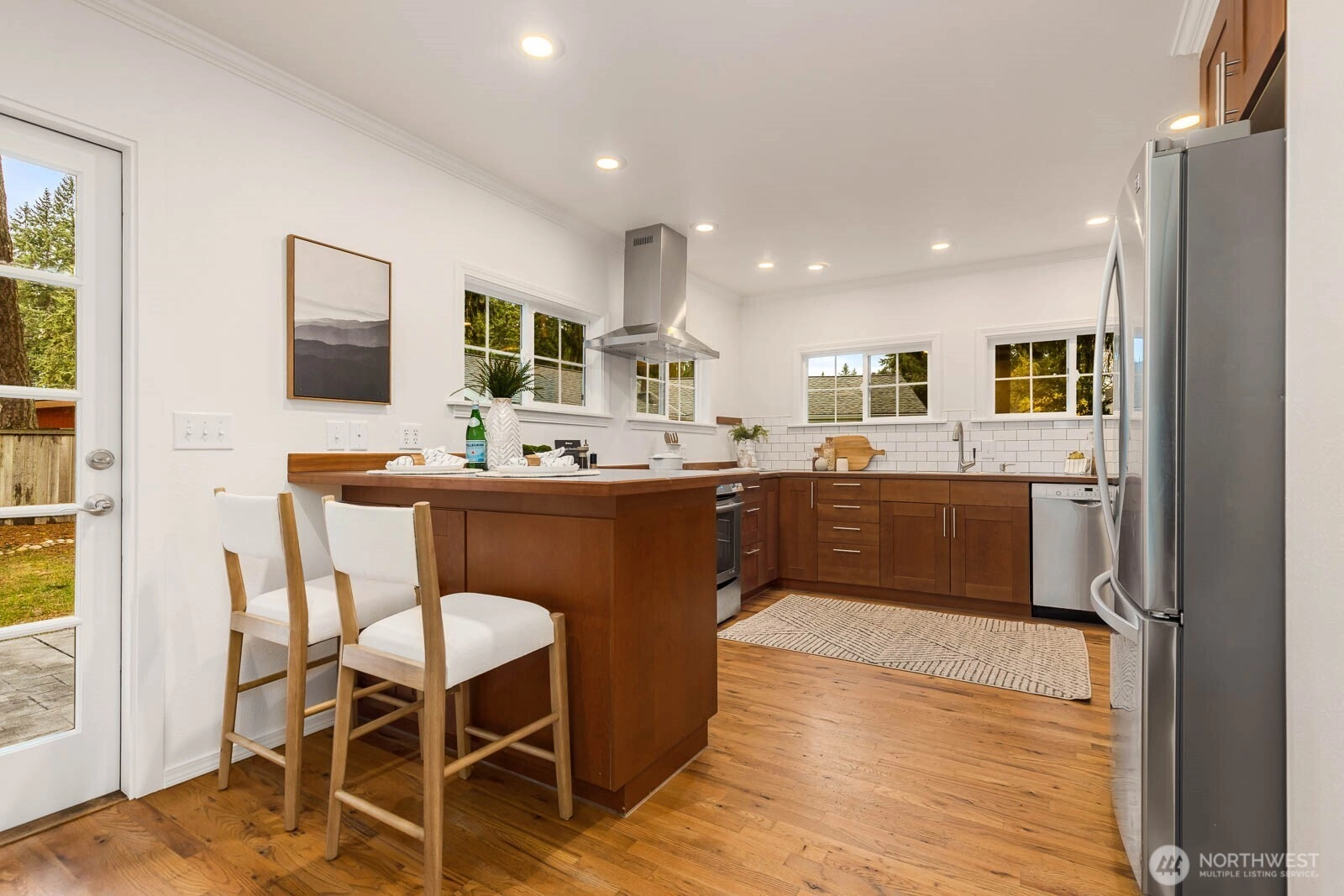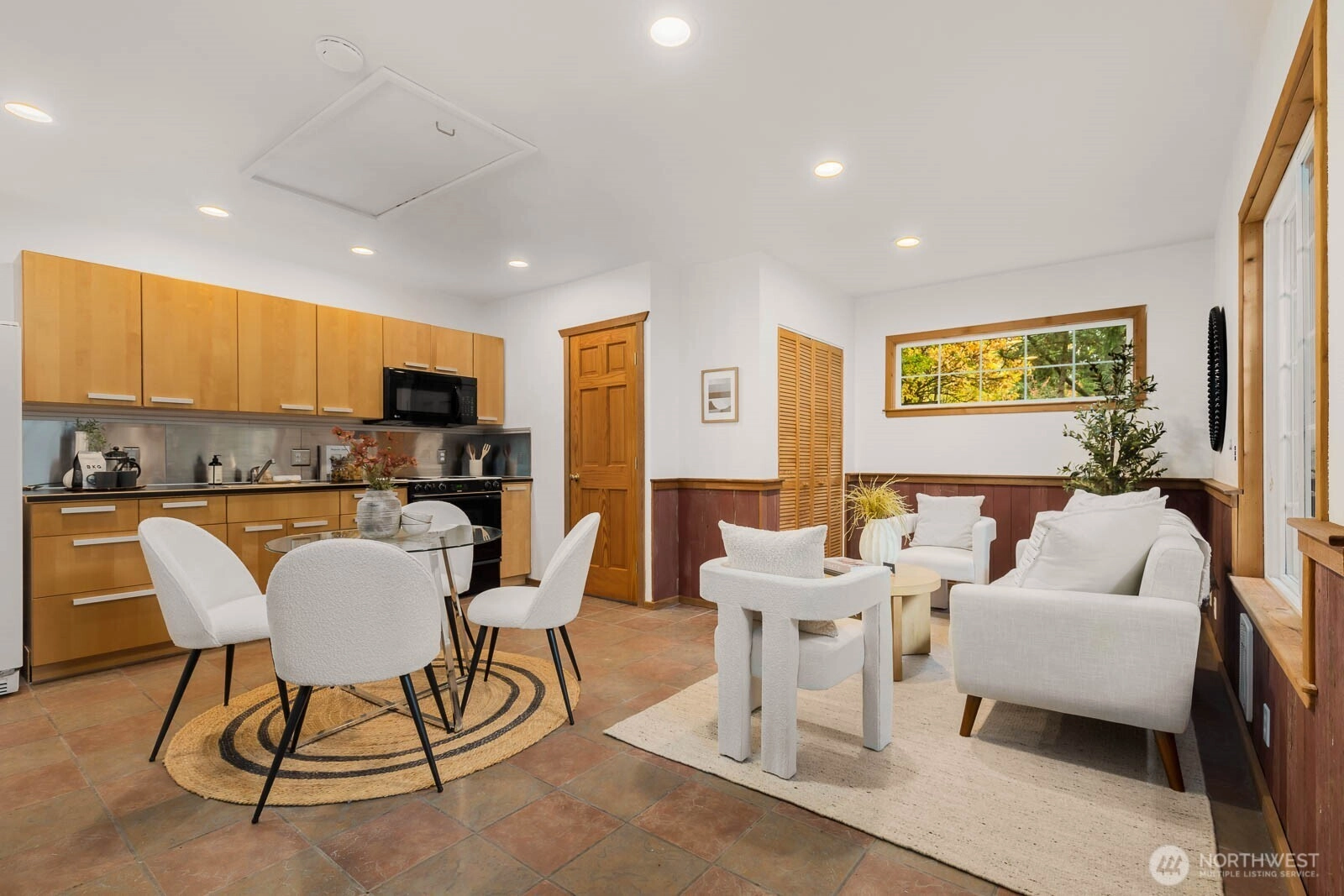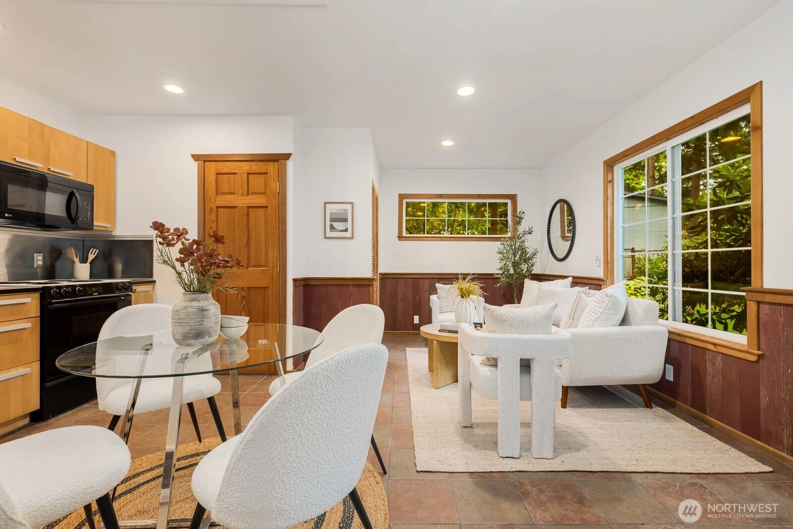 This one-of-a-kind Meadowdale gem commands attention on sprawling private grounds, a newly painted exterior, & fully fenced for ultimate tranquility. The hardwood floors, exposed beam ceilings to a modern kitchen boasting a breakfast bar, stainless steel appliances, & warm wood cabinets. Bedrooms with vaulted ceilings, while the primary suite offers a serene retreat with gorgeous subway-tiled bath. The true star of the show is the freshly painted DADU—versatile 400 sq ft with full kitchen & 3/4 bath with an attached shop. The park-like yard with lush landscaping, a charming patio, & plenty of room for RV or boat parking. Just steps to Meadowdale Elementary, Middle, & High Schools & minutes from downtown Edmonds' shops & waterfront dining.