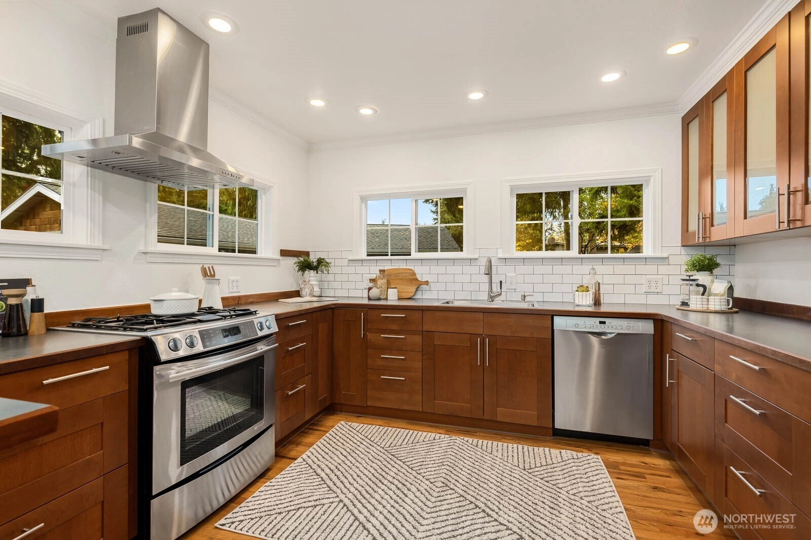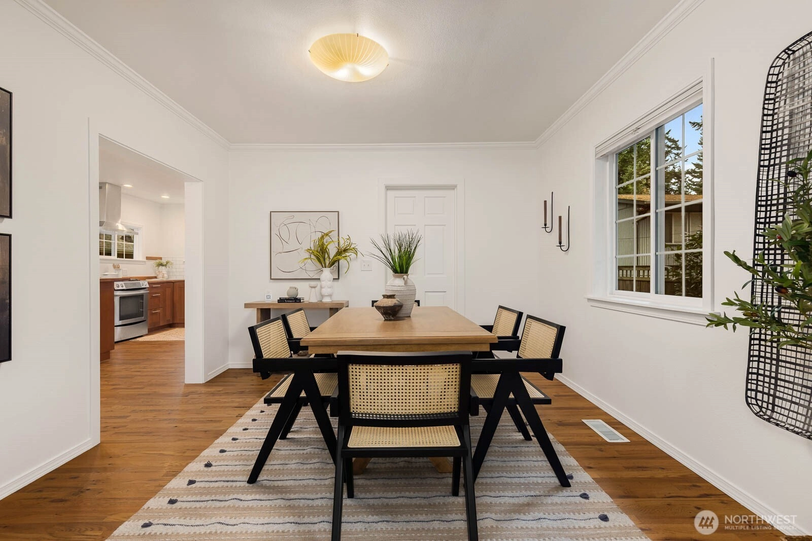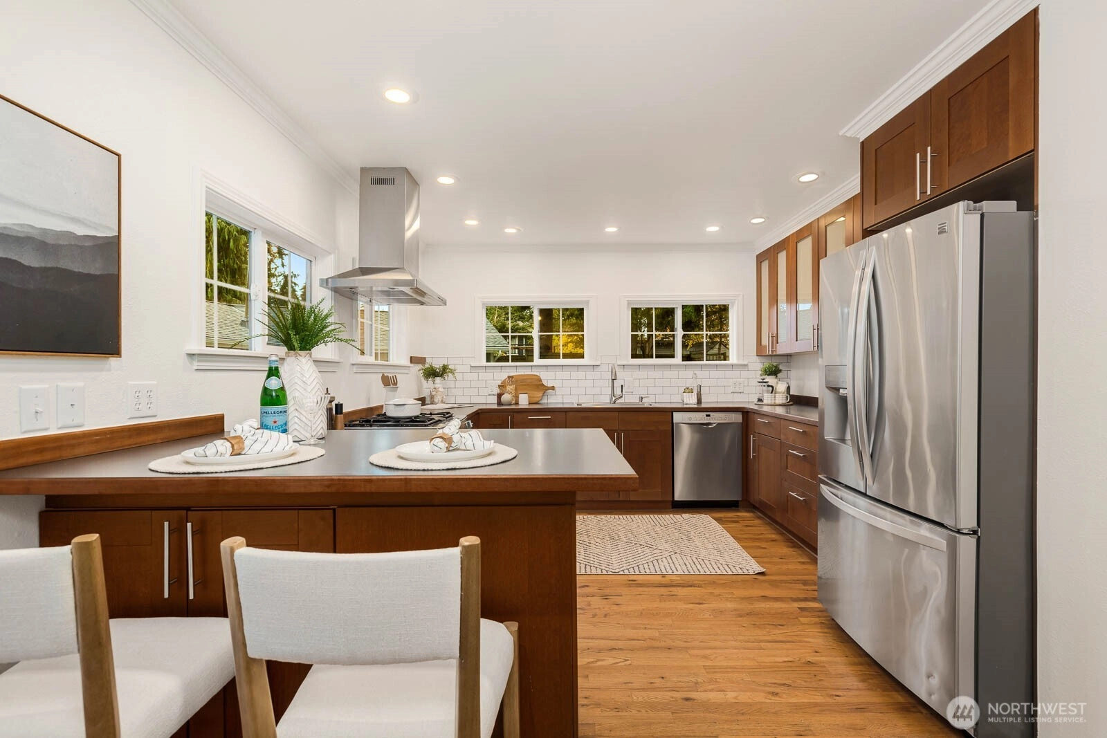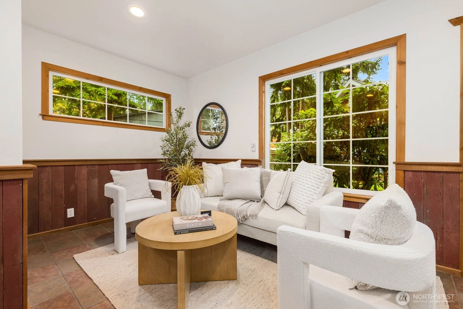 This one-of-a-kind Meadowdale gem commands attention on sprawling private grounds, a newly painted exterior, & fully fenced for ultimate tranquility. The hardwood floors, exposed beam ceilings to a modern kitchen boasting a breakfast bar, stainless steel appliances, & warm wood cabinets. Bedrooms with vaulted ceilings, while the primary suite offers a serene retreat with gorgeous subway-tiled bath. The true star of the show is the freshly painted DADU—versatile 400 sq ft with full kitchen & 3/4 bath with an attached shop. The park-like yard with lush landscaping, a charming patio, & plenty of room for RV or boat parking. Just steps to Meadowdale Elementary, Middle, & High Schools & minutes from downtown Edmonds' shops & waterfront dining.