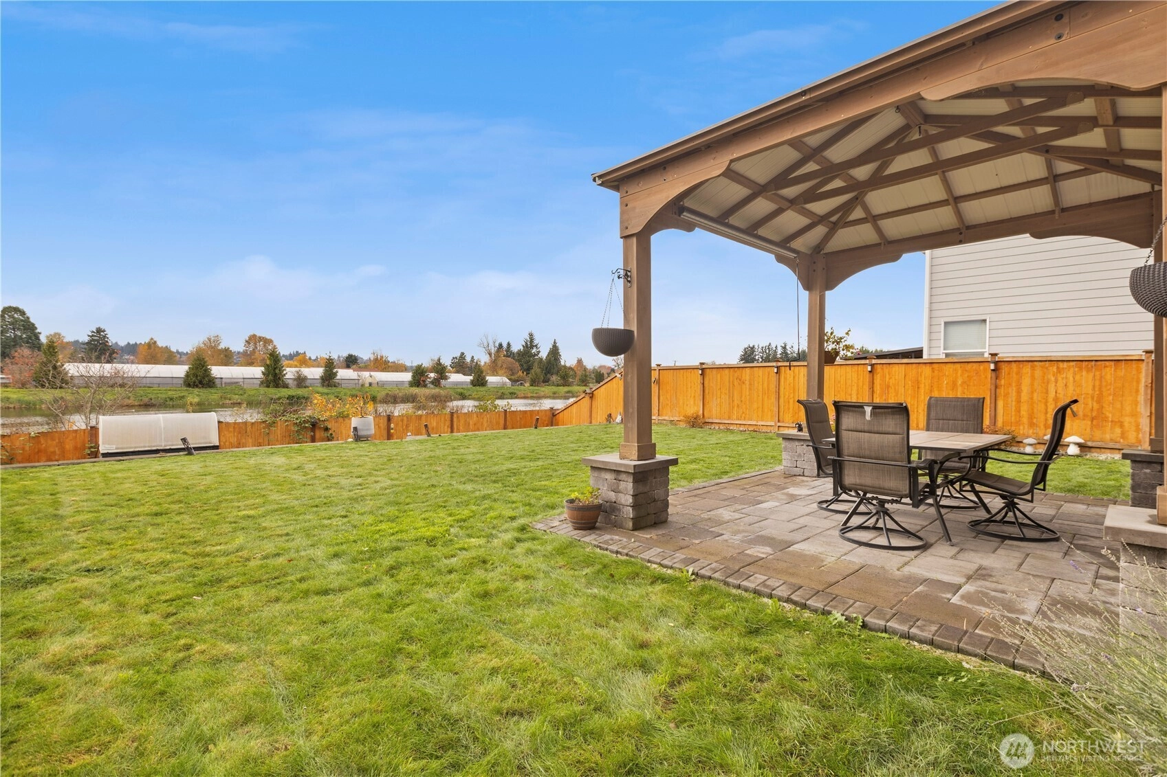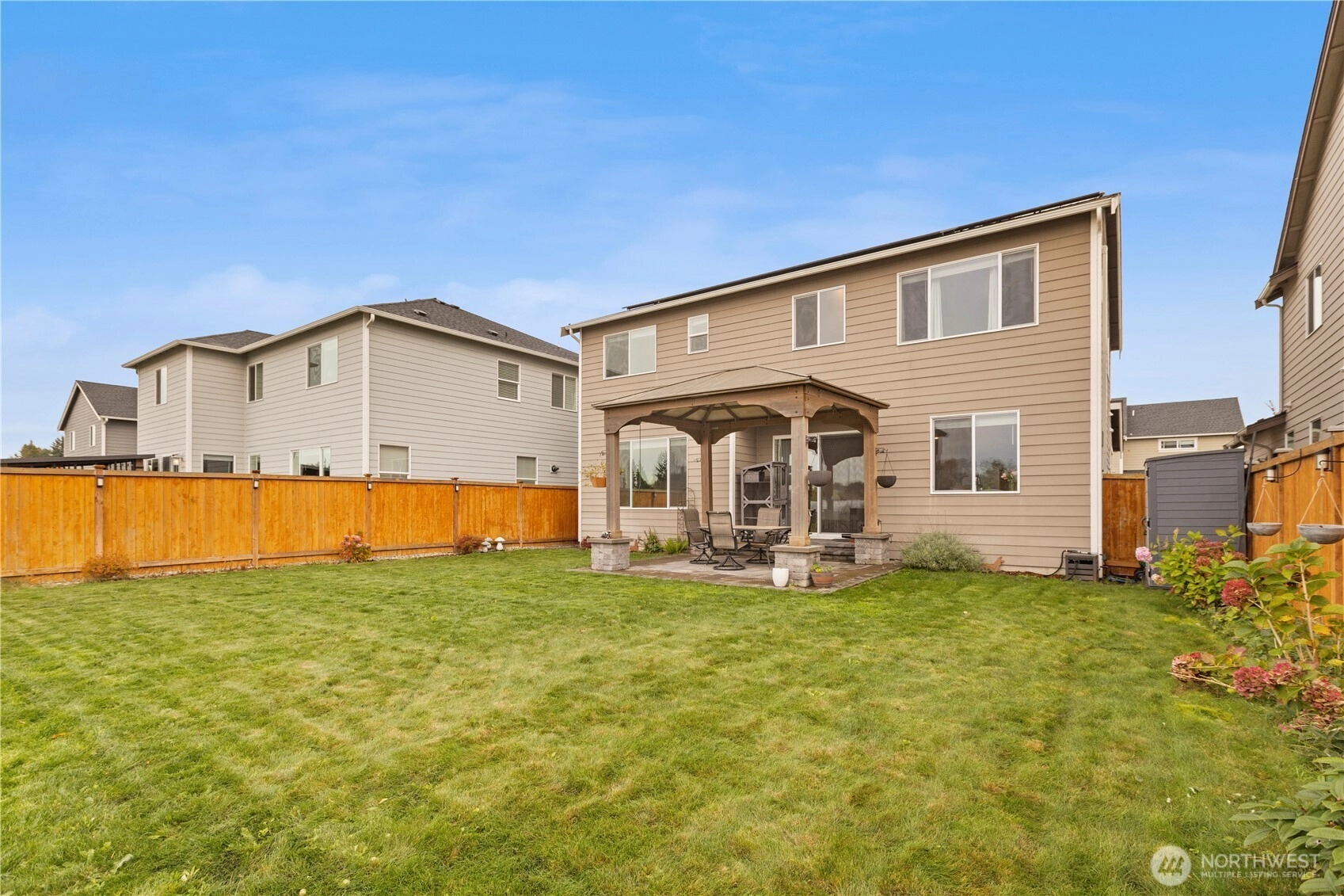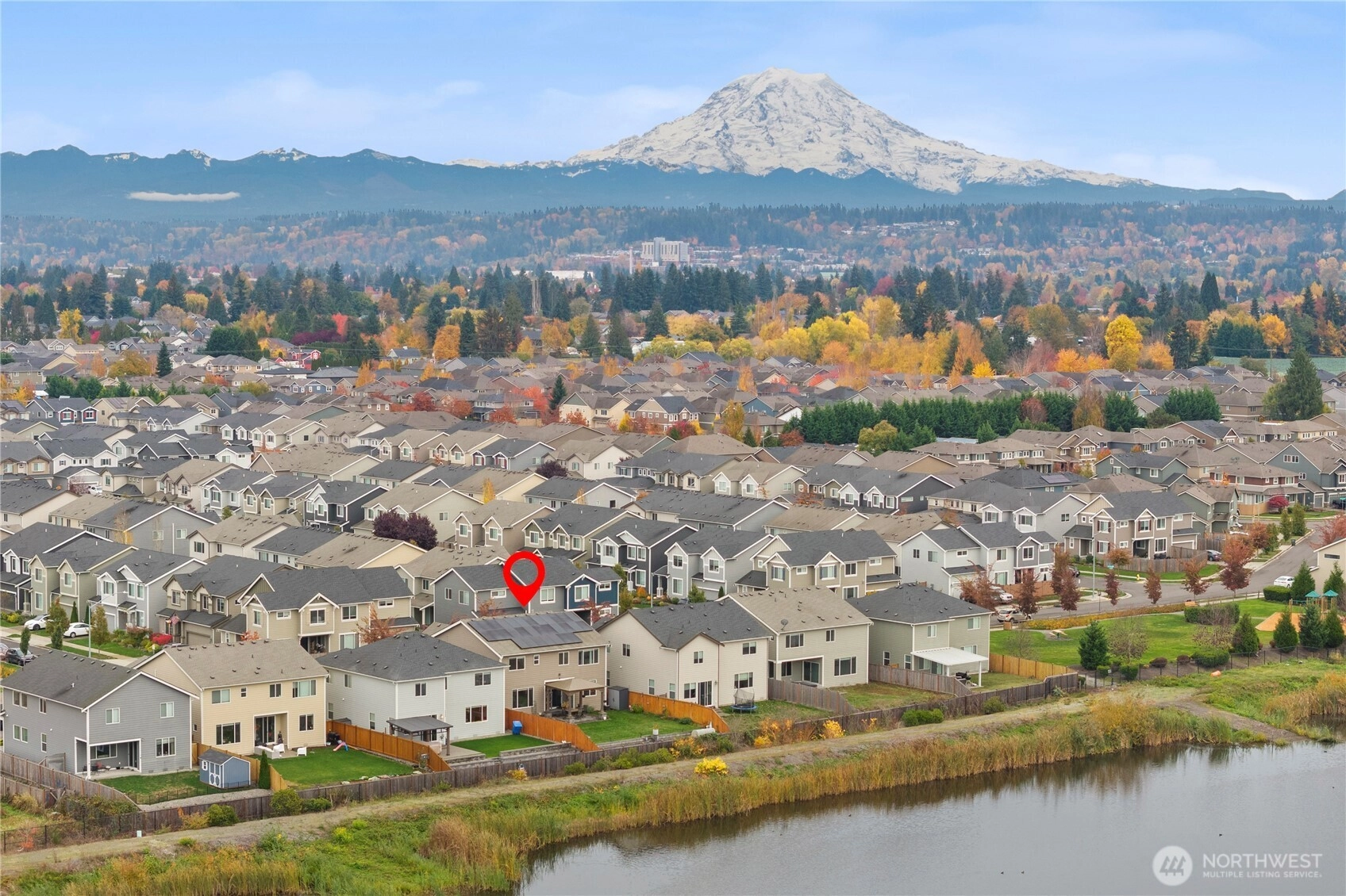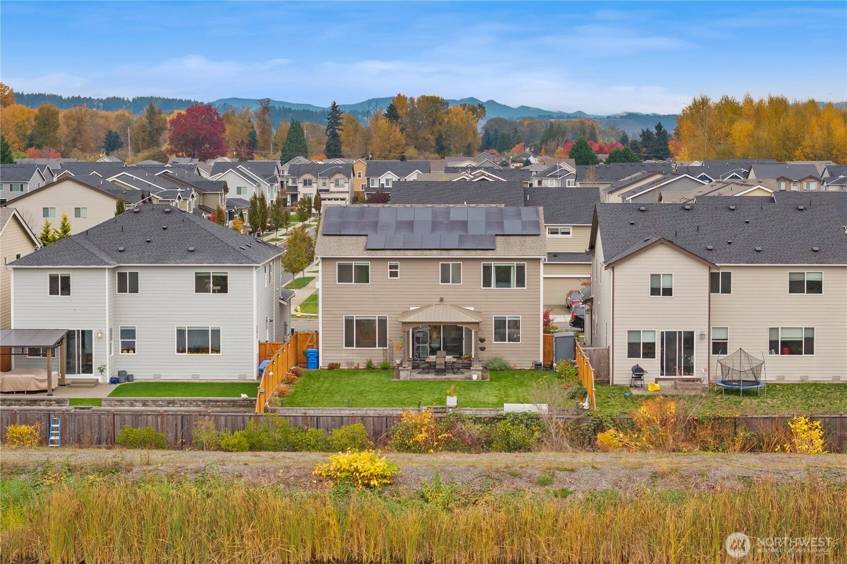 Immaculate Stevenson plan at Stewart Crossing! Original owner invested over $80K in upgrades including solar panels, A/C, EV car charger, retaining wall, expanded patio, sidewalk, and gazebo that stays. Backing to water and greenery, this 4BD/2.5BA, 2,704 sq ft home blends privacy and modern efficiency. Features quartz counters, soft-close Huntwood cabinets, stainless steel appliances, and open-concept living with den + bonus room. Added garage storage and bike racks. Located in the desirable Puyallup School District—this home is move-in ready and built for comfort, savings, and style!