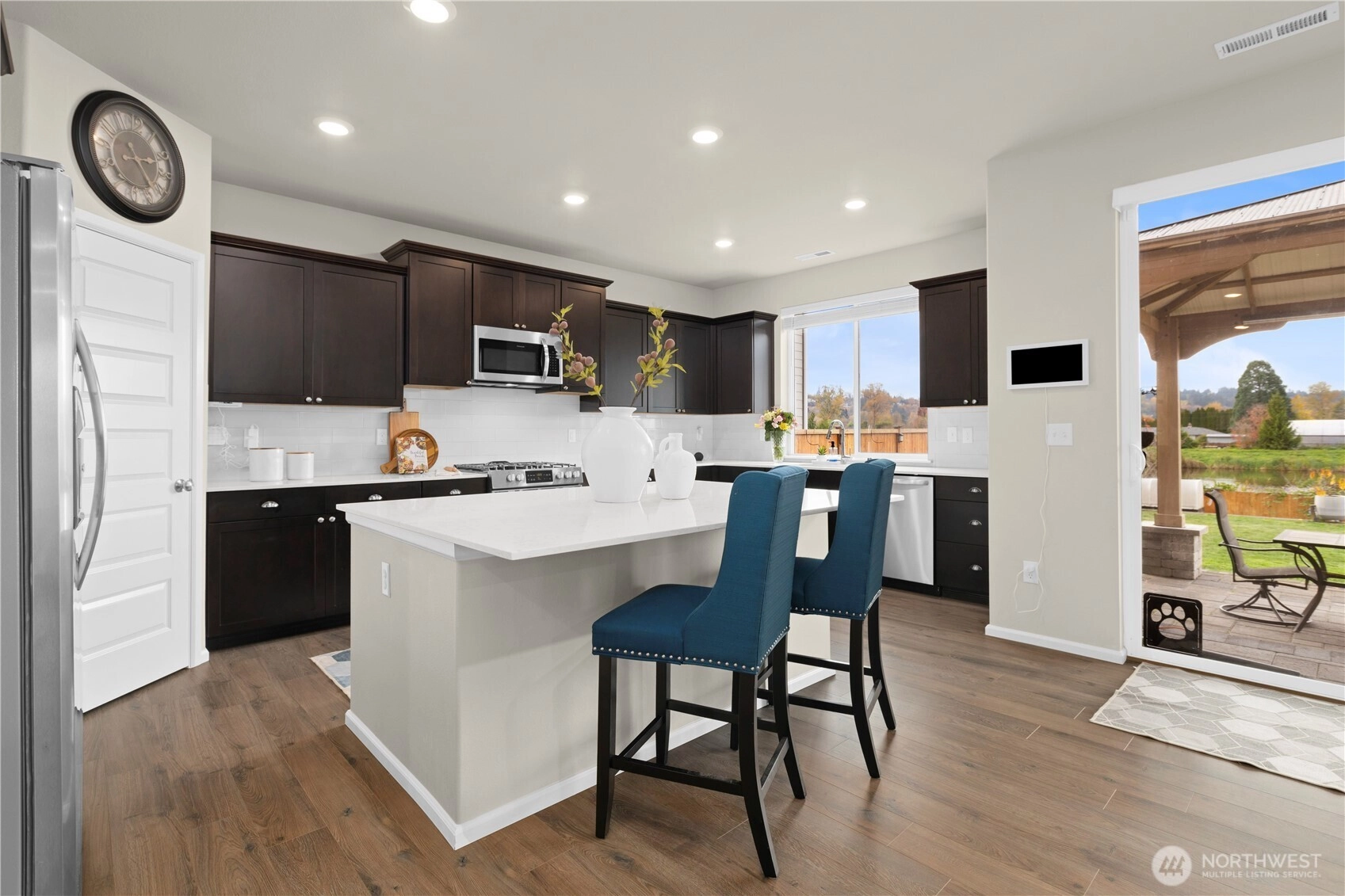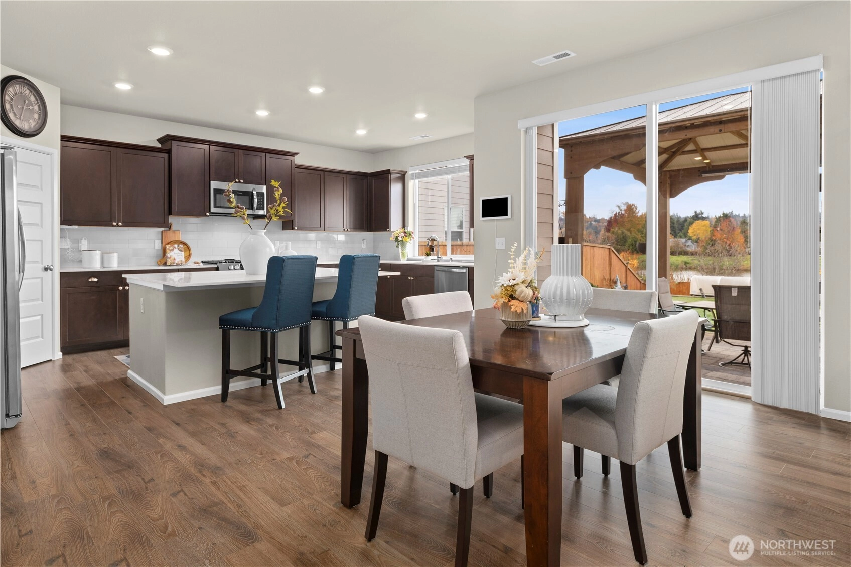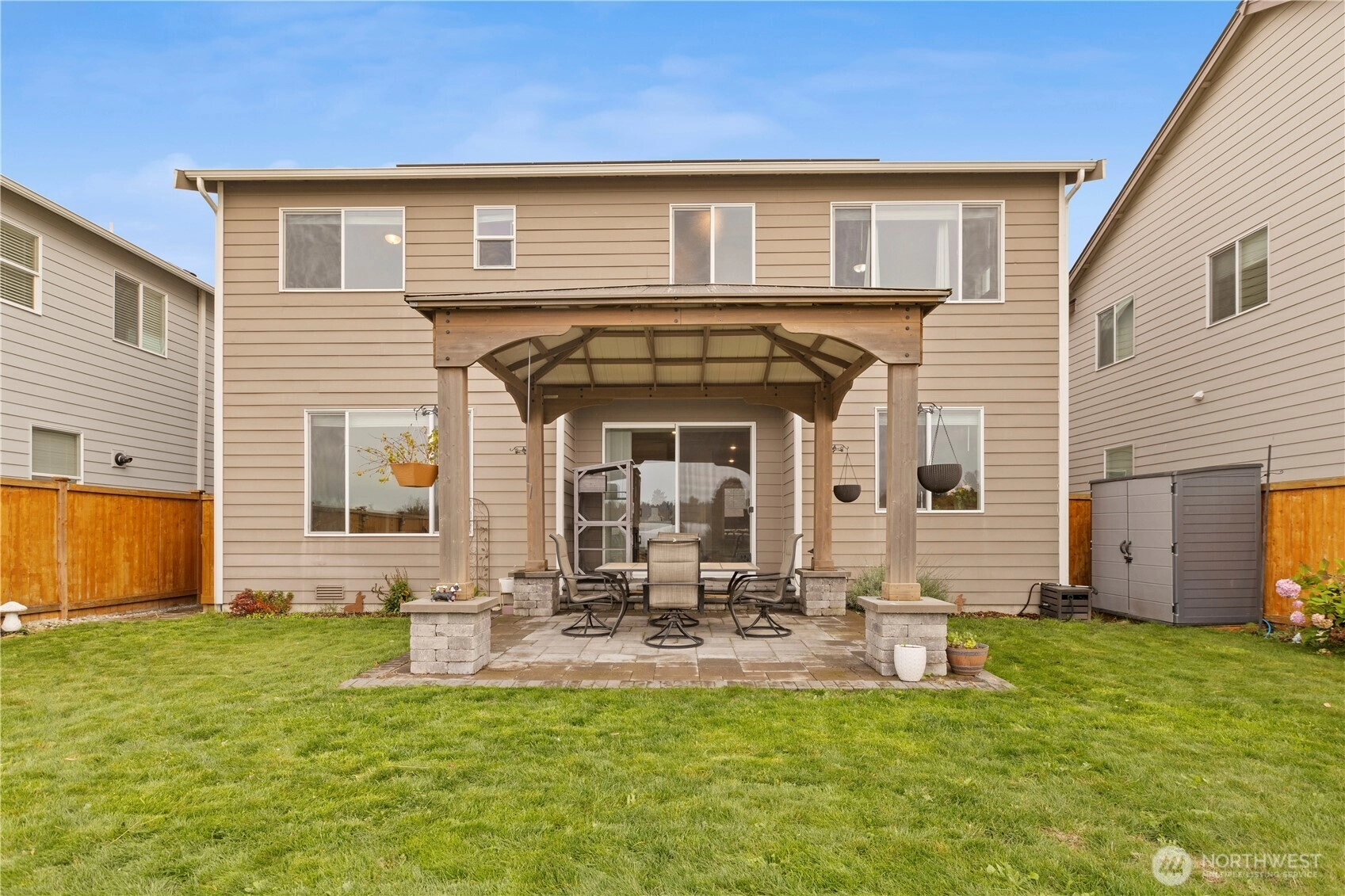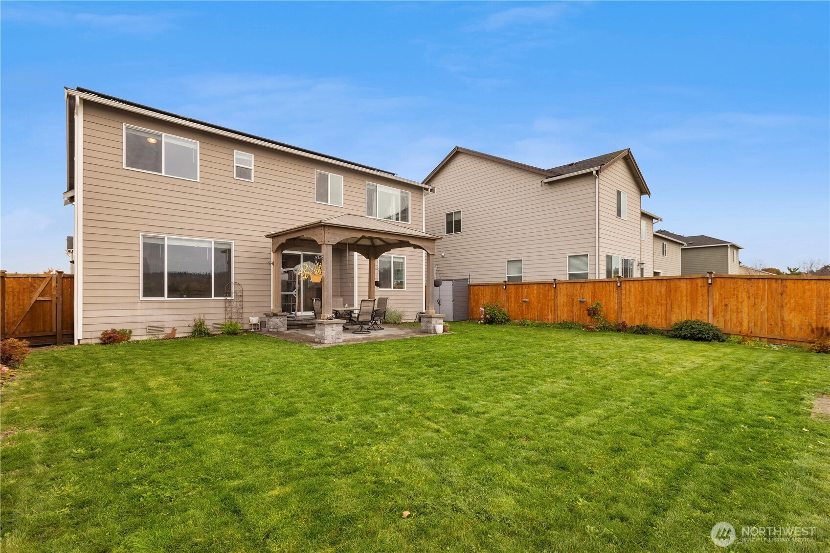 Immaculate Stevenson plan at Stewart Crossing! Original owner invested over $80K in upgrades including solar panels, A/C, EV car charger, retaining wall, expanded patio, sidewalk, and gazebo that stays. Backing to water and greenery, this 4BD/2.5BA, 2,704 sq ft home blends privacy and modern efficiency. Features quartz counters, soft-close Huntwood cabinets, stainless steel appliances, and open-concept living with den + bonus room. Added garage storage and bike racks. Located in the desirable Puyallup School District—this home is move-in ready and built for comfort, savings, and style!