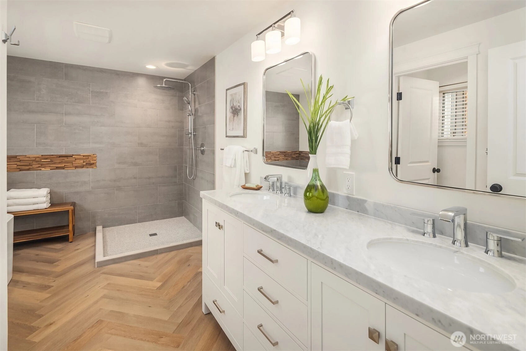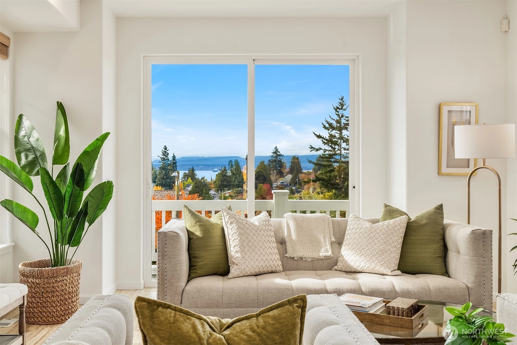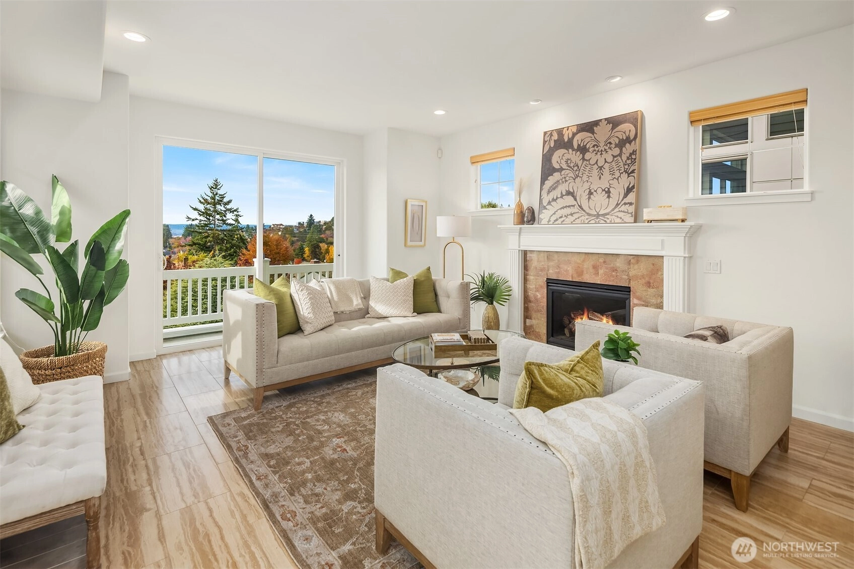 Remodeled 3-bdrm, 2.5 bath home w/designer finishes & spectacular views of Sound & Mtns. The heart of this luxurious home is the chef’s kit w/ample counter space, eating bar, gas cktop, double oven & wine fridge. Adjacent great rm w/gas frplc opening to backyard oasis. Living rm w/gas frplc & view deck. Upper level Primary Suite wi/Sound & Mtn views, remodeled spa-like 5-piece bath, & custom walk-in closet w/view deck for morning coffee. 2 more large bdrms, full bath & utility rm complete this level. Lower-level w/endless possibilities for rec rm, office, exercise room, or whatever your heart desires. 2-car gar w/EV charger. New flooring, carpet, painting, flooring. A/C & Solar Panels will keep you comfortable all year. Close to everything