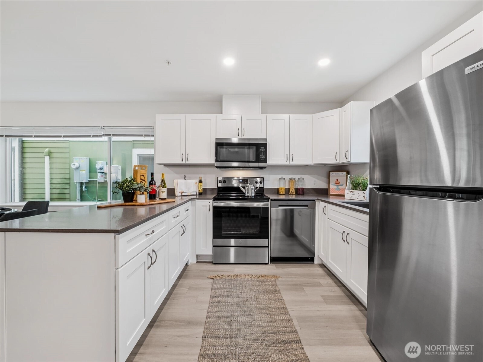 Discover modern comfort and eco-conscious living in this 4-br, 2.75-ba new construction home. This differs from the model as it has a small yard a faces courtyard. The open-concept main floor features a bright living area, cozy dining area, chef-inspired kitchen with quartz countertops and SS appliances—ideal for everyday living and entertaining. Main-level bedroom with ¾ bath provide flexible space for guests or multi-generational living. Upstairs offers a serene primary suite w/full bath, plus two bedrooms that share a full bath. Built with sustainability in mind, this home includes solar panels, ILFI Net Zero Energy and Salmon Safe ESDS certifications. 2 parking spaces included. Located near light rail, SeaTac Airport, and DT Seattle. 1 year HOD paid by Seller if close by 02/27/2026.