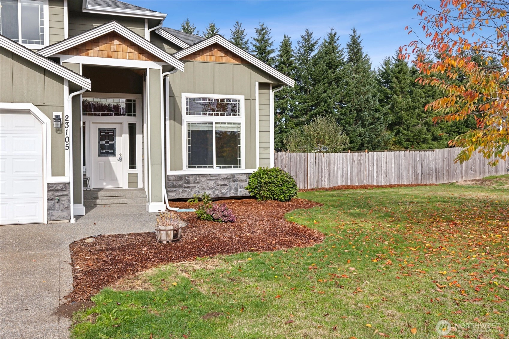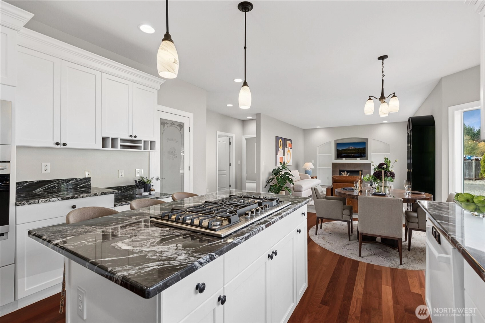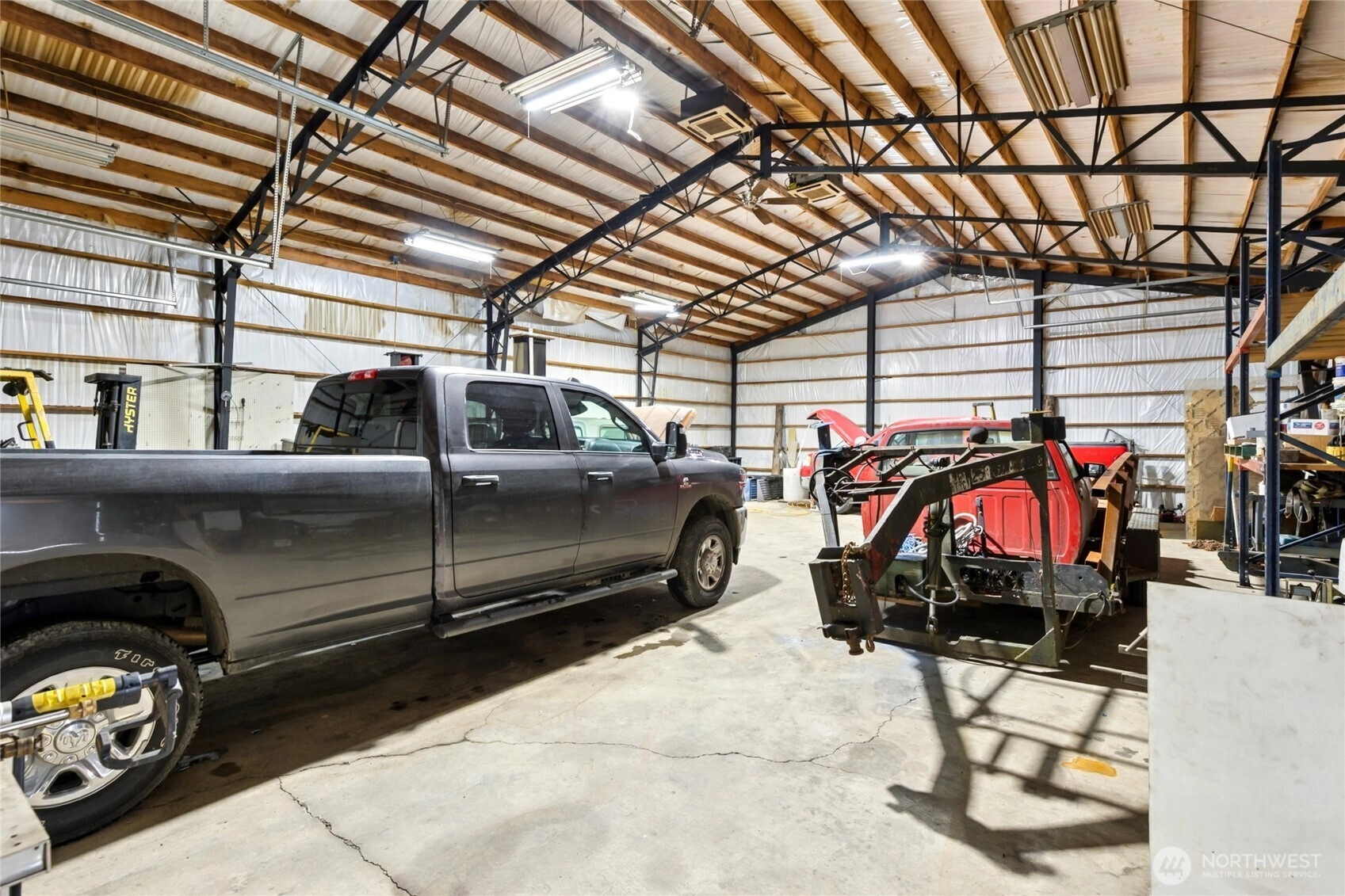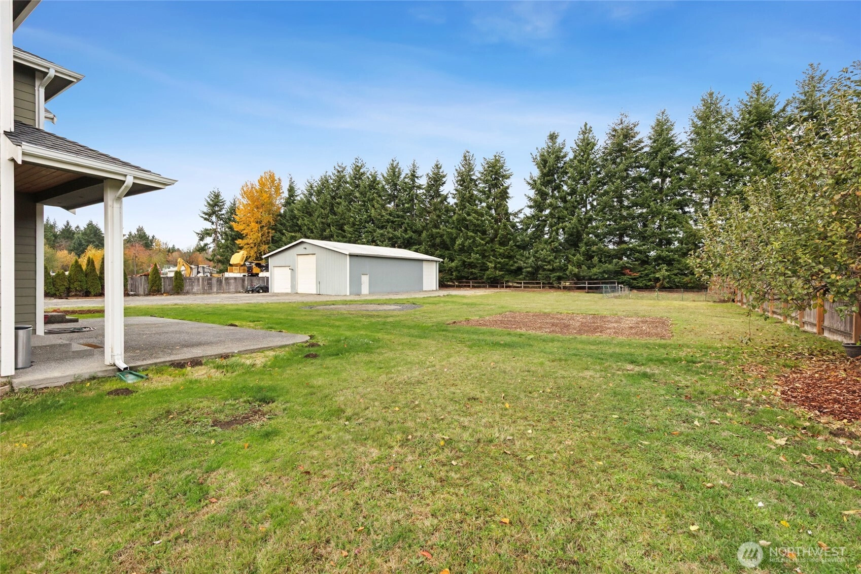 No HOA! Beautifully maintained home on a full, level acre. Fresh updates: new countertops, interior paint, new carpet, fixtures/lighting, & new stove! Spacious 4 bed+den+bonus rm w/ formal living/dining & open gourmet kitchen. Feat. hardwoods, 2 FPs & A/C. Deluxe primary suite has a see-through gas FP to the 5-pc bath w/ large walk-in tile shower. Fenced acre w/ stunning Mt. Rainier view. Massive 40x56 (2,240sf) clear-span steel shop—ideal for hobbies, storage, or business possibilities. Feat: concrete floor, 220 pwr, 3 large doors (14', 12'6", 10'H). Also: 3-car garage, RV parking, RV pwr & dump. End of private paved st, near Hwy 410.