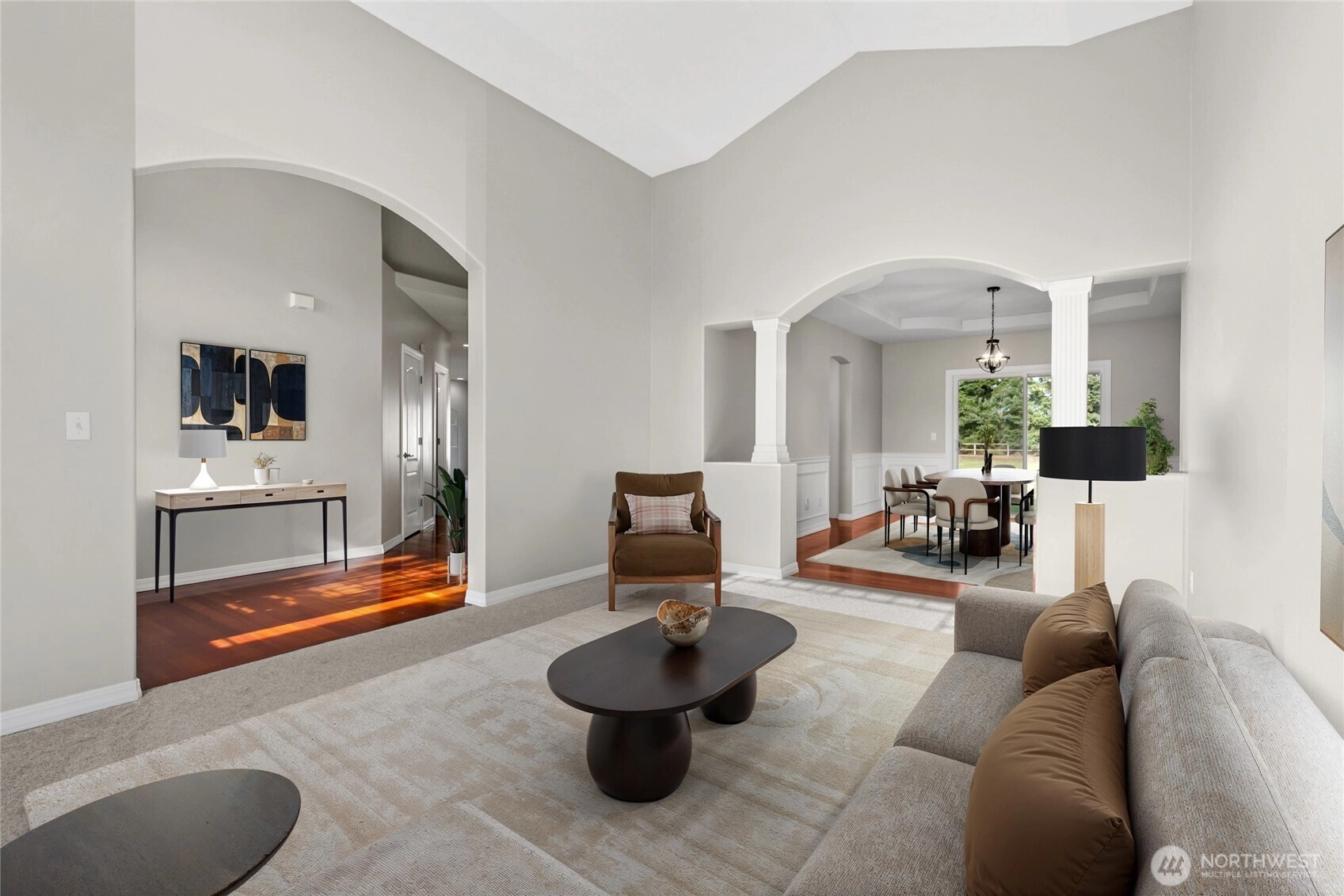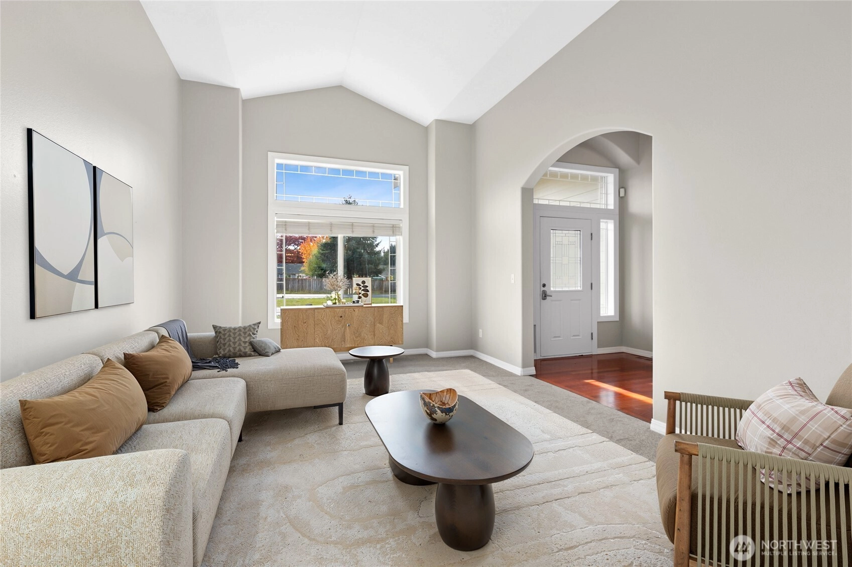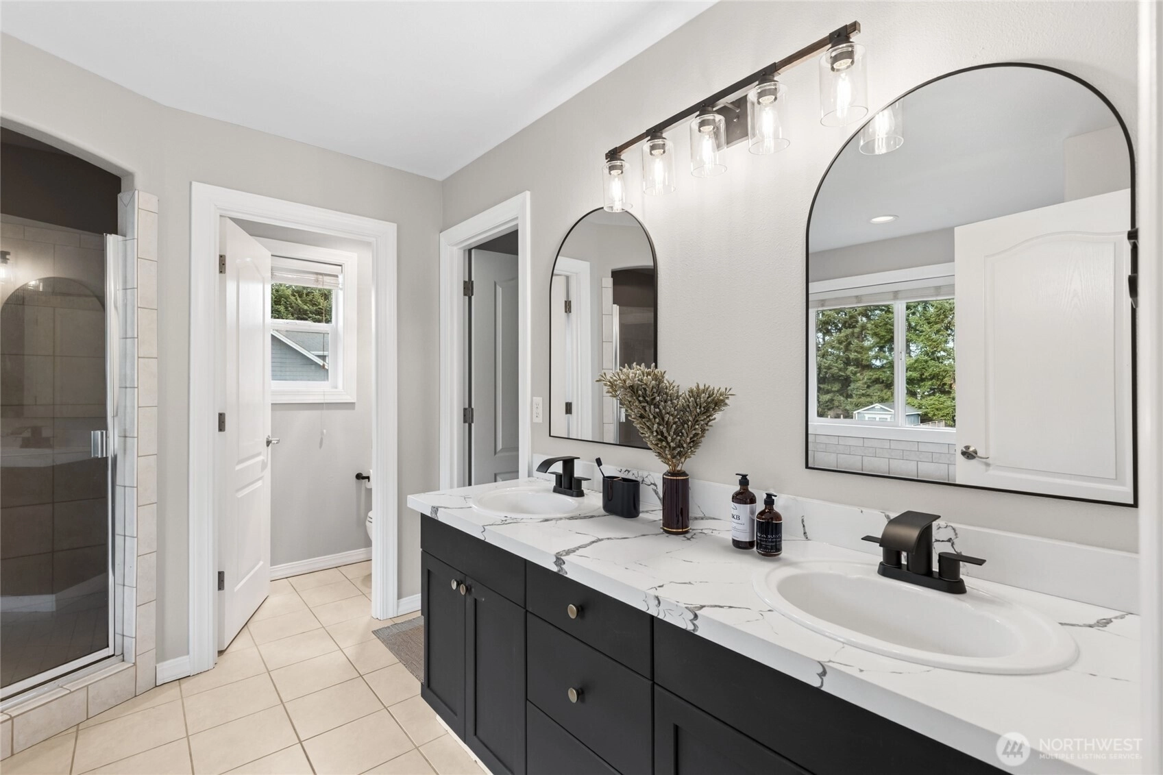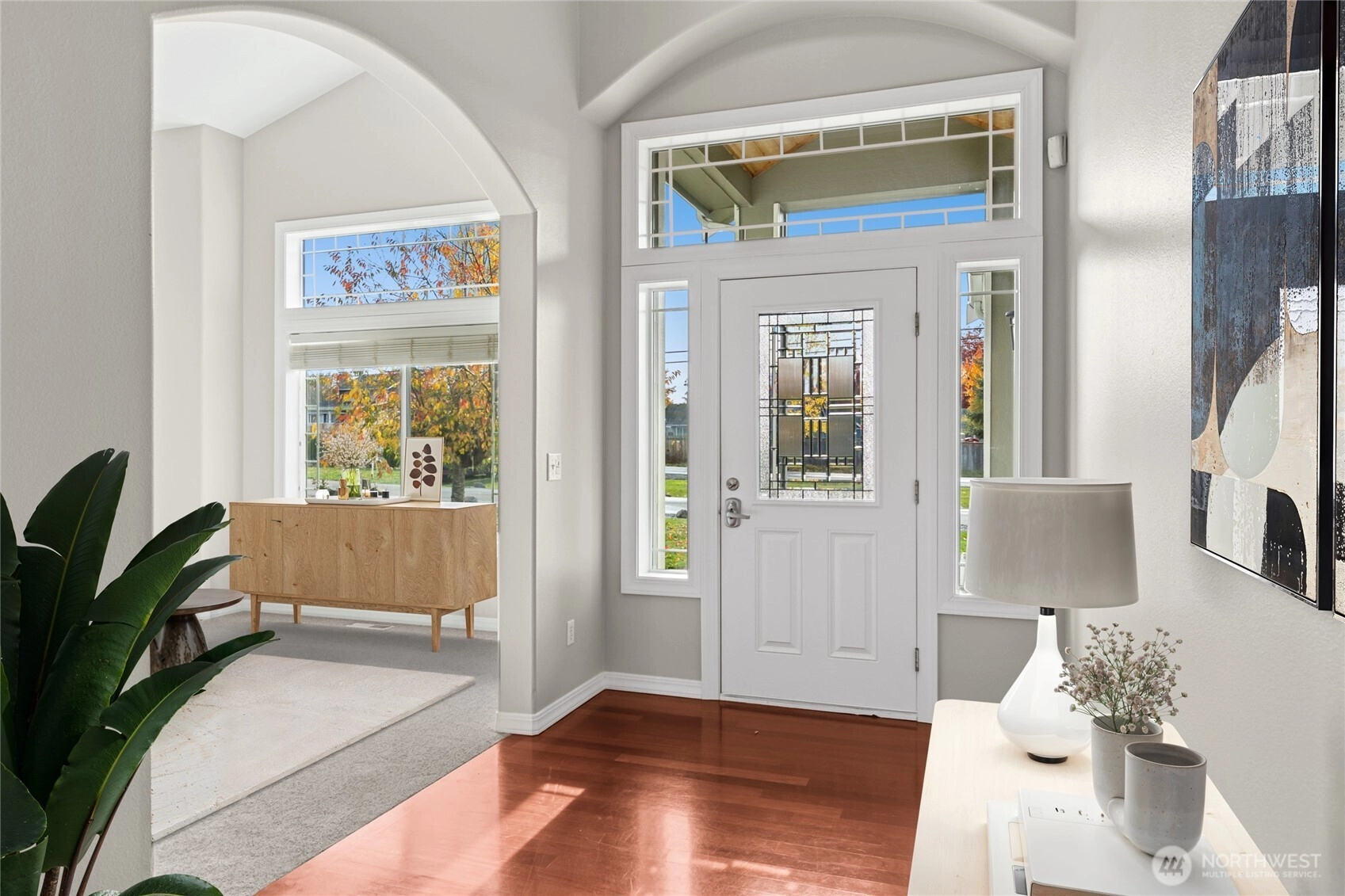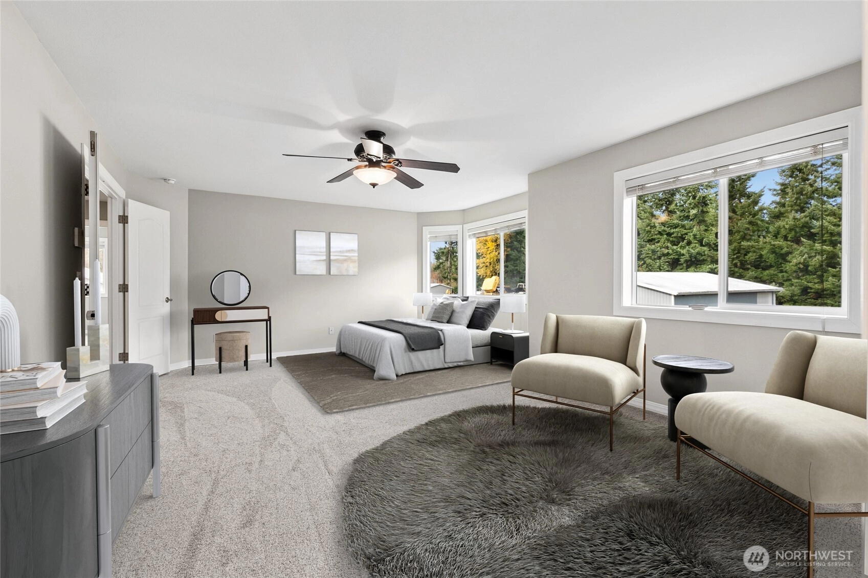 No HOA! Beautifully maintained home on a full, level acre. Fresh updates: new countertops, interior paint, new carpet, fixtures/lighting, & new stove! Spacious 4 bed+den+bonus rm w/ formal living/dining & open gourmet kitchen. Feat. hardwoods, 2 FPs & A/C. Deluxe primary suite has a see-through gas FP to the 5-pc bath w/ large walk-in tile shower. Fenced acre w/ stunning Mt. Rainier view. Massive 40x56 (2,240sf) clear-span steel shop—ideal for hobbies, storage, or business possibilities. Feat: concrete floor, 220 pwr, 3 large doors (14', 12'6", 10'H). Also: 3-car garage, RV parking, RV pwr & dump. End of private paved st, near Hwy 410.