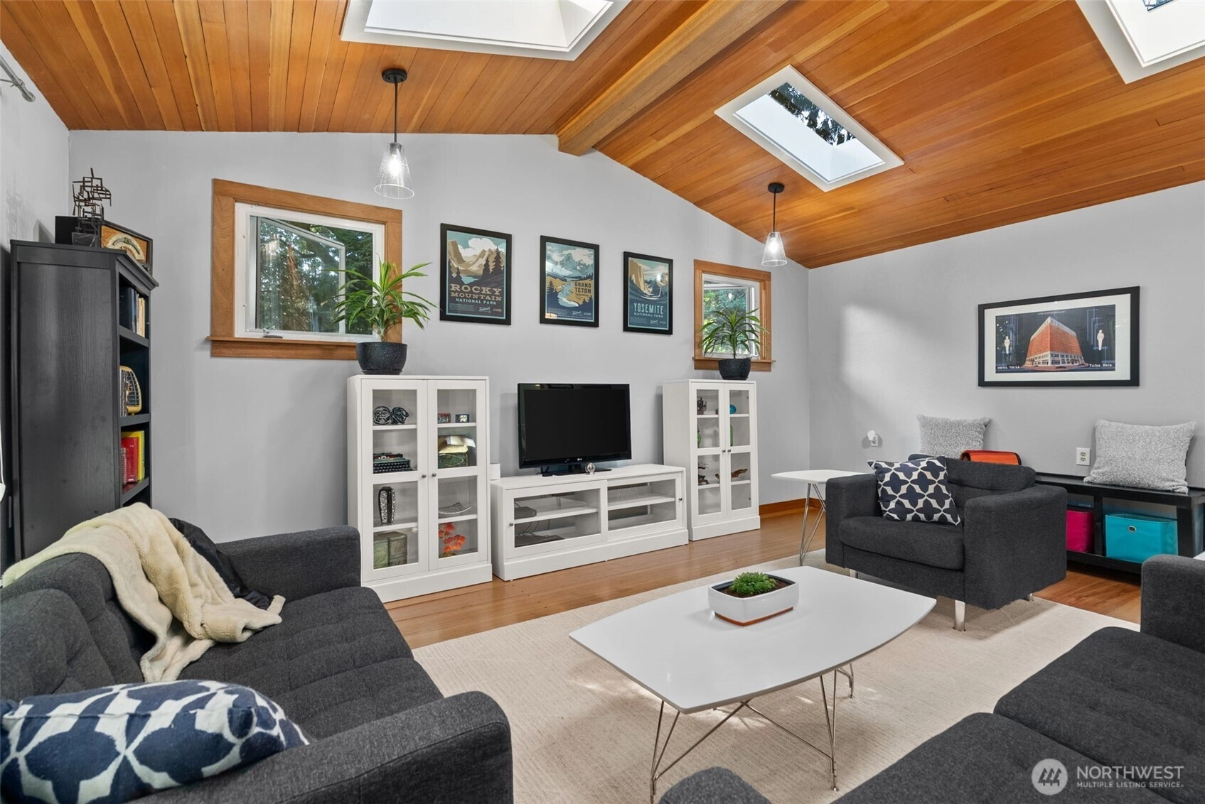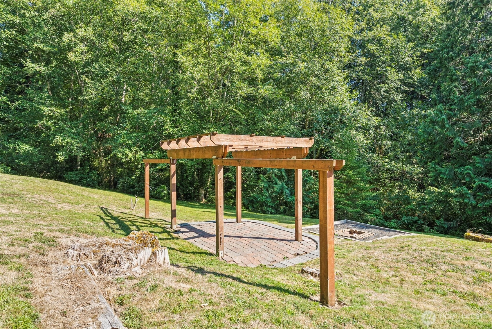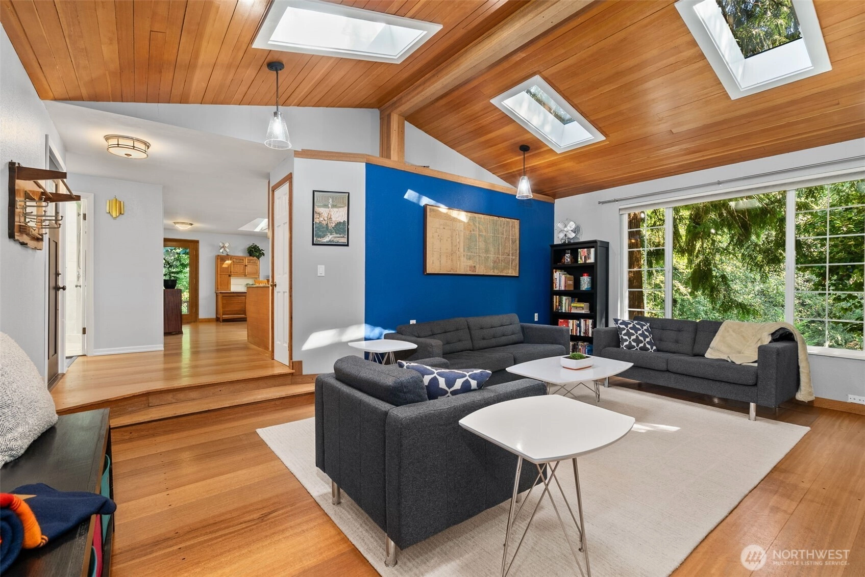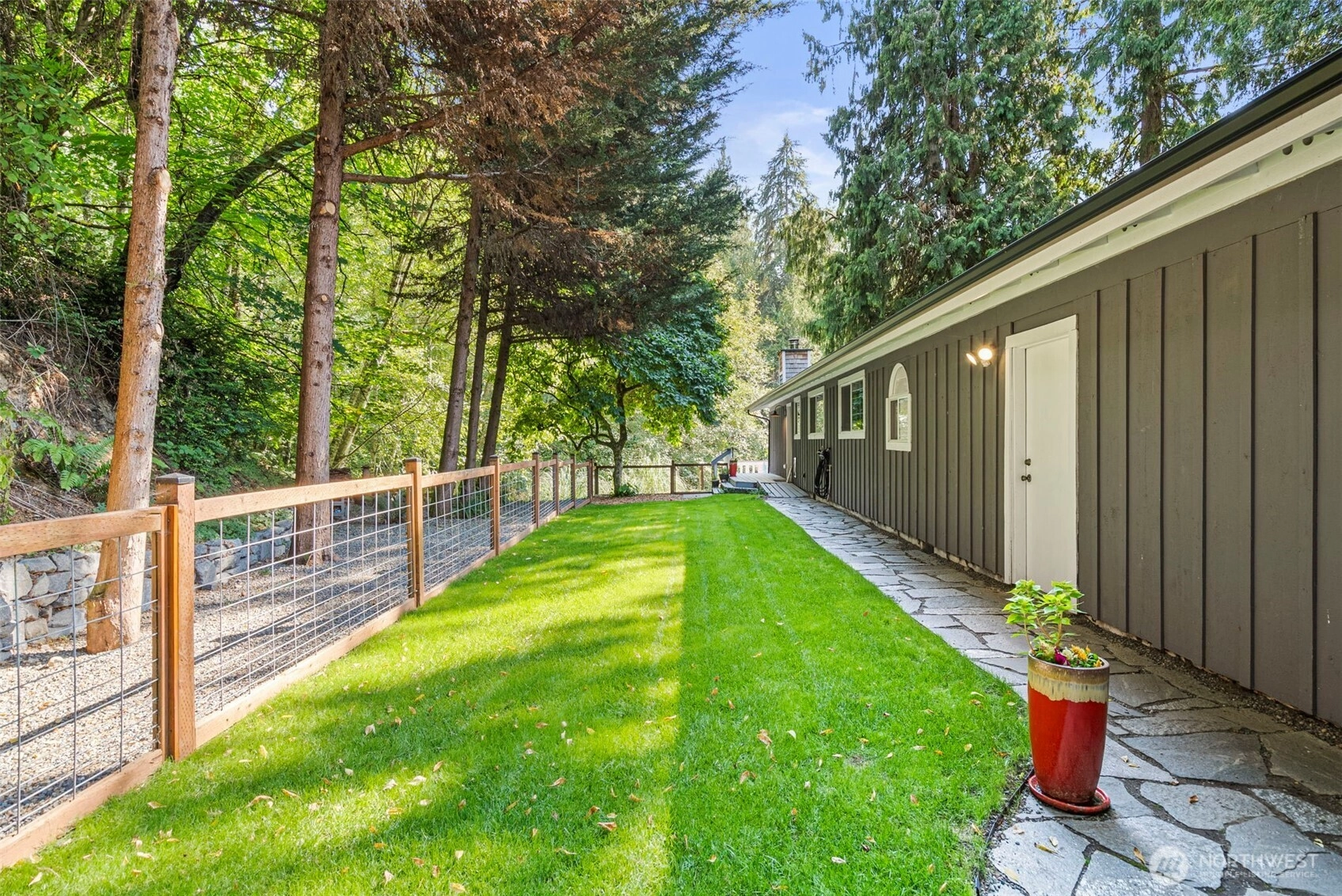 Don't miss this secluded, wooded, and serene private home on +/- .84 acre. This 3-bed, 2 three-quarter bath home blends natural beauty with thoughtful updates. Enjoy Brazilian blonde cherry hardwoods, mahogany flooring in the huge family room, plus laminate and tile throughout. New roof and remediated crawl space offer peace of mind. Kitchen with granite countertops and SS appliances opens to and expansive deck overlooking a rolling hill, garden space, cabana with grapes, fire pit, and multiple fruit trees and berry bushes. Home also offers RV parking, dog run, and large detached 2-car garage.