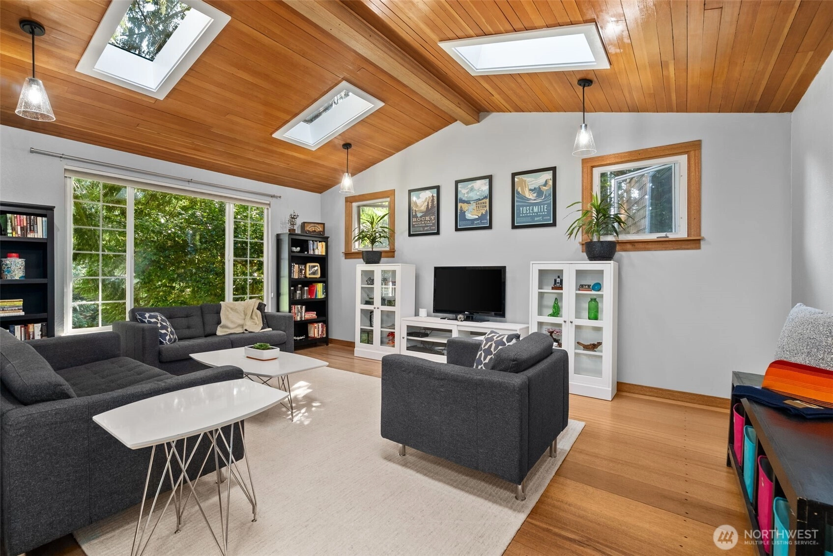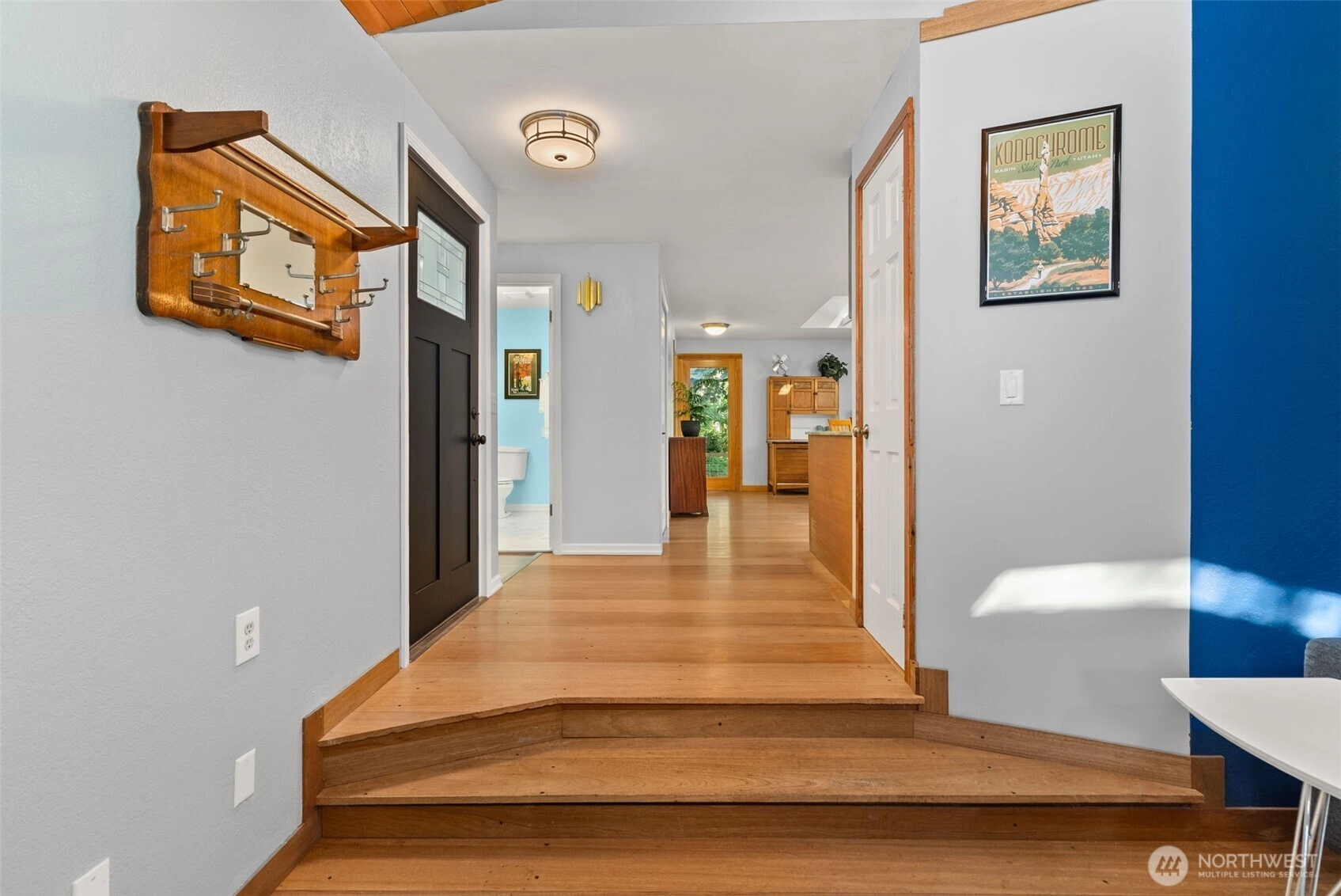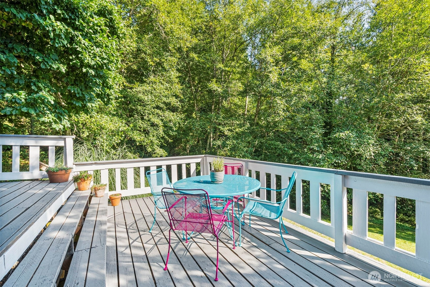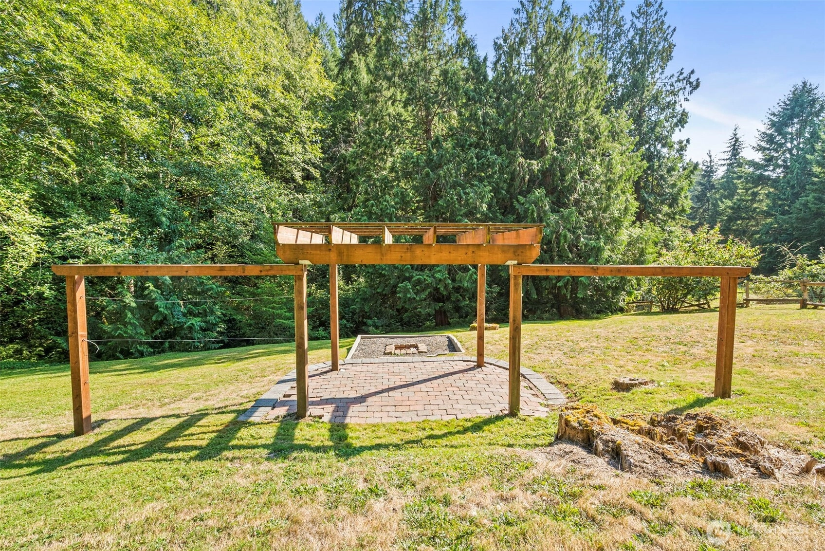 Don't miss this secluded, wooded, and serene private home on +/- .84 acre. This 3-bed, 2 three-quarter bath home blends natural beauty with thoughtful updates. Enjoy Brazilian blonde cherry hardwoods, mahogany flooring in the huge family room, plus laminate and tile throughout. New roof and remediated crawl space offer peace of mind. Kitchen with granite countertops and SS appliances opens to and expansive deck overlooking a rolling hill, garden space, cabana with grapes, fire pit, and multiple fruit trees and berry bushes. Home also offers RV parking, dog run, and large detached 2-car garage.
