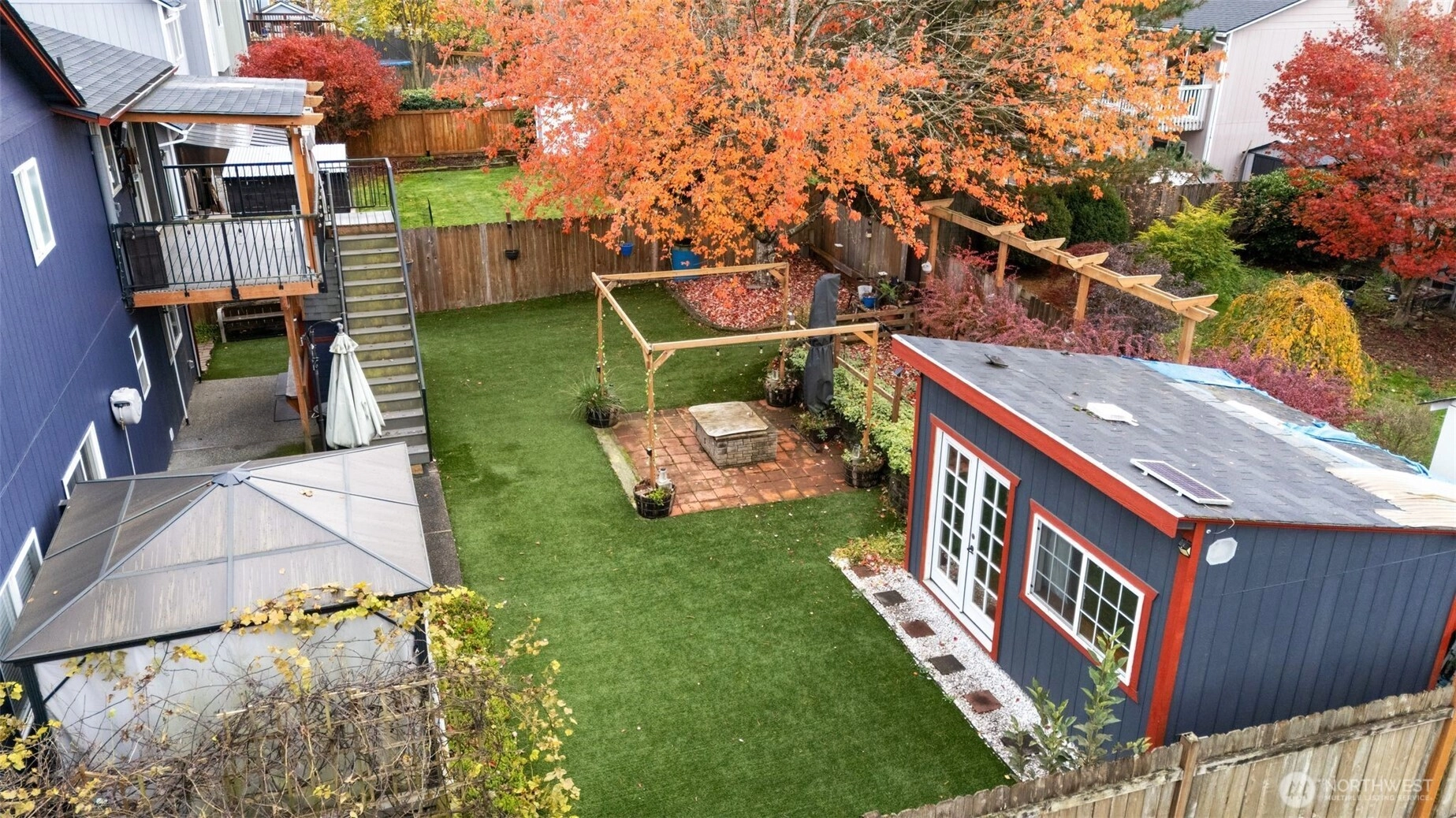 Step into this beautiful home that combines comfort, style, and functionality in one inviting package. Freshly painted inside and out. Enjoy peace of mind with a newer roof, furnace, and central A/C, ensuring year-round comfort. Spacious backyard is designed for easy living and entertaining, featuring low-maintenance turf, a patio perfect for summer barbecues, and a cozy fire pit for relaxing evenings with friends. Versatile shed adds extra space for storage or hobbies. Inside you'll find a flexible floor plan featuring 4 bedrooms including a primary ensuite. Large bonus room ideal for movie night or playroom. Newer appliances throughout the house, this home is move-in ready. Welcome Home!
