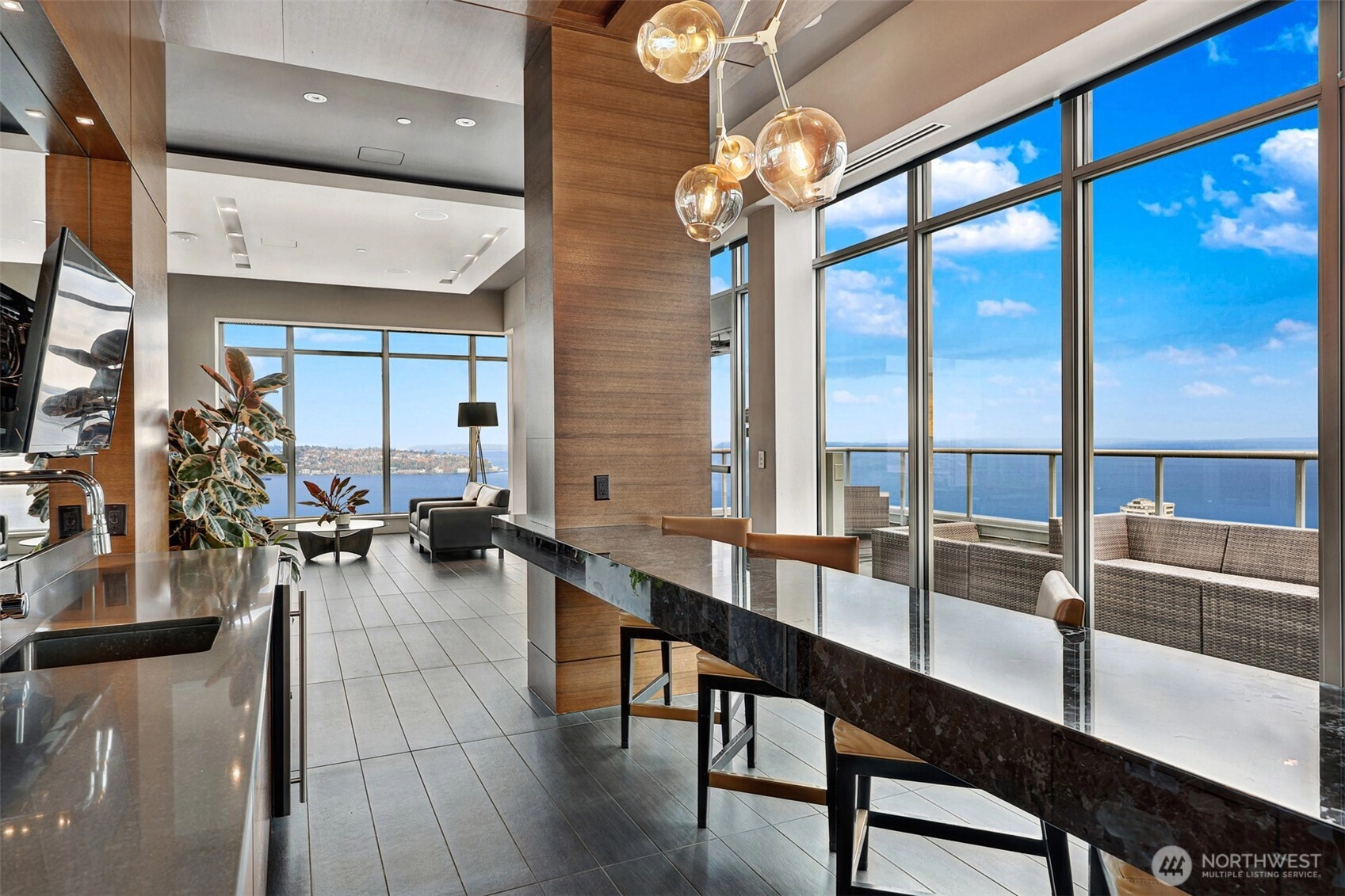 Insignia welcomes you to this beautiful modern high-rise residence w/ spectacular northerly views overlooking the city, Puget Sound & Lk Union. Chef’s kitchen showcases Quartz counters, sleek cabinets, Bosch & Thermador appliances & substantial pantry storage. Open-concept dining & living space lead to a private covered deck. Floor-to-ceiling windows with motorized shades & A/C offer exceptional light, privacy & comfort. Inclusive luxuries incl- 41st-floor Sky Retreat, 24-hour concierge, pool/spa/sauna/steam, yoga/pilates studio, rooftop BBQ terrace, Sky Lounge & private theater, 2-story fitness center, indoor pool/hot tub, pet spa w/ dog run & grooming station, park terrace, plus 2 EV parking spaces w/ storage. No rental cap. Heart of SLU!