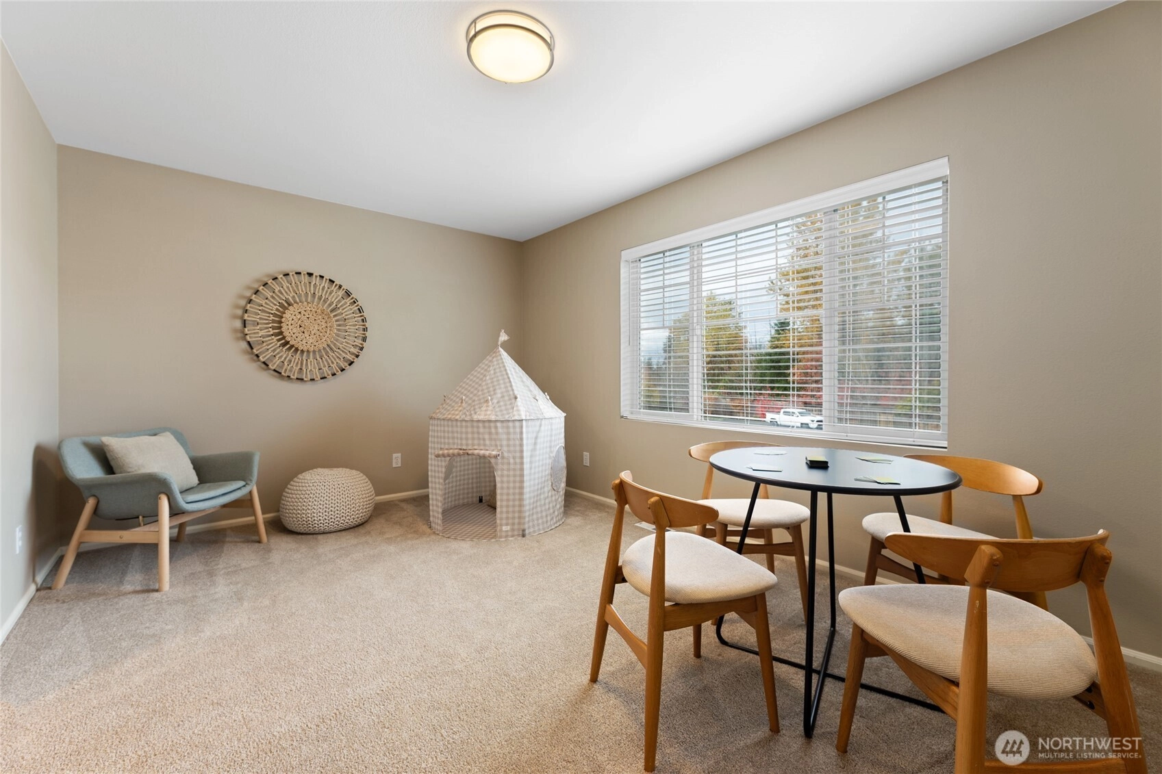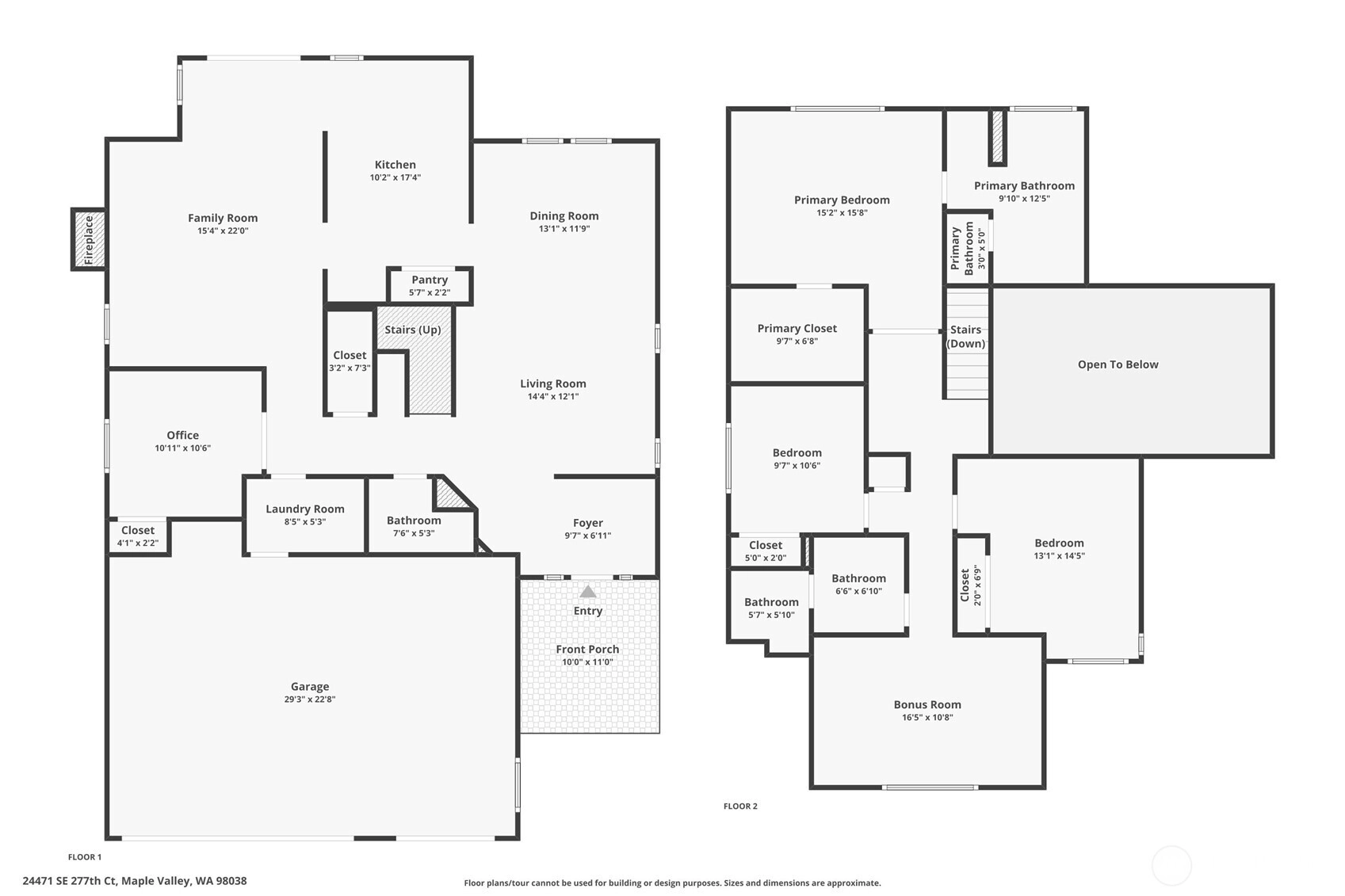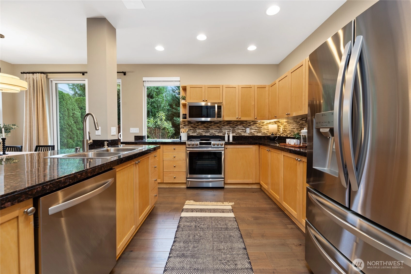 Immaculately cared-for Maple Woods home tucked in a friendly cul-de-sac, where natural light fills the open spaces and soaring ceilings with wide plank hardwoods welcome you in. The main level offers a flexible office or guest room, spacious living and dining areas, and a cozy family room with a gas fireplace. The kitchen features a sunny breakfast nook and granite tile counters. Upstairs, the primary suite boasts a luxurious 5-piece bath, plus a bonus room and two comfortable bedrooms. Enjoy coffee on the blue flagstone patio overlooking a private, fenced backyard with peaceful greenbelt views. Recent updates include a new roof, gutters, furnace, A/C, water heater, and cedar fencing. Award-winning Tahoma Schools!