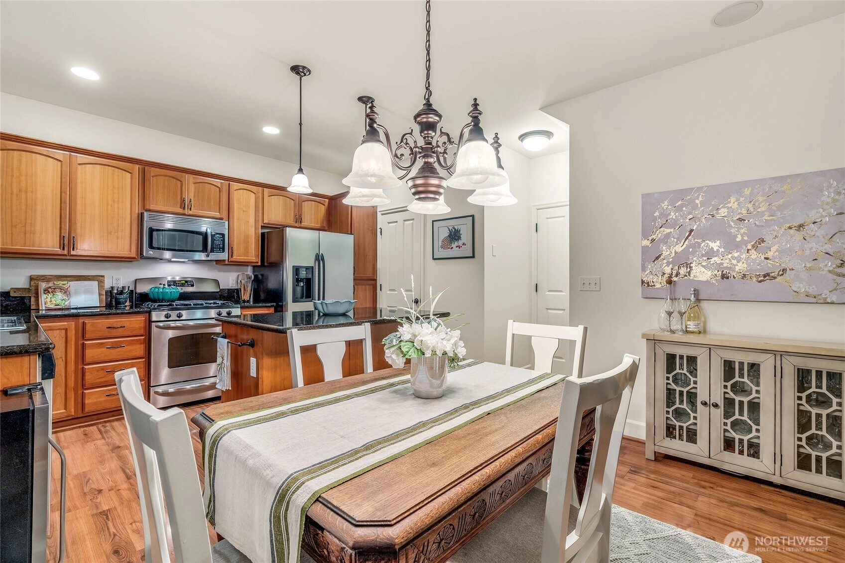 Tucked inside the gated Village at Miller Creek, this Seattle area home backs to a peaceful greenbelt and offers a connected community with an off leash dog park. Bright interiors feature open concept living with hardwood floors, gas fireplace, and a modern kitchen with granite counters and stainless appliances. A private deck extends your living space outdoors for morning coffee or relaxing among the trees. The lower level flex suite with kitchenette and patio entry adds space for guests or a home office. Central AC, fenced yard, two car garage, and easy access to downtown Burien, parks, schools, shops, trails, and commuter routes for move in ready comfort and modern Pacific Northwest living.