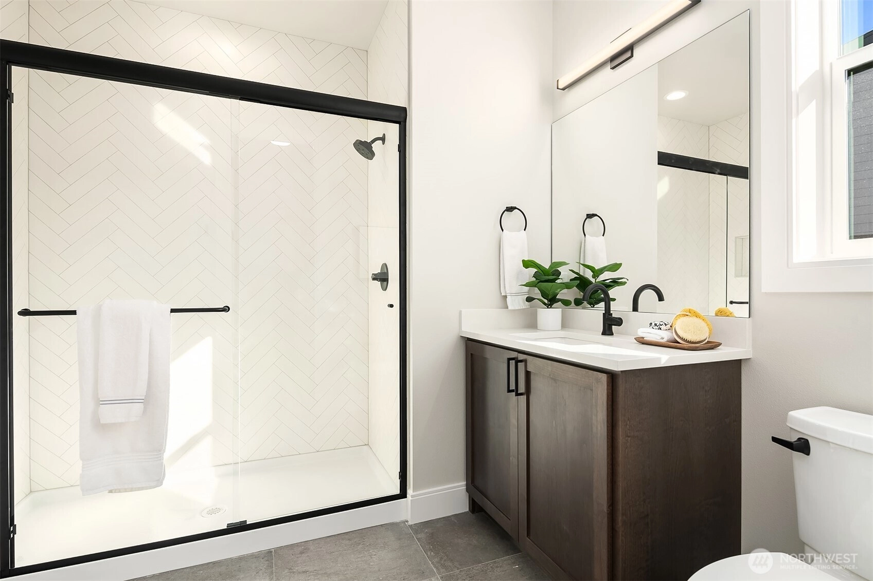 Phillips Ridge Phase 2 New Northwest Contemporary Luxury Homes on 1/4 Acre+ Homesites. OLYMPIC 3910: Covered porch, grand vaulted entry, main floor den, guest suite & 3/4 bath. Stunning two story great room with floor to ceiling ceramic tile fireplace, & covered outdoor living area. Full open rail custom staircase with hardwood staircase. Gourmet kitchen has high-end stainless steel appliances, grand quartz waterfall island, coffee bar & walk-in butlers pantry with second under mount sink. Primary suite boasts a freestanding soaking tub, frameless glass shower and heated floors. Includes an open bonus room, 4th bedroom w/ attached bath & large flat fenced backyard. Hot water recirculation system, A/C, heat pump. 17,410 sf greenbelt homesite