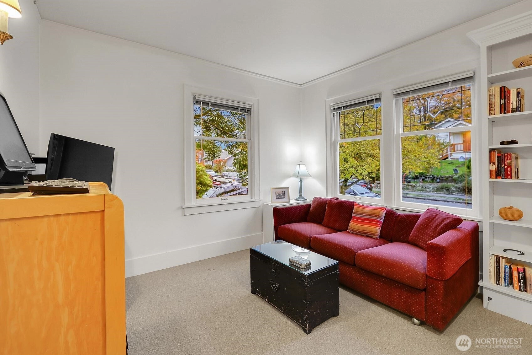 Wonderful circa 1928 Craftsman retains its original charm with gorgeous period millwork, coved ceilings, leaded glass windows, picture rail molding, tiled fireplace, glass doorknobs, & more. Enjoy sweeping views from every level, including two new decks overlooking a sunny, level backyard. Upstairs, both bedrooms feature cozy window seats, stunning westerly views, walk-in closets, & access to the upper deck. Don’t miss the delightful nook currently used as an office. A bonus room on the main level offers flexibility as an office, den, or 4th bedrm. Imagine the possibilities with a kitchen remodel or finishing the basement with French doors to a patio & garden. Tucked on a quiet, friendly street close to so many charming shops & restaurants.