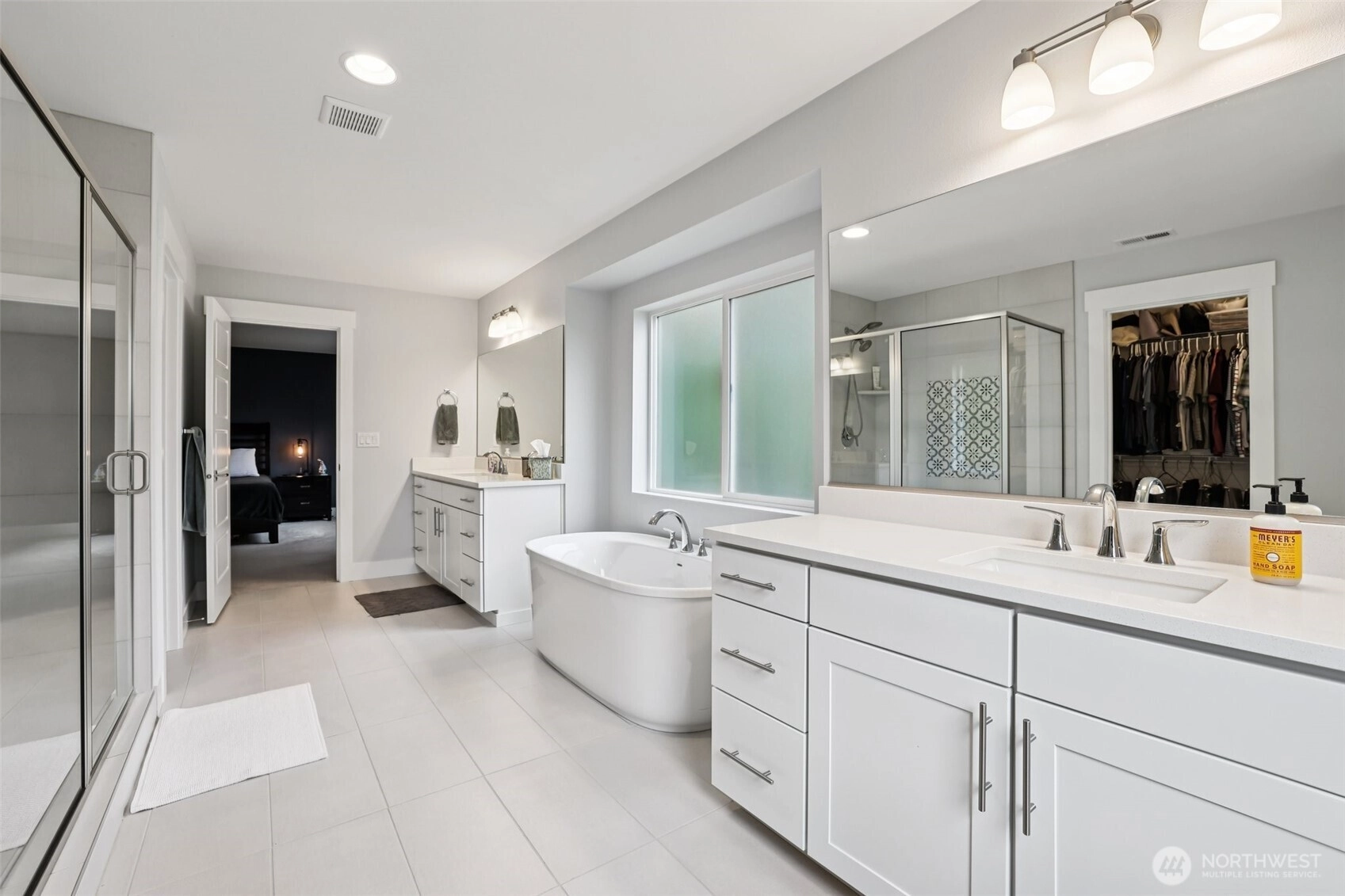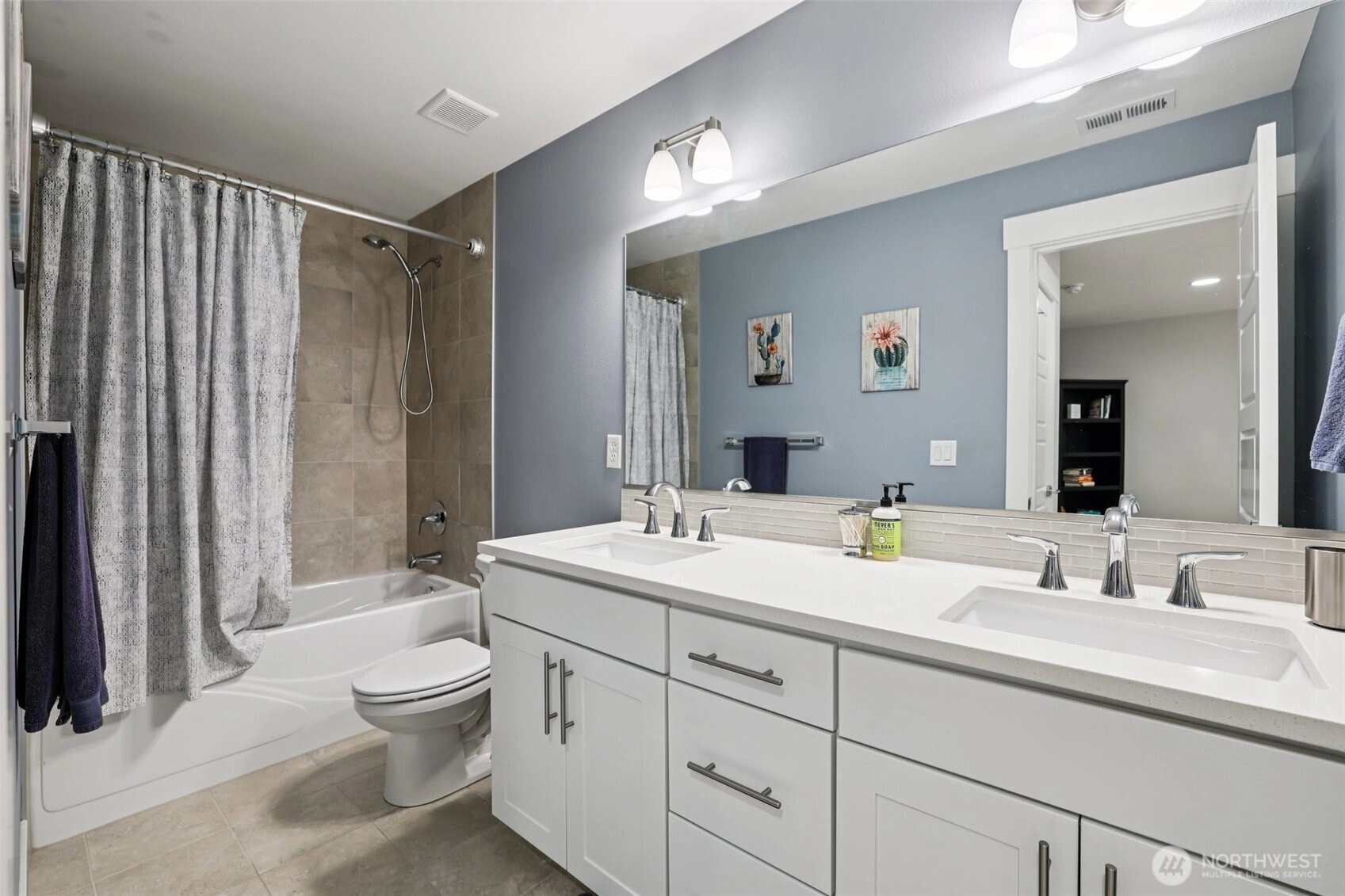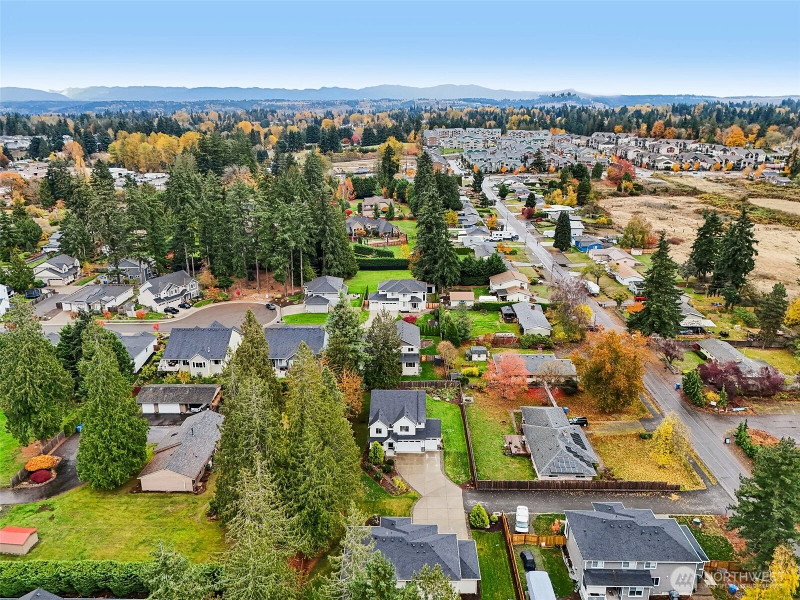 Don't miss out on an opportunity to own a custom built home by the Builder High Country. Built to completion in 2021. These homes are of the highest quality. The home has luxurious iron spindle railings with elevated ceilings, it boasts a cozy fireplace, with a covered outdoor living area. The kitchen has quartz countertops and sleek stainless steel double wide refrigerator and freezer. Large island in the kitchen for Entertaining. The master bedroom has a walk in closet with a luxurious tub and full tile shower with a spacious three car garage. This home is on a private street, fully paved with a partial view of Mountain Rainier.