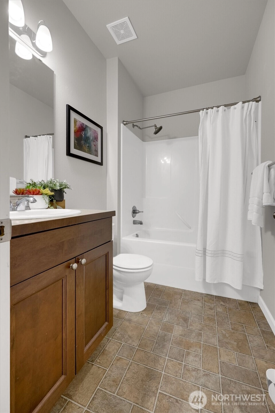 Welcome to the Seola Gardens community! Newly installed vinyl plank floor thru out main level of the home. Entertain your guests in your bright kitchen that opens up to a separate dining area. Enjoy BBQ’s fully fenced back yard and large newly painted deck for outdoor entertainment. Backed by greenbelt and beautiful park. The kitchen is complete w/granite tile countertops, SS appliances. Extra guest bedroom and full bath on main floor. Relax upstairs in a great room that offers flex space or second entertainment area. The expansive primary bedroom complete with soaking tub & huge custom built in walk-in closet. Two community parks. Easy access to SeaTac Airport, Hwy 99 & I-5. Close to Burien town center, minute to West Seattle.