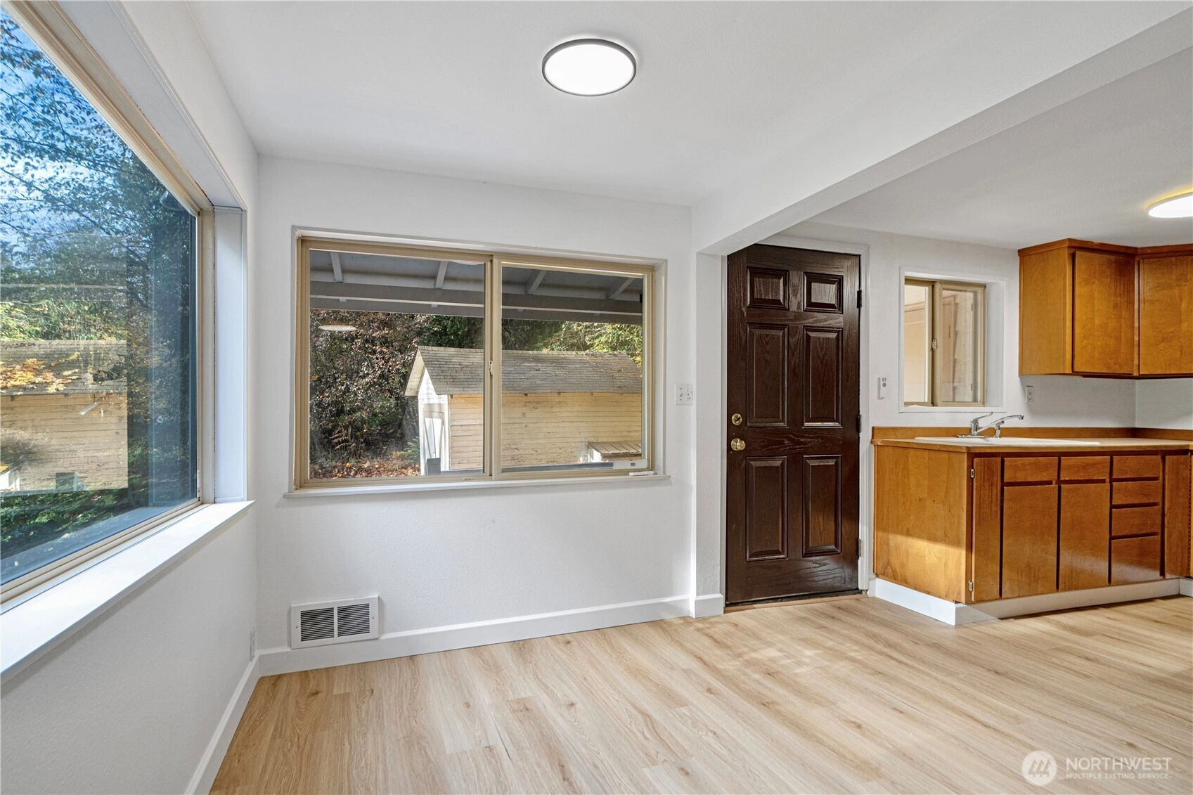 Charming 2 bed/1 bath bungalow in the top-rated Tahoma School District. Recently updated with new flooring, fresh interior paint, and a remodeled bathroom, this move-in ready home is full of character. Nestled in a peaceful setting with mature landscaping and the soothing sounds of nature, the open floor plan features a spacious living room with a cozy pellet stove that warms the adjoining kitchen and dining area. A classic covered entry enhances curb appeal, while a convenient laundry area and ample storage complete the home. Ideally located near the Cedar River, Cedar River Trail, local parks, shopping, and dining, this home offers a perfect blend of comfort, convenience, and value—ideal for first-time buyers, downsizers, or investors.