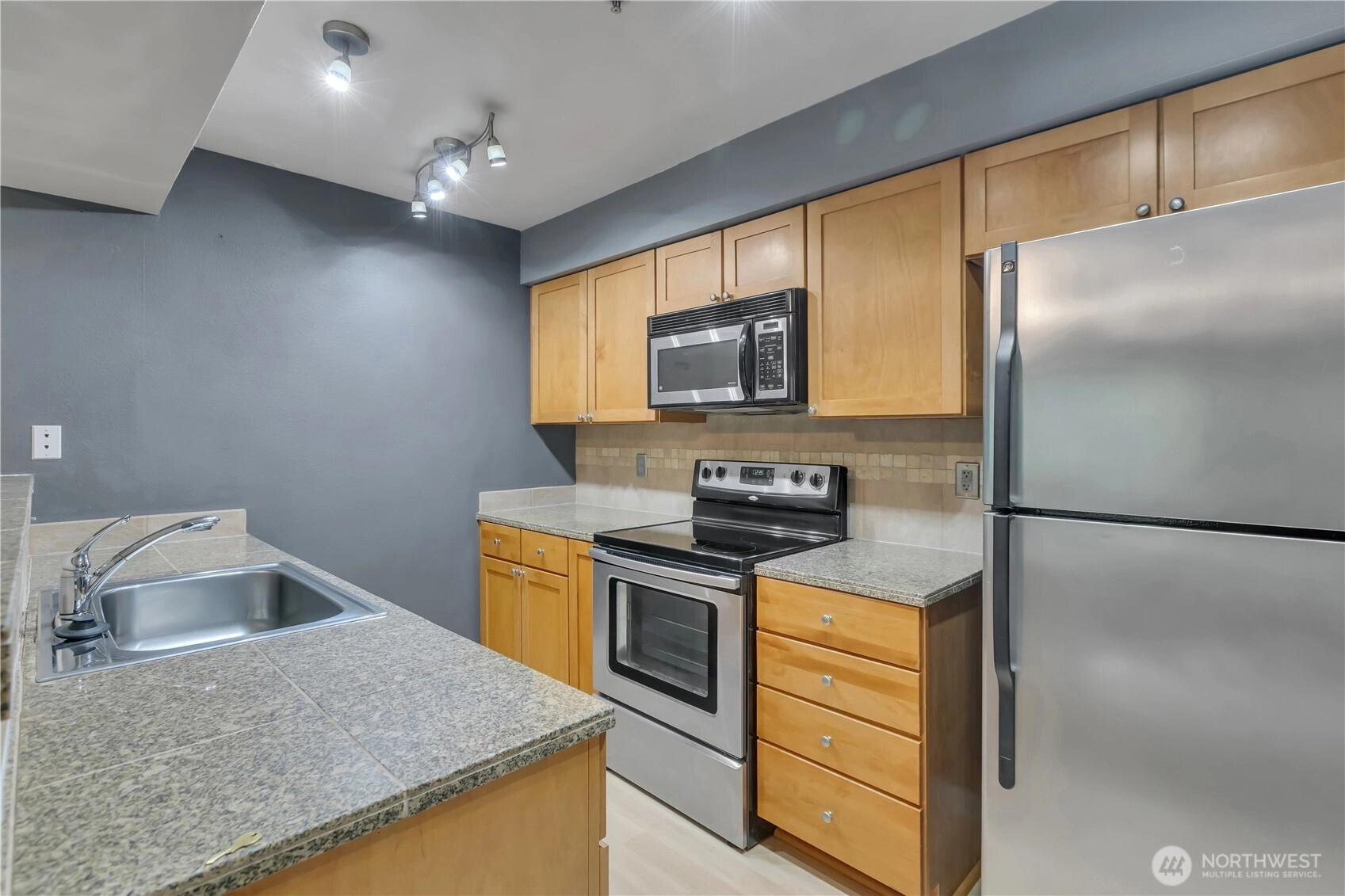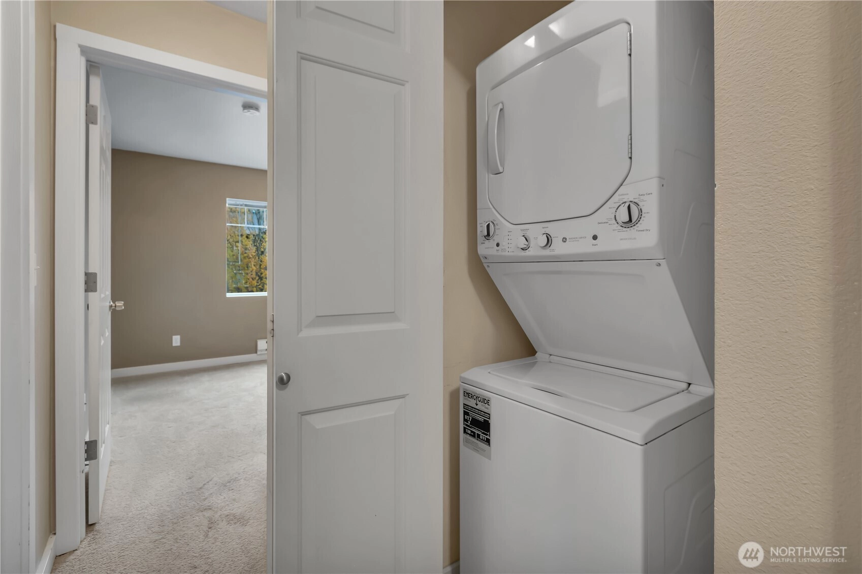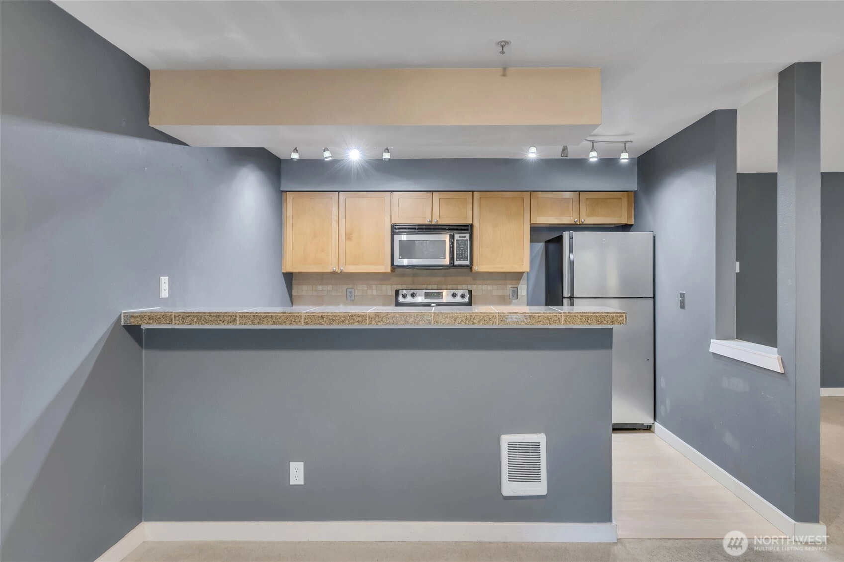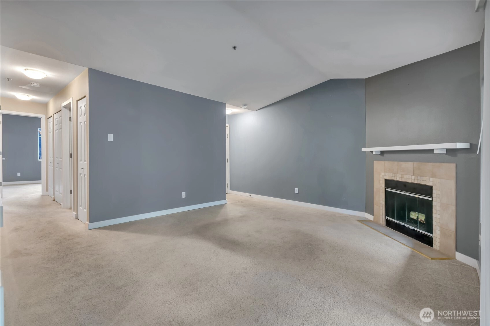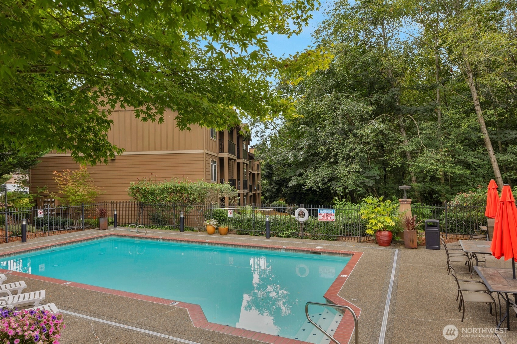 Convenient Bothell condo @ Brookwood Place. This Top Floor unit is very quiet, backing up to the greenbelt area. The floor plan feels open & large with vaulted ceilings, a cozy wood burning fireplace and access to the deck. A roomy galley kitchen has breakfast bar & dining area. The Primary with En-suite features high ceilings, a walk-in closet off of the 4 piece bathroom. Convenient in-unit laundry. Outside on your private covered deck you can relax and listen to nature. The community offers something for everyone with a fitness center, clubhouse, & a sparkling seasonal pool. All of this comes with the bonus of being close to major highways, top local employers, shopping, dining, & transit. 1 Parking spot. Priced to sell quickly!!