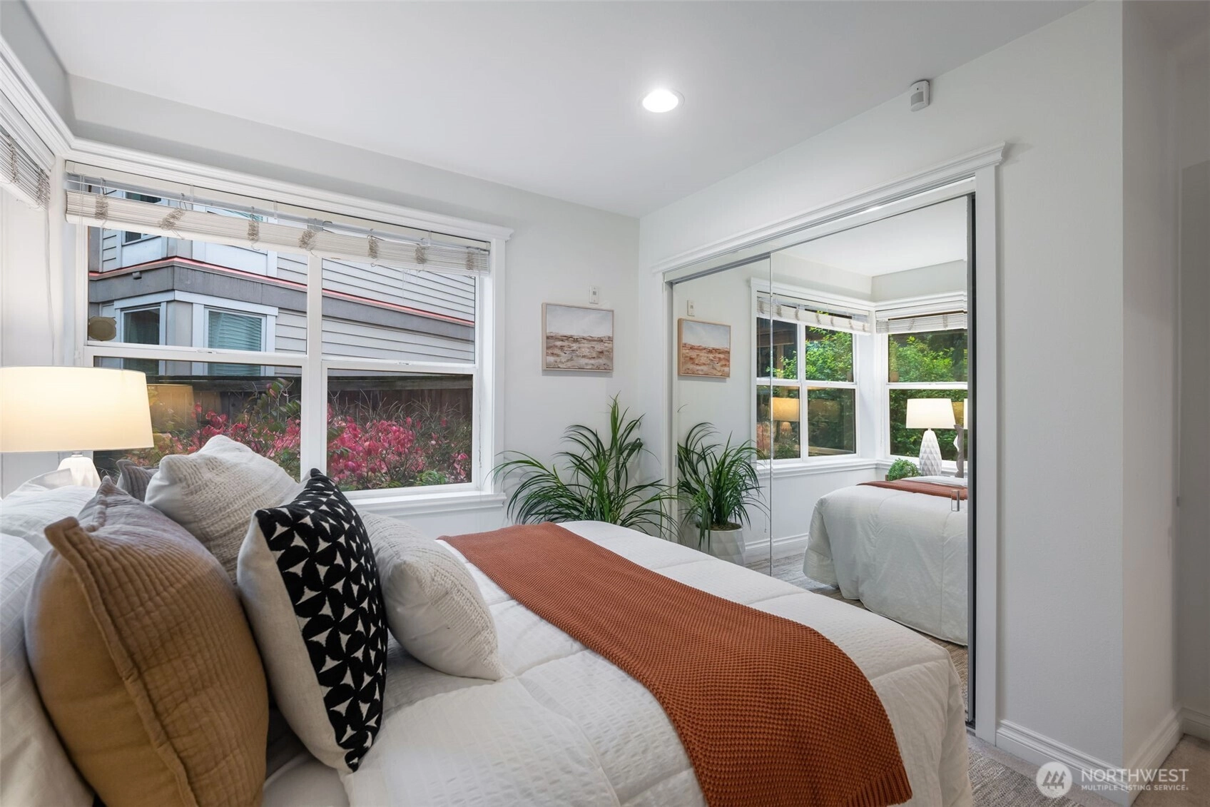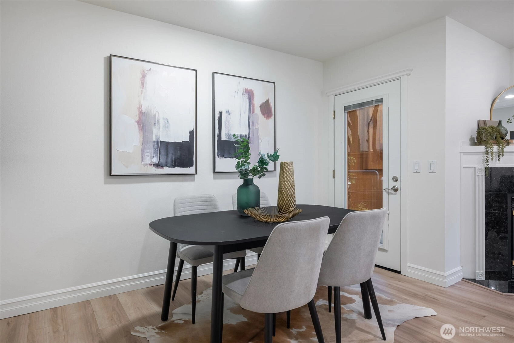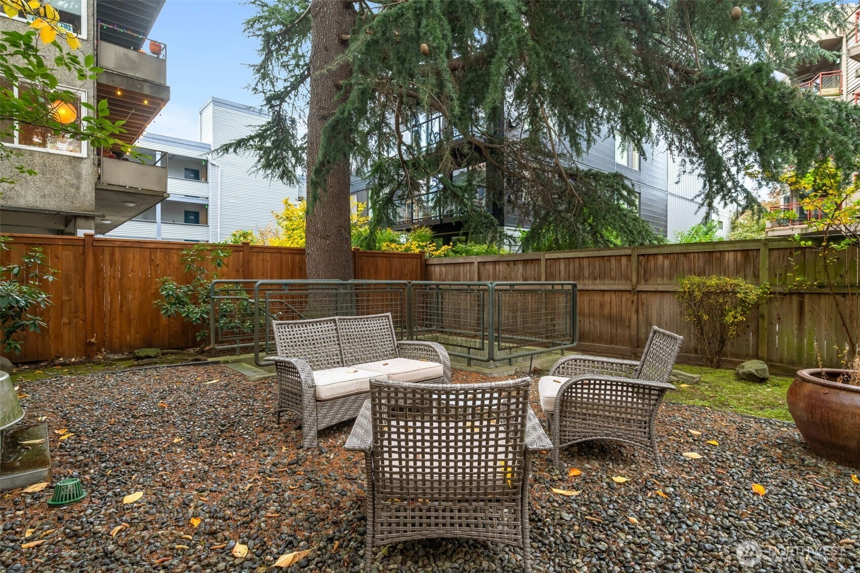 Discover refined urban living in the heart of Capitol Hill. This light-filled corner unit offers a rare combination of privacy, comfort, and style. Inside, a cozy gas fireplace anchors the open living space, while two generously sized bedrooms provide the perfect retreat for rest & relaxation. Modern kitchen features bar seating, sleek cabinetry, and stainless steel appliances. Step outside to your expansive private patio with lush yard space, perfect for morning coffee, gardening, or evening gatherings. Enjoy the convenience of secured garage parking, plus effortless access to I-5, renowned restaurants, boutique shops, parks, and the Capitol Hill lightrail station. Every detail invites you to embrace a lifestyle of sophistication and ease.