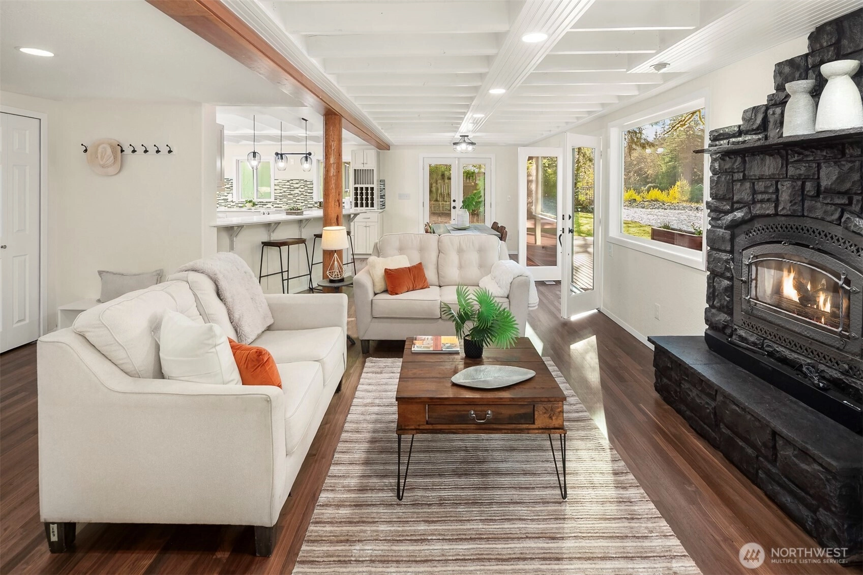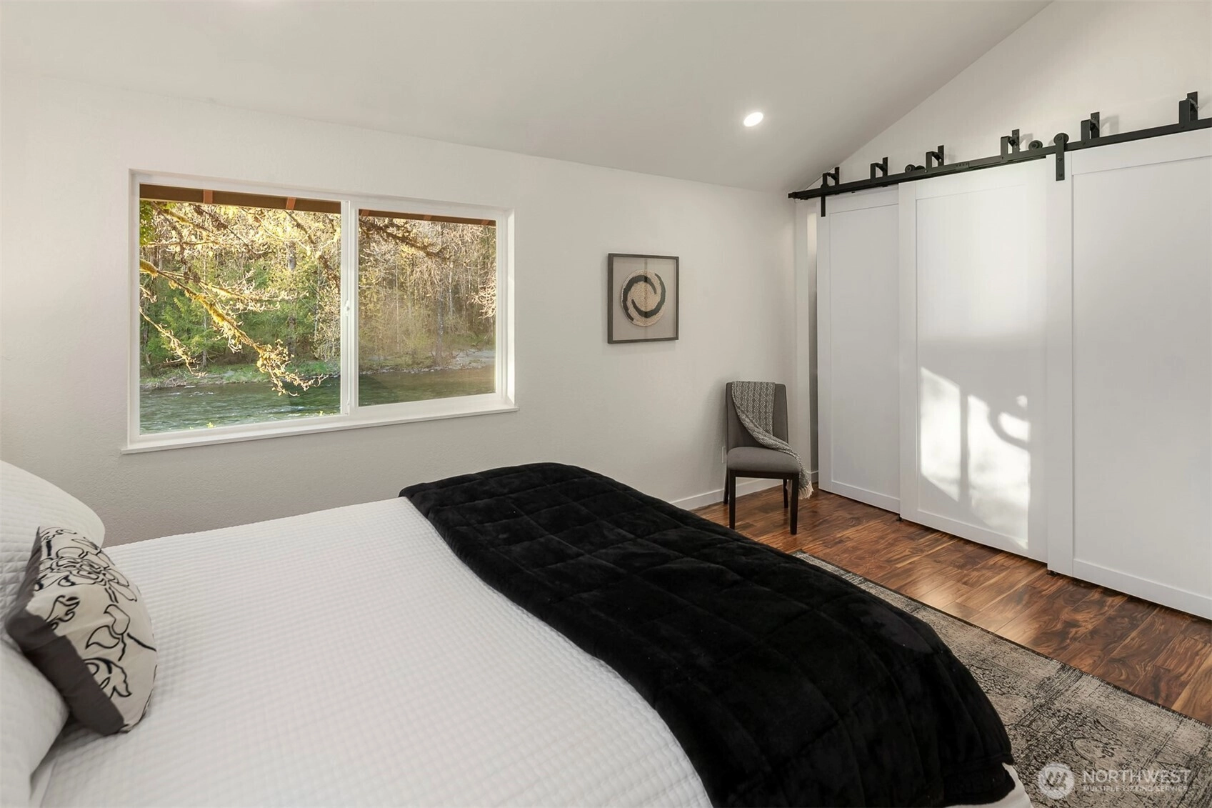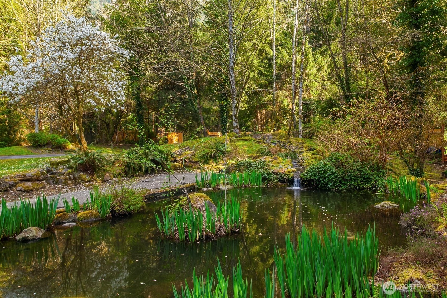 225 feet of glorious waterfront on the majestic North Fork of the Snoqualmie river. Stunning views of Mt. Si. Freshly updated with slab quartz counters, freshly painted, new fridge, new lighting & a massive primary suite that has just been updated with new flooring. Fall asleep to the soft babbling river below! Fly fish from your front yard! Marvelous large waterfall feature with koi pond. An Invisible Fence system, Air Conditioned comfort, Hardi-Plank siding. The generator is included. Don't miss the guest house! A 660 square foot second home with it's own septic/well and electrical adjacent to the main house. Over $100k in updates including slab granite counters and SS appliances. The perfect retreat-in romantic North Bend!
