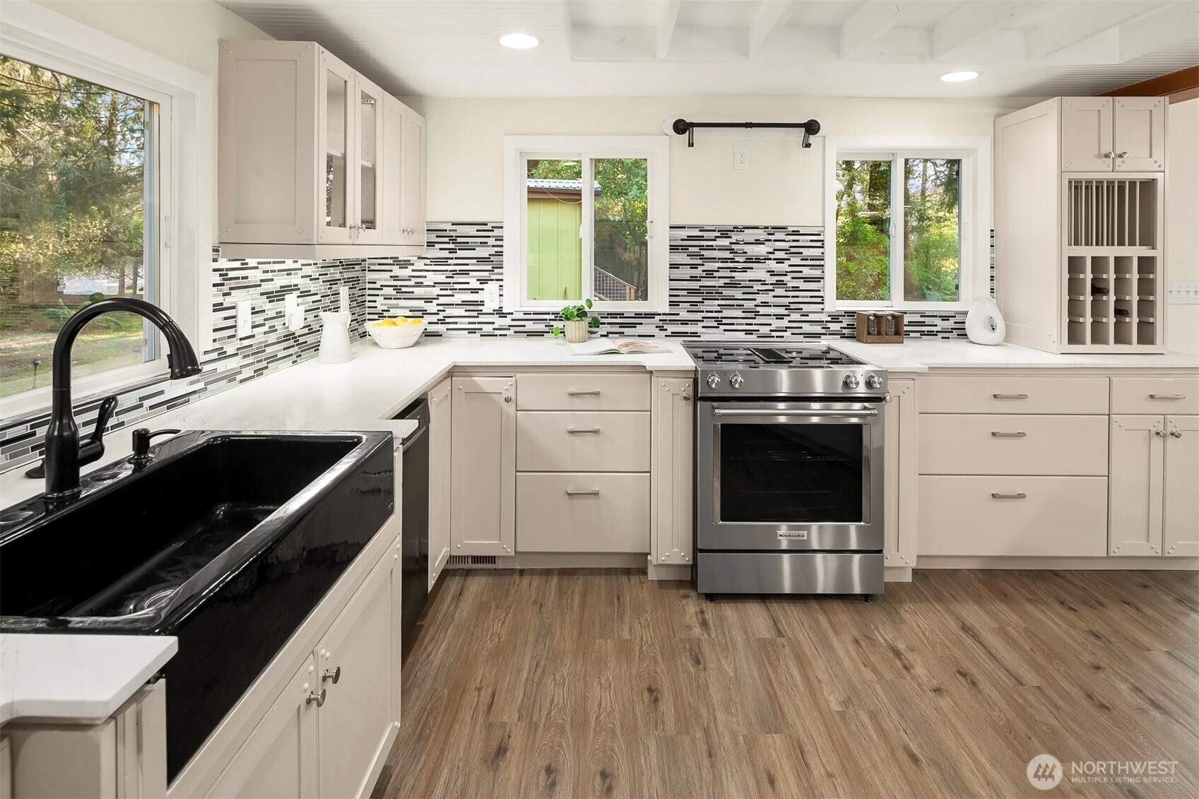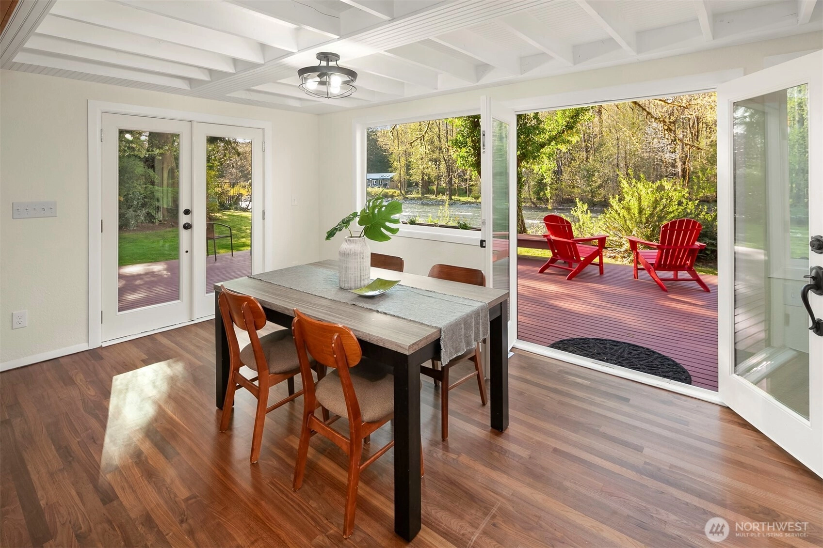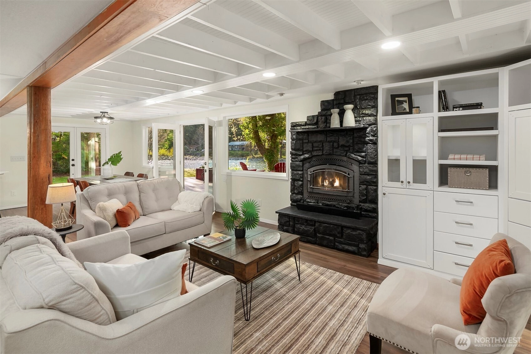 225 feet of glorious waterfront on the majestic North Fork of the Snoqualmie river. Stunning views of Mt. Si. Freshly updated with slab quartz counters, freshly painted, new fridge, new lighting & a massive primary suite that has just been updated with new flooring. Fall asleep to the soft babbling river below! Fly fish from your front yard! Marvelous large waterfall feature with koi pond. An Invisible Fence system, Air Conditioned comfort, Hardi-Plank siding. The generator is included. Don't miss the guest house! A 660 square foot second home with it's own septic/well and electrical adjacent to the main house. Over $100k in updates including slab granite counters and SS appliances. The perfect retreat-in romantic North Bend!