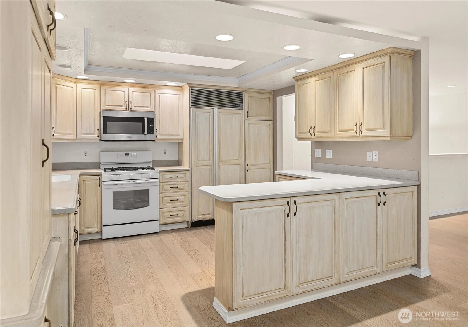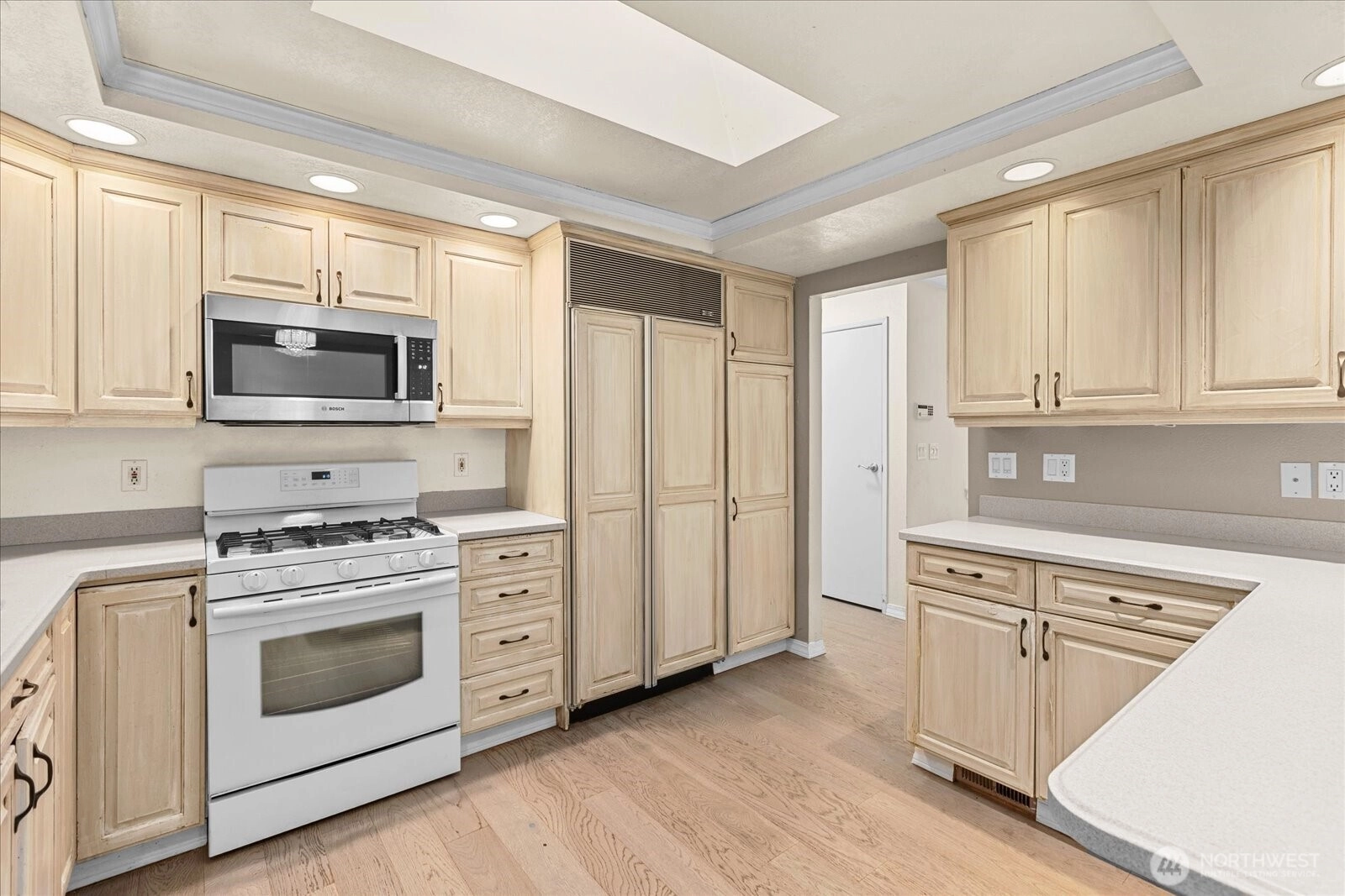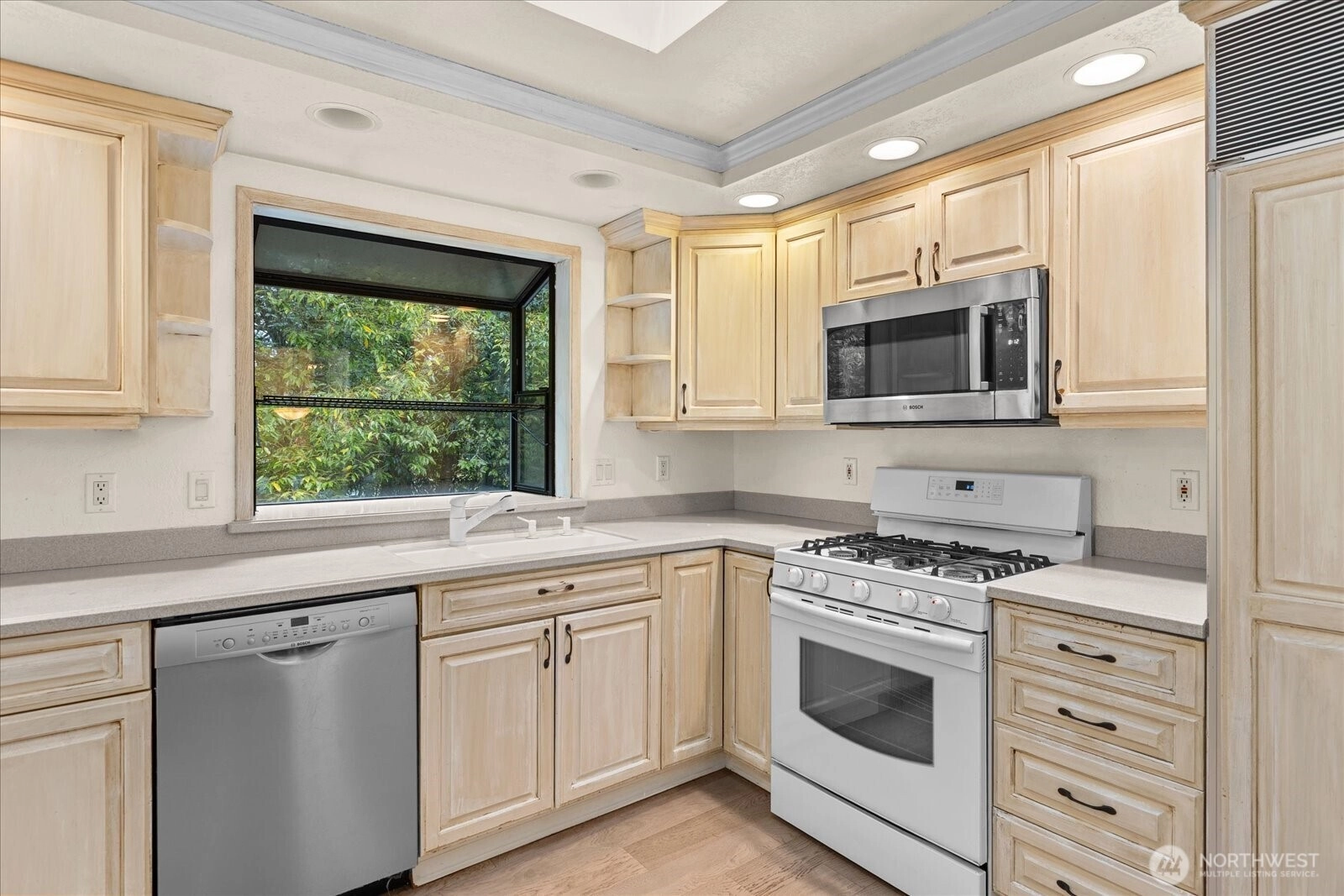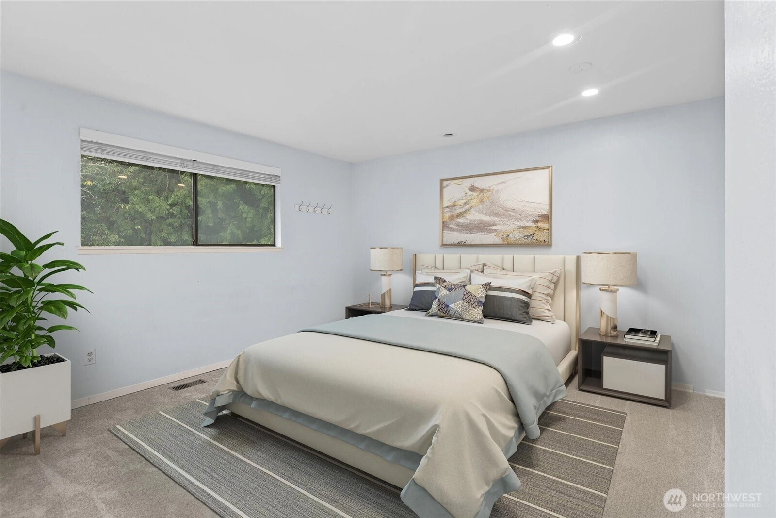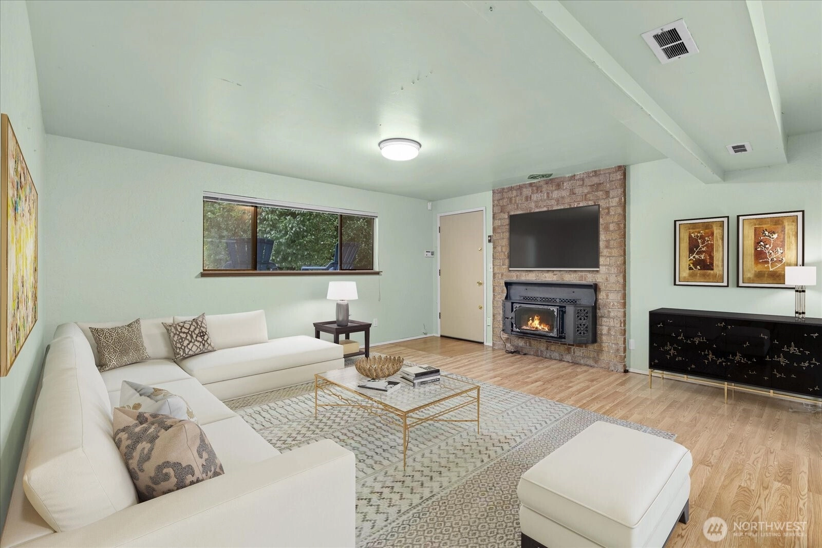 Rare opportunity in the sought-after Bridle Trails community! Bright, open great room with abundant natural light & spacious kitchen featuring gas range, sub-zero fridge, and eating bar. Lower level offers a separate entry, large family room, full bath, and second kitchen with slider to an entertainment-sized deck, ideal as an ADU for multi-generational living or rental income. Attached two-car garage with ample storage. Fully fenced backyard with storage shed and 12x12 insulated, heated office - perfect for WFH. Prime location on a quiet dead-end street, just steps to Taylor Fields Park and Bridle Trails State Park, and minutes to vibrant downtown Kirkland, Bellevue, and top-rated LWSD schools! One of the best neighborhoods in Kirkland!