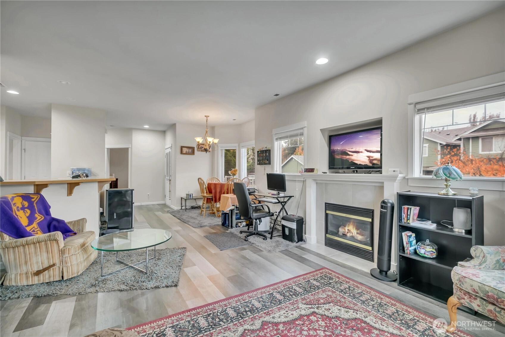 Situated in a desirable gated community, this corner lot rambler condo offers an open-concept floor plan filled with natural light. Enjoy the energy-efficient kitchen with stainless-steel appliances and convenient pull-out cabinet shelves. All appliances stay. Cozy up by the gas fireplace or relax on your private patio. Primary suite features a spacious walk-in closet. Additional highlights include handicap accessibility, a two-car garage and new roof. Prime location close to shopping and freeways.
