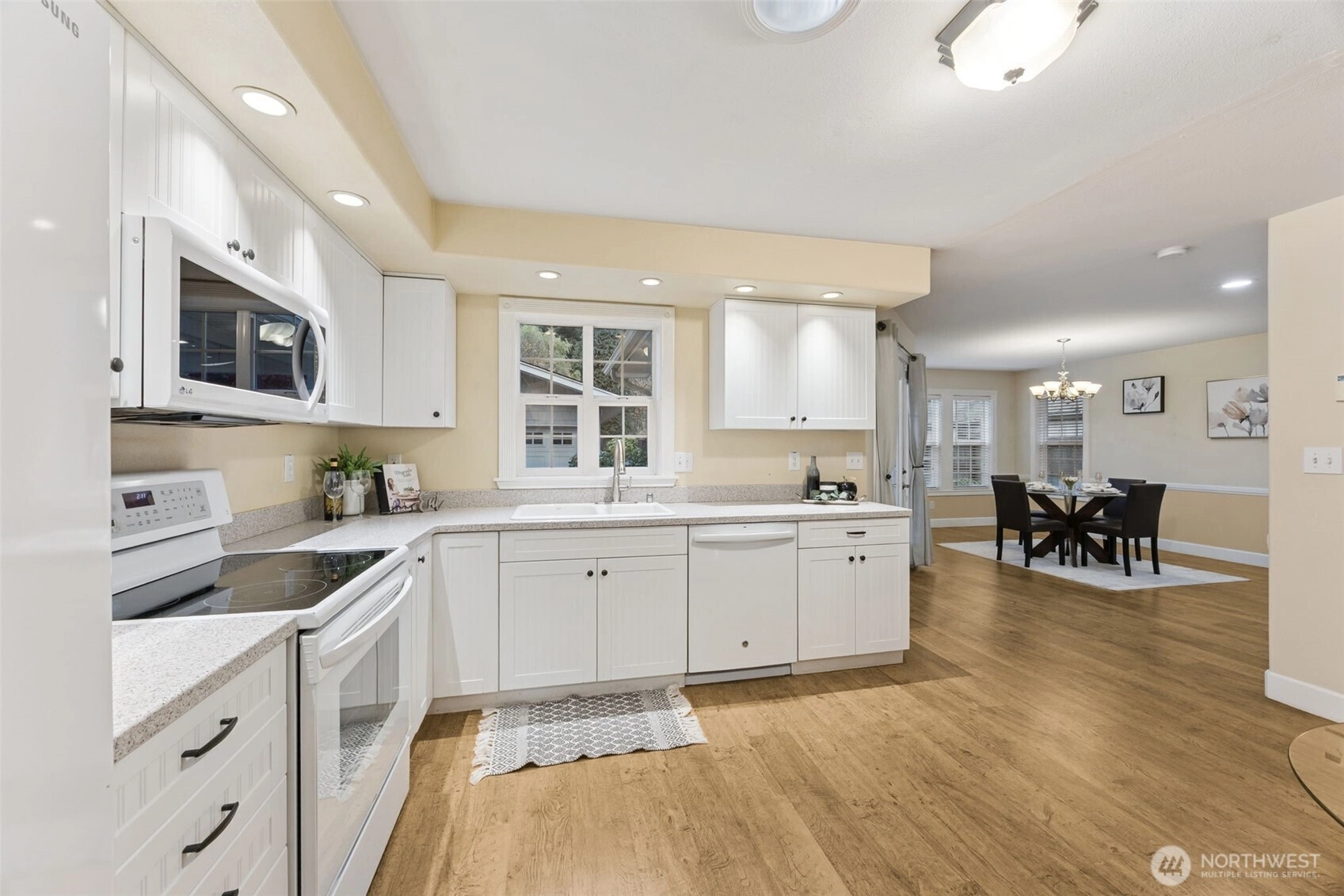 Beautifully updated 1.5-story home in the heart of Sumner, brimming W/character! Step inside to discover an inviting living room W/gas FP & well-equipped kitchen W/dining area—all showcasing the home’s charm. Enjoy radiant floor heating throughout the main level. Primary suite W/an en-suite 3/4 bath & 1 additional guest bedroom + 3/4 bath conveniently located on the main floor. Upstairs offers a spacious bonus/rec room/optional 3rd bedroom! Outside, you’ll find a large, fenced yard W/garden space & patio-perfect for relaxing or entertaining. 2 car detached garage + shop W/workbench area. Centrally located near shopping, dining & entertainment + easy access to HWY 167, 512 & 410. Located in the desirable Sumner-Bonney Lake School District!