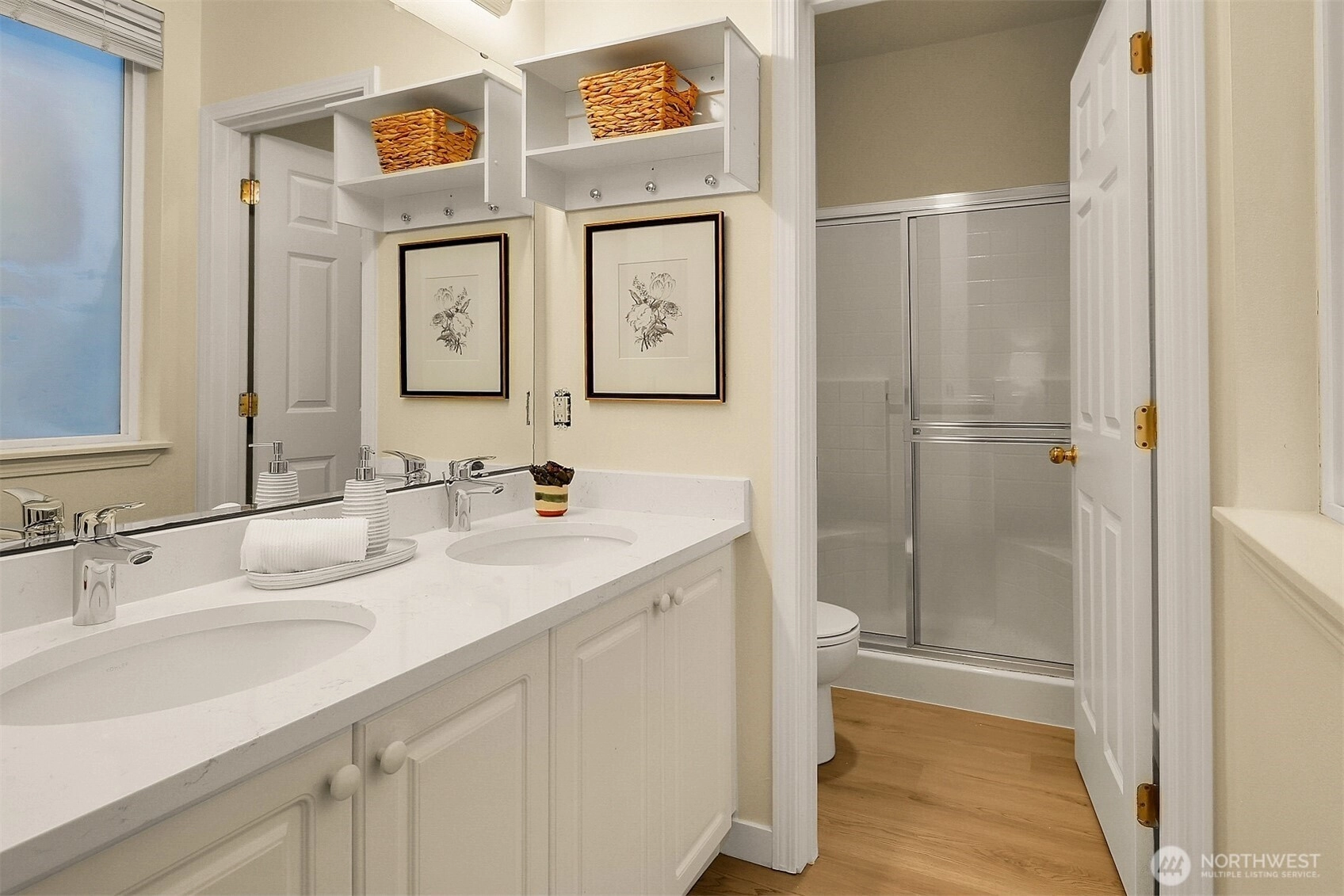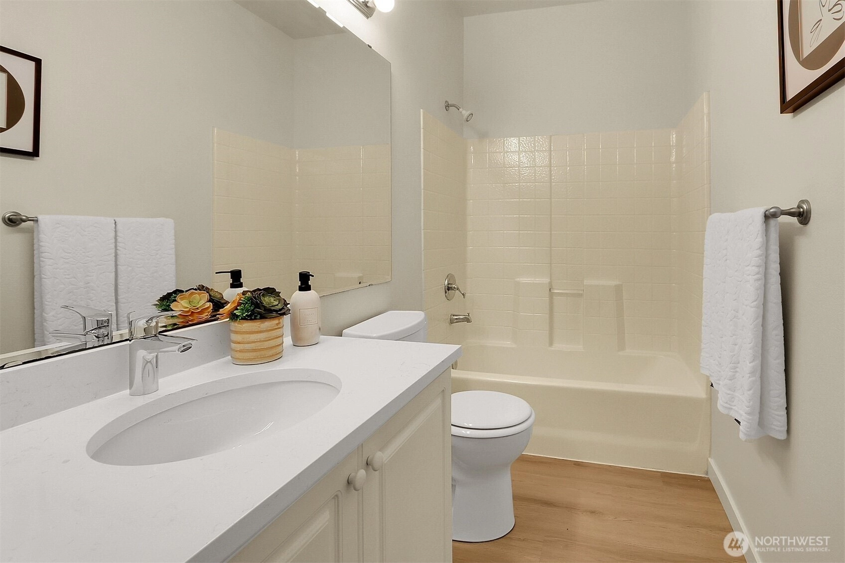 In the heart of Lake Stevens, this freshly updated 2-bedroom condo offers the perfect blend of comfort and convenience. Enjoy brand-new flooring, trim, paint, and quartz countertops throughout this move-in-ready home. The inviting living room features a cozy gas fireplace, while the spacious primary suite boasts a walk-in closet and double vanity bath. With a ground-level entrance, deeded covered parking, and plenty of guest parking, this tucked-away, quiet unit in a well-maintained community is a rare find. Live moments from shopping, dining, and the lake. Your turnkey lifestyle awaits!