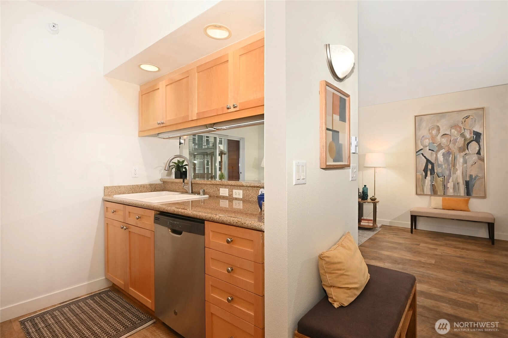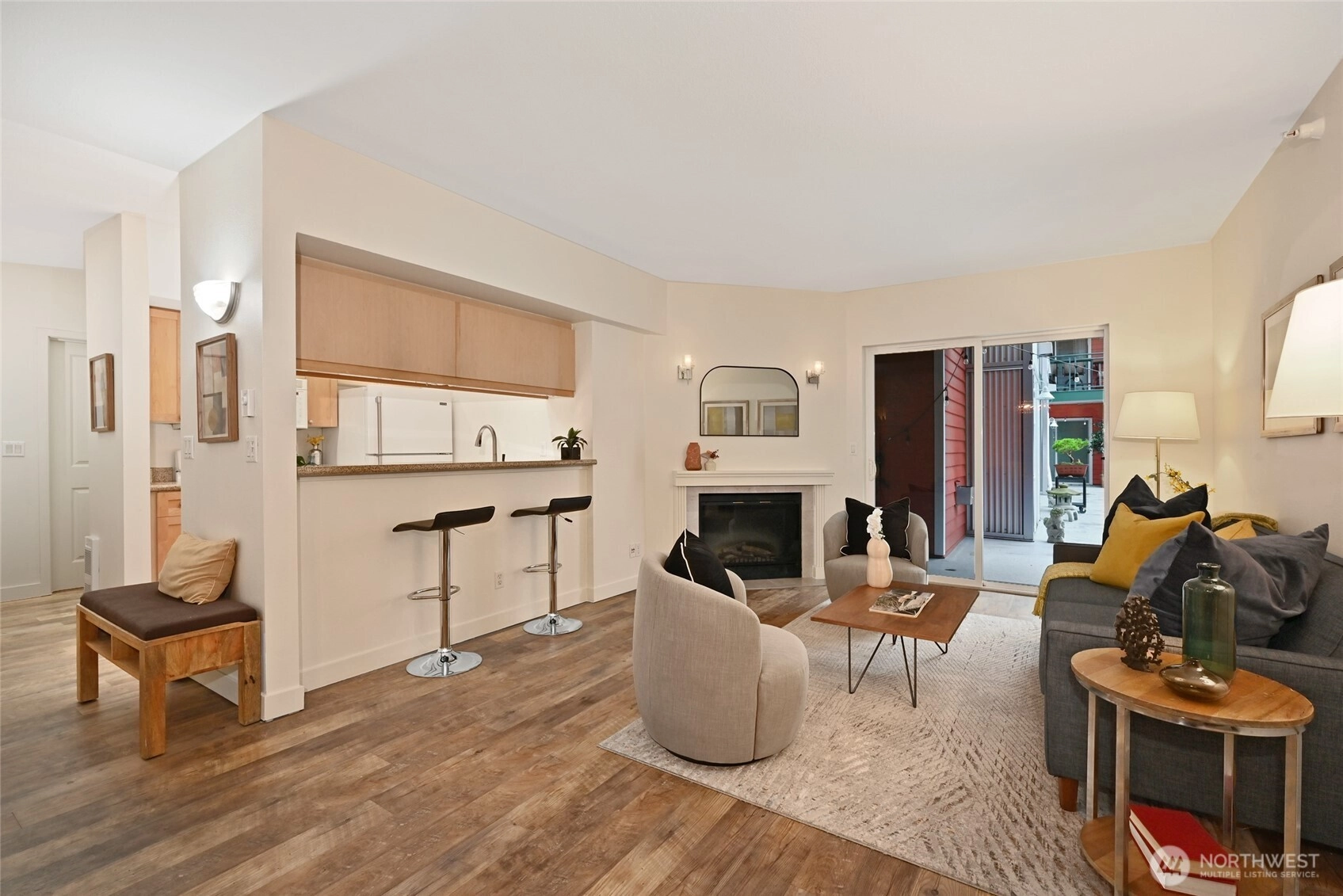Amazing location in the heart of the vibrant Admiral district. This large well-designed one bedroom condo has an entry hall with entry closet, dining room/office area and access to the coveted courtyard deck. There is a walk-in closet in the bedroom and lots of built in storage space in the alcove. The building features all steel and concrete construction, 2 elevators, controlled access parking, fitness center, and a 4000 sq ft rooftop deck with panoramic views of the city, Sound and Olympics. Located across the street from Metropolitan Market and Carnegie Library. Strong HOA.