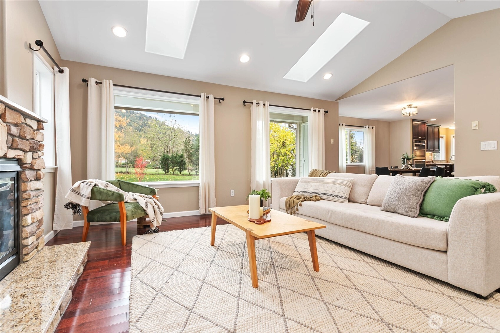 Perfectly placed between Everson & Nugents Corner, this 2013 custom build home offers country tranquility just 15 minutes from Bellingham. Enjoy a quiet, scenic setting on over an acre of flat, dry land with no flood history, mountain view, and 26'x30' insulated shop wired with 220. Outdoor features include two garden plots, a charming outbuilding "chicken palace", and mature fruit & nut trees ready for your harvest. Inside, discover vaulted ceilings, skylights, an upgraded kitchen with double ovens and walk-in pantry, and a luxurious primary suite with soaking tub and tiled walk-in shower. Wired for a generator and complete with a built-in audio system, this well-maintained home blends comfort, function, and peaceful living.