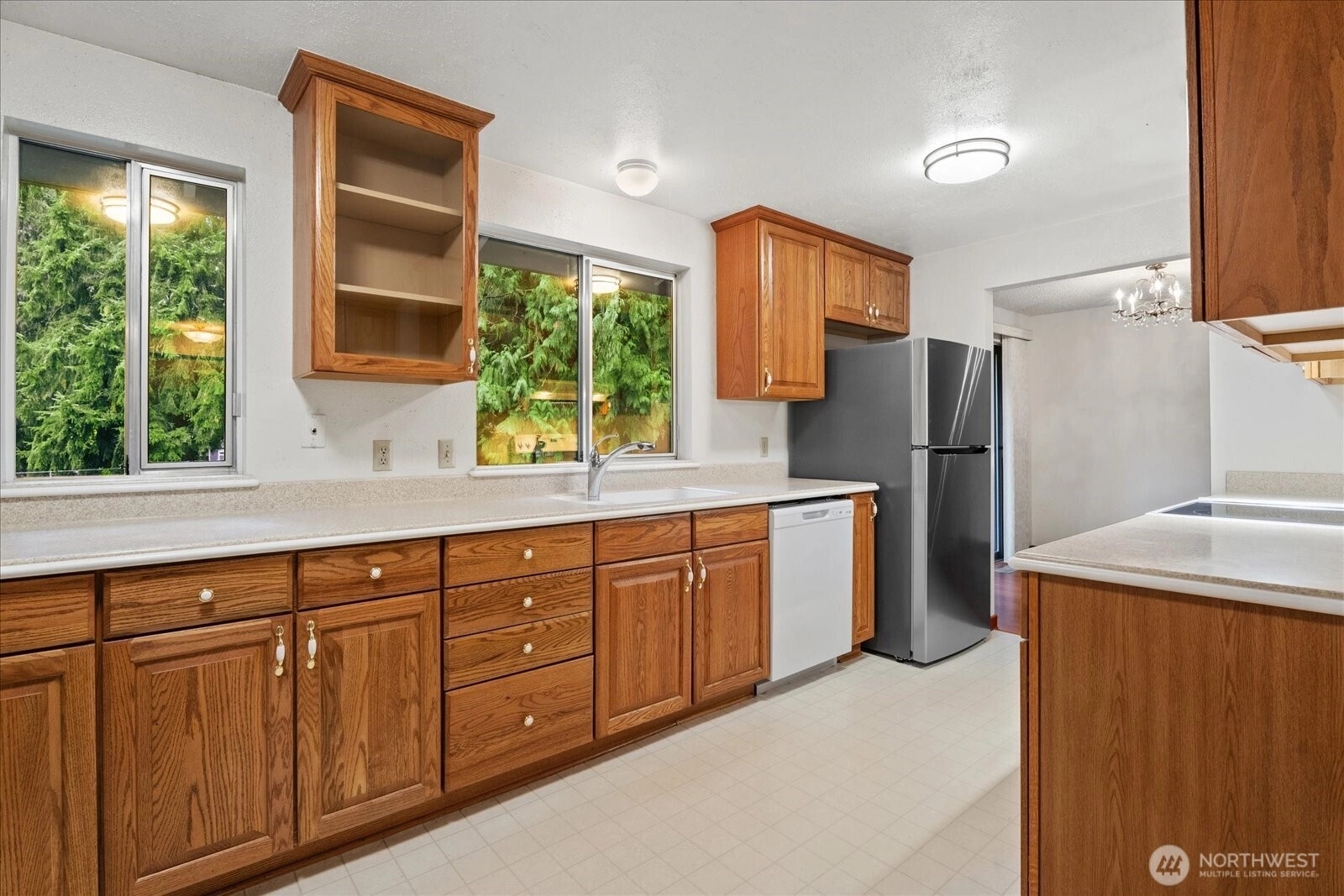Welcome to Highland Meadows! First time on the market, this classic one-owner tri-level home is the opportunity you have been waiting for. Whether you are a first-time buyer or a savvy investor, this home has tremendous upside potential. The layout lends well to those seeking 3 bedrooms all on the same level. The primary has an en-suite bathroom + ample closet space. Outside, enjoy a 1/3 acre with a shed to get you started. Your private deck & patio area will be a summertime hit & there is room for a hot-tub, too. Expansive garage including a shop area & the possibility of adding another bathroom or office/hobby space. Proximity to golf, Emerald Downs, casino, state park, and Sound Transit. Don't miss out!