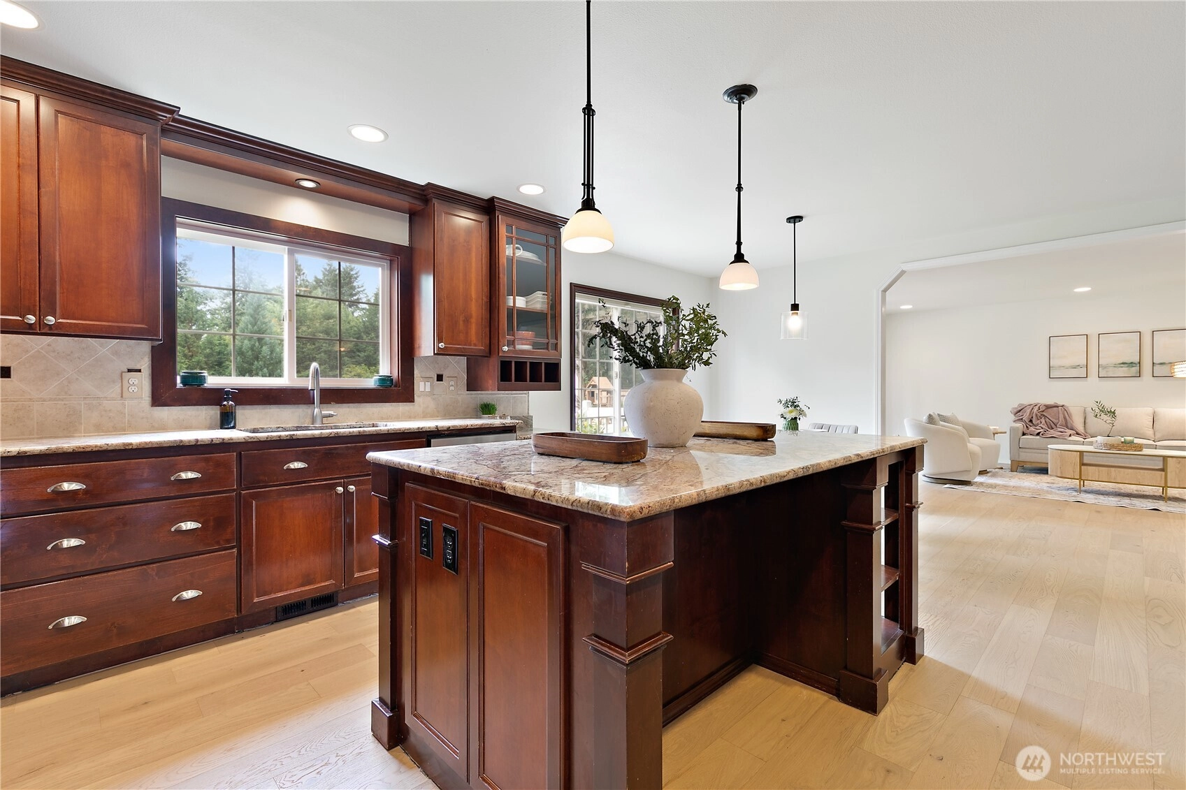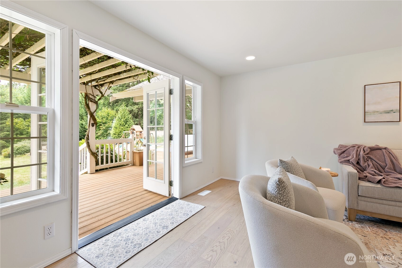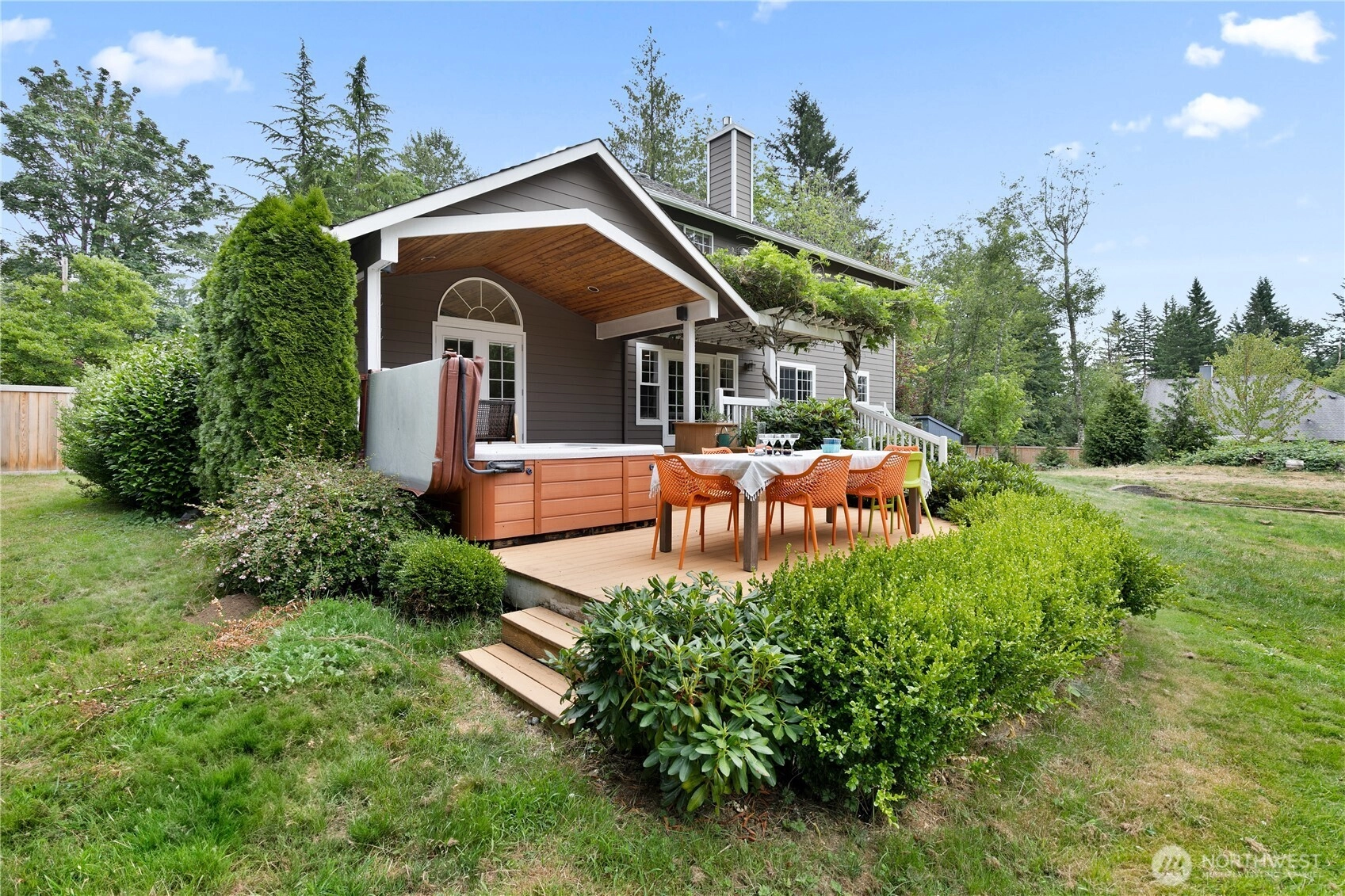 A stunning NW contemporary retreat, remodeled in 2024. Designed with modern comforts and timeless style, this home sits on 1.26 acres of landscaped, fully fenced grounds within the desirable Tahoma School District. Be captivated by soaring vaulted ceilings, new hardwood flooring, and a chef’s kitchen designed for both function and style. French doors lead to an expansive deck with tranquil views—an entertainer’s dream. The main floor primary suite boasts an updated 5-piece bath, dual walk-in closets, and private hot tub access. Upstairs offers a spacious loft, versatile flex space, 3 bedrooms, and a full bath. Peaceful yet minutes from Hwy 169, shopping, & trails. Mortgage savings may be available for buyers of this listing. Welcome home!