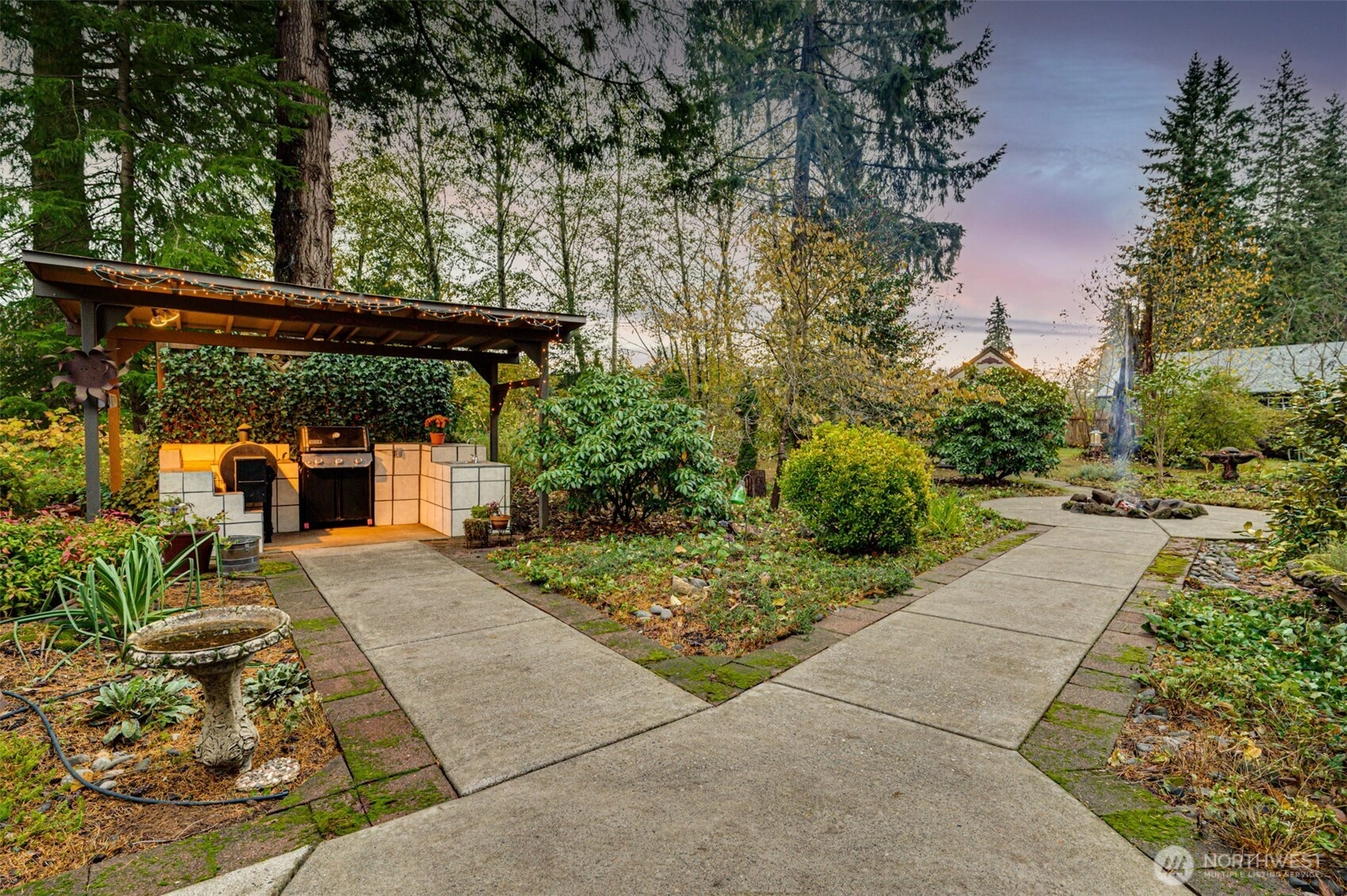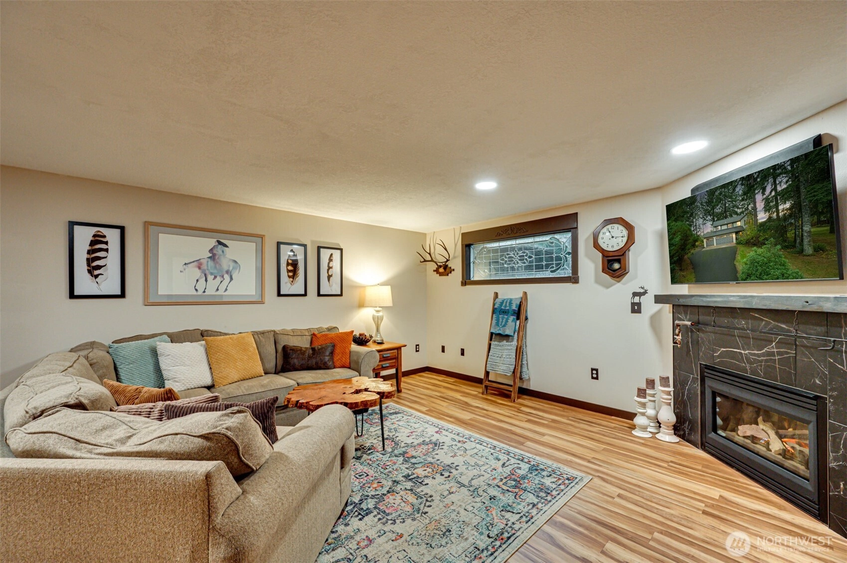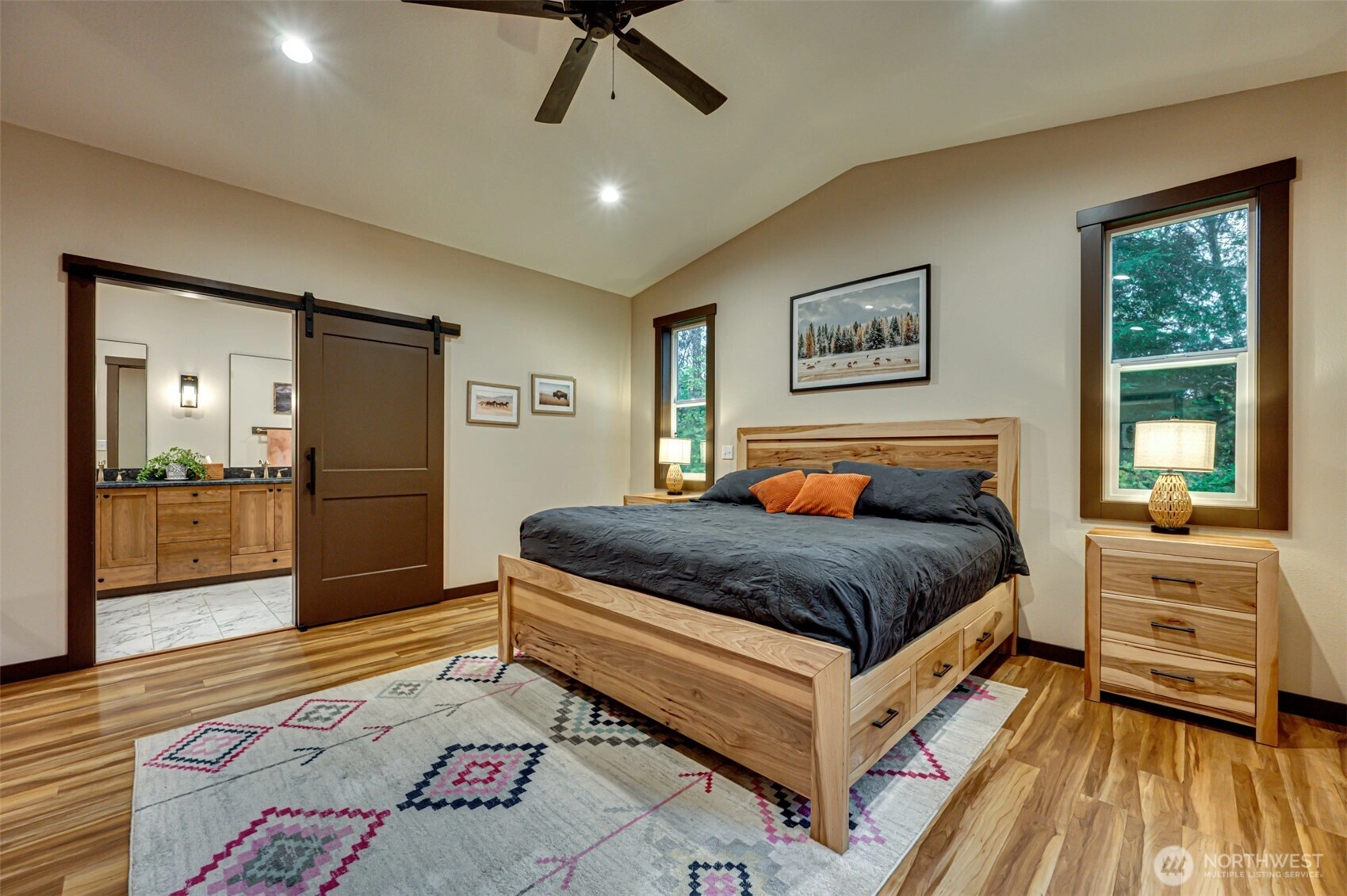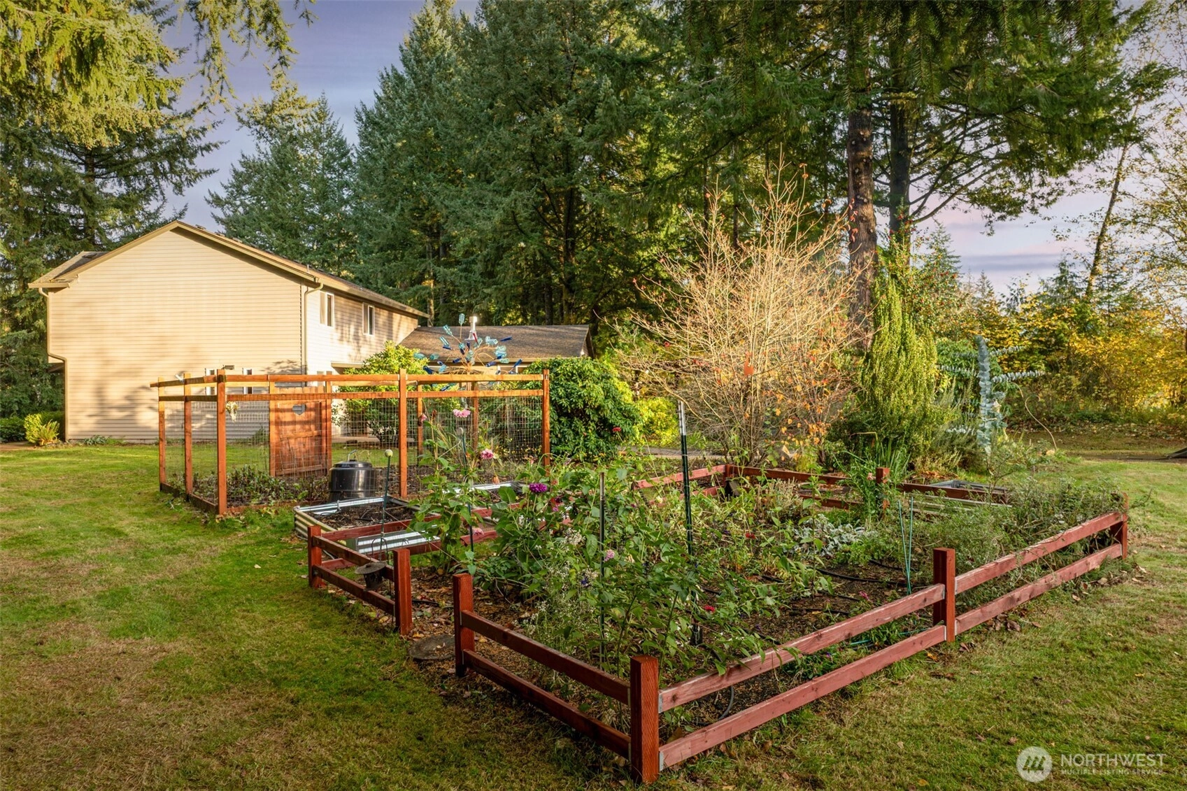 Welcome home! Beautifully maintained private acreage property with an open floor plan, LVP flooring, granite counters, and custom cabinets. The kitchen features stainless Frigidaire double ovens, convection microwave, and a farmhouse sink. Huge main-floor primary suite addition completed in 2023 with vaulted ceilings, dual-sided fireplace, heated tile floors, freestanding tub, and curbless shower. Upstairs offers four more bedrooms, including a second ensuite. Outside, enjoy the oversized covered patio, covered BBQ area, organic deer-proof gardens, 3-car garage, private well, and generator plug. Just 15 min to Battleground, and 40 minutes to PDX.
