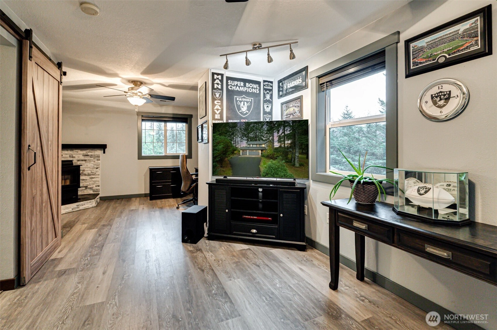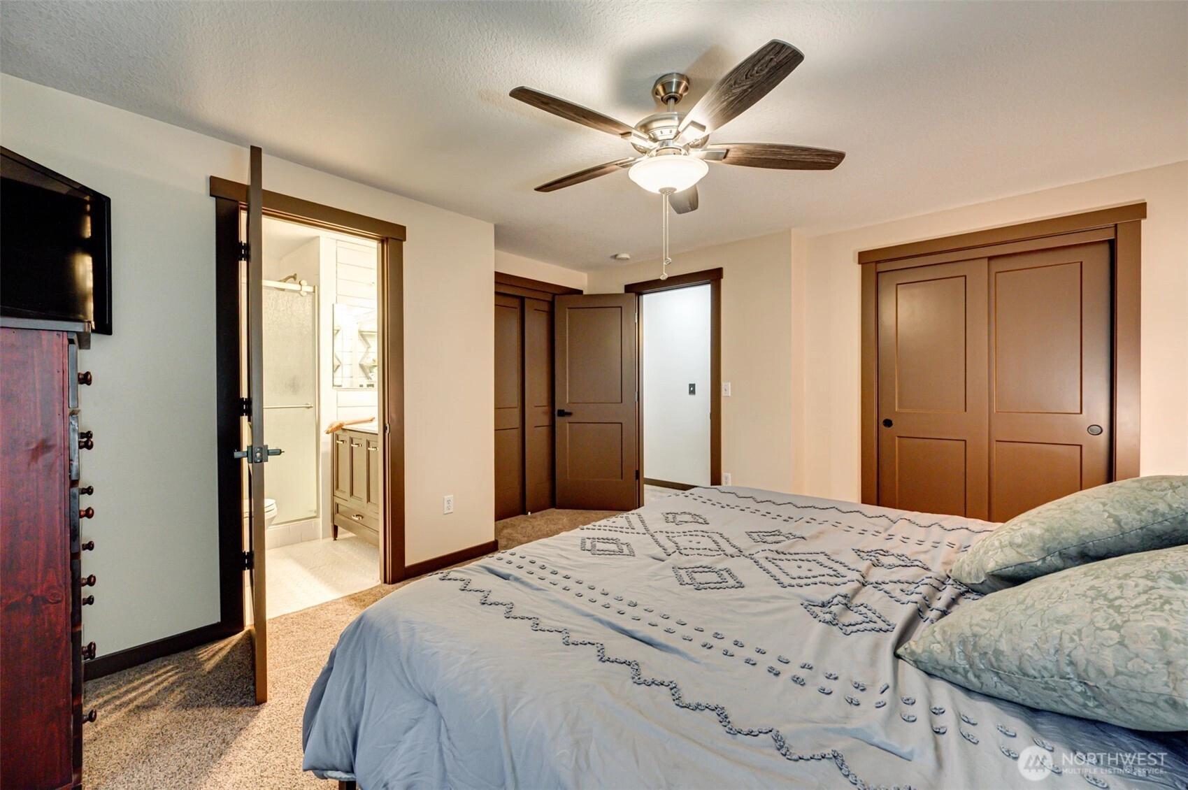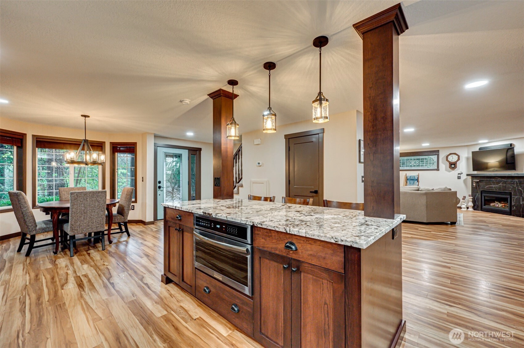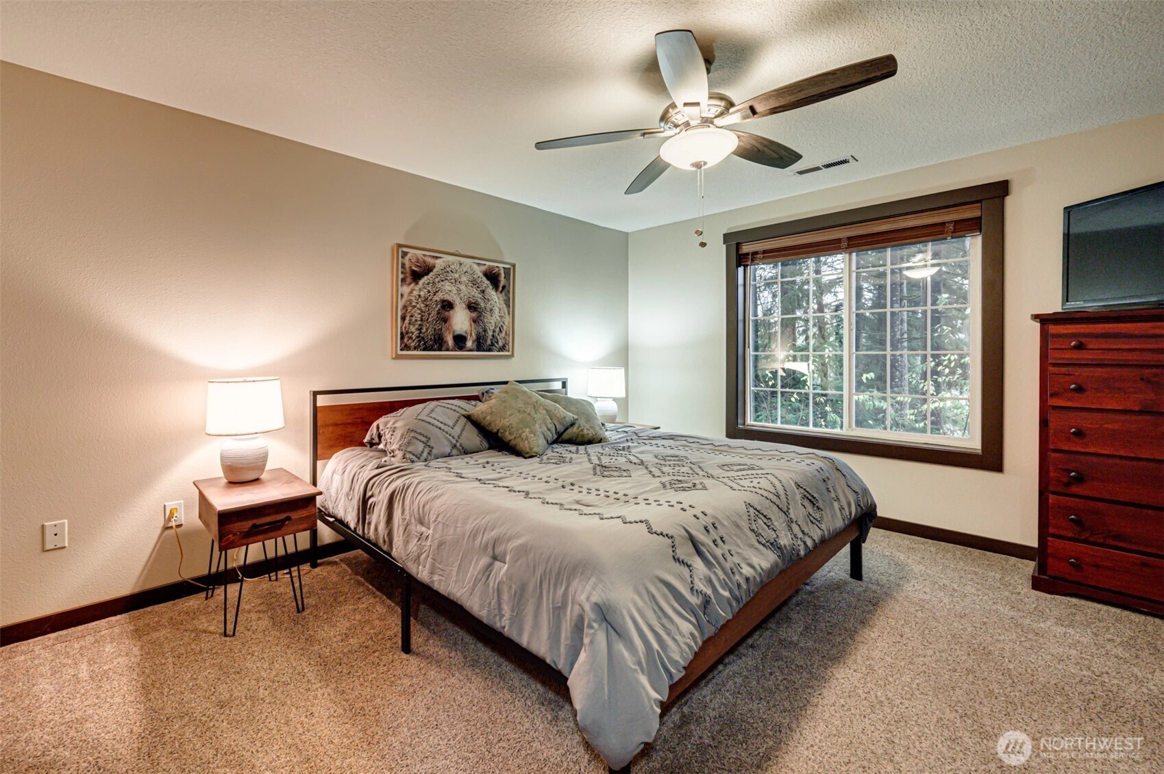 Welcome home! Beautifully maintained private acreage property with an open floor plan, LVP flooring, granite counters, and custom cabinets. The kitchen features stainless Frigidaire double ovens, convection microwave, and a farmhouse sink. Huge main-floor primary suite addition completed in 2023 with vaulted ceilings, dual-sided fireplace, heated tile floors, freestanding tub, and curbless shower. Upstairs offers four more bedrooms, including a second ensuite. Outside, enjoy the oversized covered patio, covered BBQ area, organic deer-proof gardens, 3-car garage, private well, and generator plug. Just 15 min to Battleground, and 40 minutes to PDX.