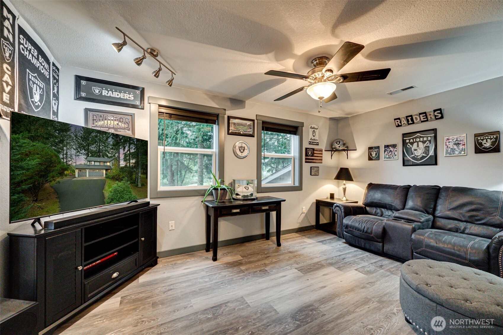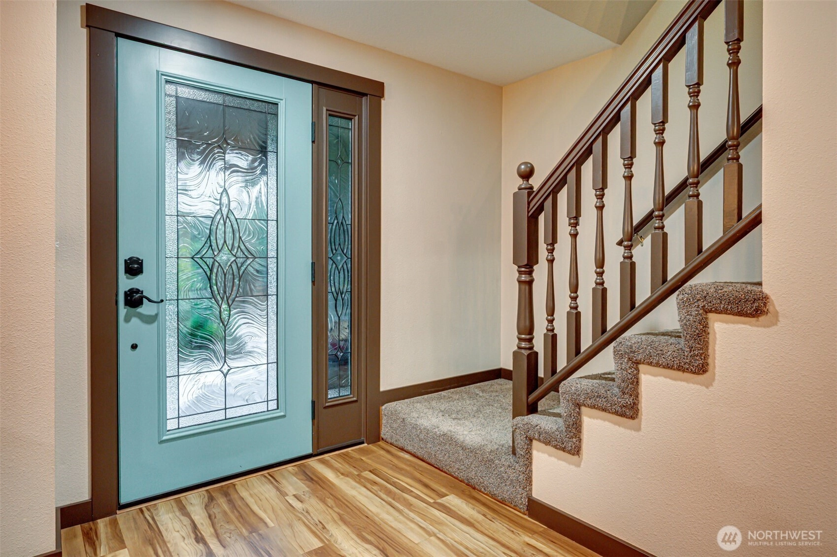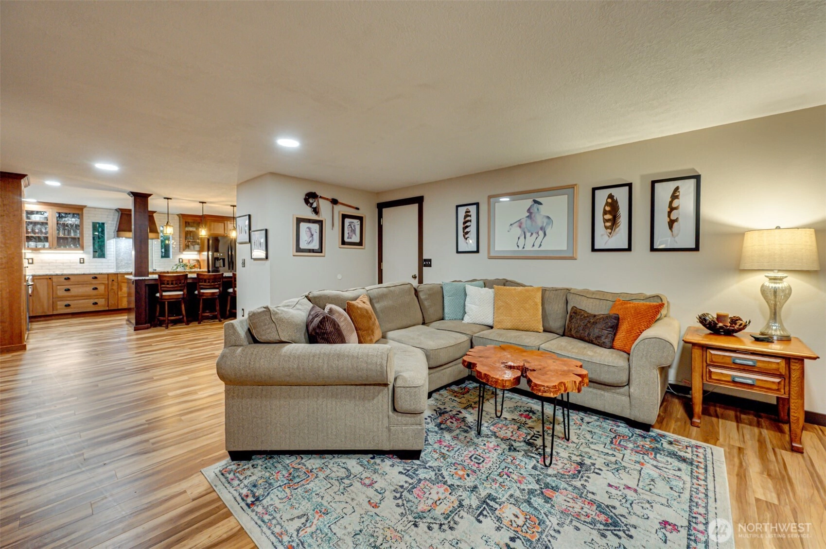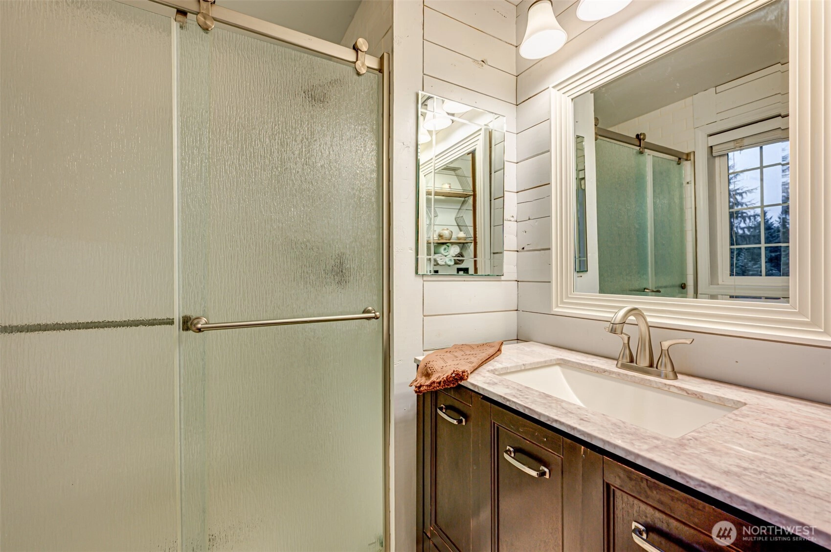 Welcome home! Beautifully maintained private acreage property with an open floor plan, LVP flooring, granite counters, and custom cabinets. The kitchen features stainless Frigidaire double ovens, convection microwave, and a farmhouse sink. Huge main-floor primary suite addition completed in 2023 with vaulted ceilings, dual-sided fireplace, heated tile floors, freestanding tub, and curbless shower. Upstairs offers four more bedrooms, including a second ensuite. Outside, enjoy the oversized covered patio, covered BBQ area, organic deer-proof gardens, 3-car garage, private well, and generator plug. Just 15 min to Battleground, and 40 minutes to PDX.