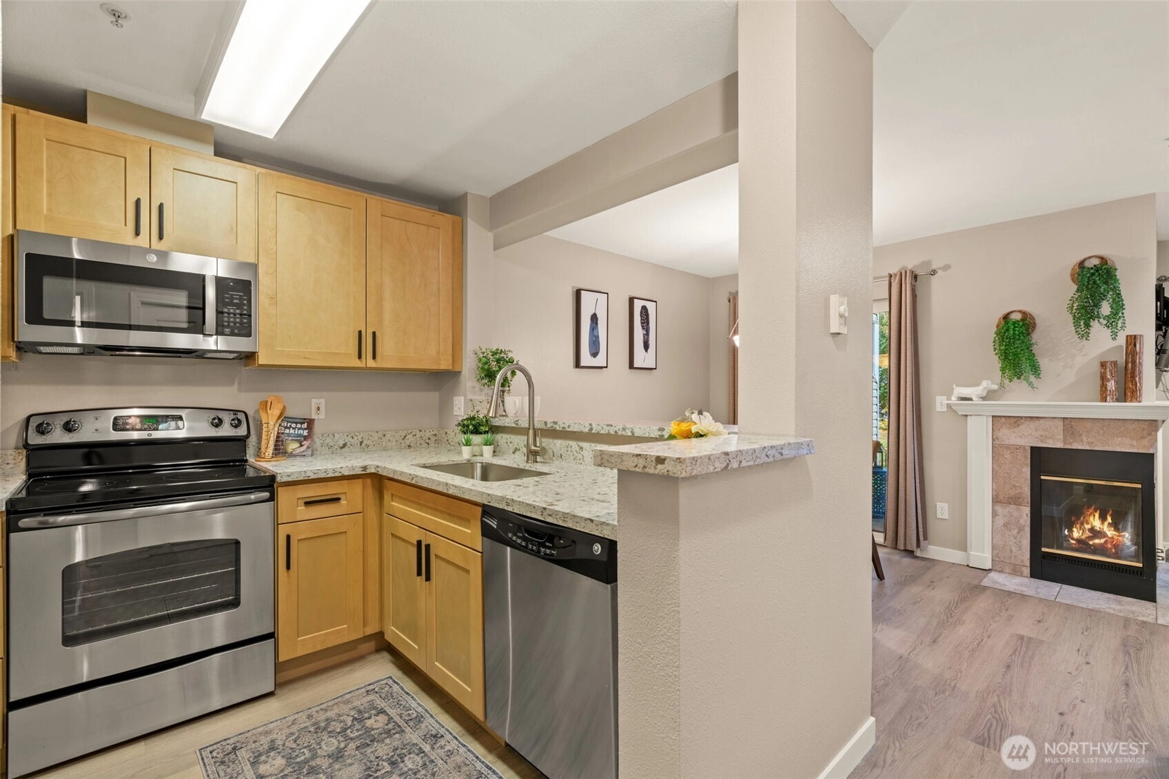 Welcome to Montreux! Nestled against a lush greenbelt on the northern slopes of Cougar Mountain, this peaceful ground-level condo offers the perfect blend of nature & convenience. Enjoy miles of hiking trails, nearby Cougar Mountain Regional Wildland Park, Lake Sammamish, and Mountains to Sound Greenway. Inside, you'll discover new flooring, updated kitchen with new cabinets/countertops, dining area, spacious bedroom, cozy wood-burning fireplace, and peek-a-boo lake view. Don't miss the covered patio, extra storage room, and covered parking. NO RENTAL CAP, ideal for investors or homeowners alike! Highly rated Issaquah schools, pet-friendly community, well-managed HOA, and easy freeway access with a short commute to Bellevue or Seattle.
