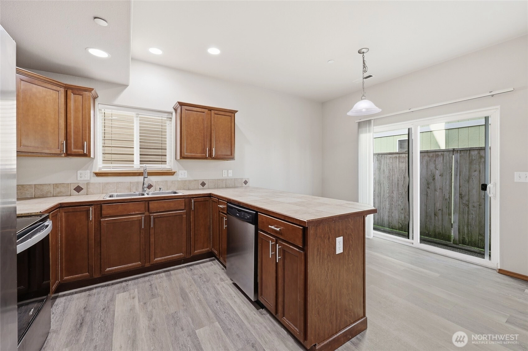 NEW EXTERIOR PAINT & updated pictures coming soon - Are you searching for a home that is near Frontier Village, local schools, shopping, dining and in a great location for commuting? If so, then please take a long look at this Eastgate Highland condo just off 91st Ave SE. This main living area is located on the ground floor with new flooring and updated appliances in kitchen, a eating area and a half bath. Upstairs features a secondary living area, laundry (washer & dryer included), primary bedroom with an suite and 2 additional bedrooms and additional bath. Enjoy the parking in a private garage or use the additional space for storage. This home is great for anyone looking to start owning or investors due to its low maintenance living.