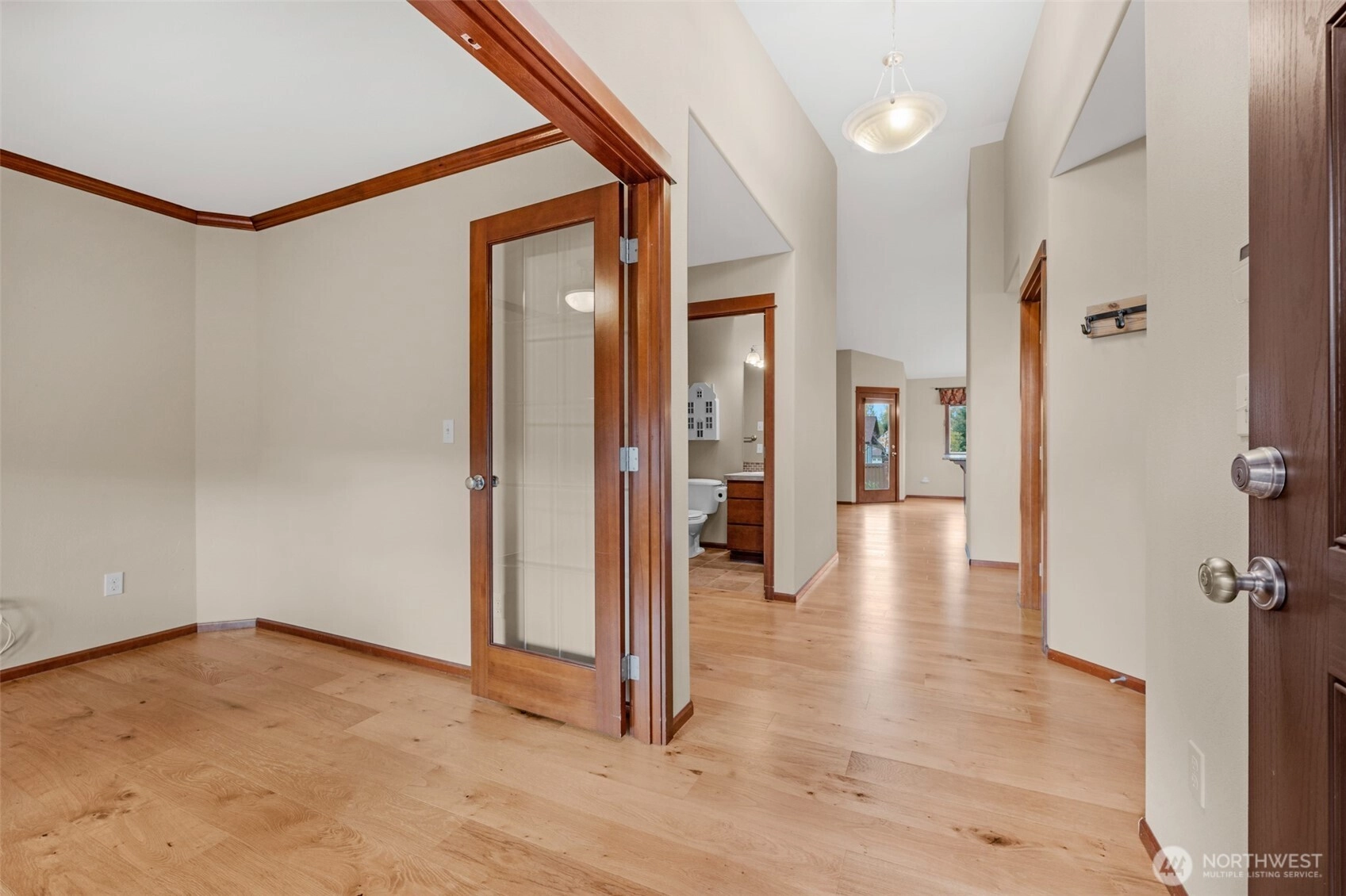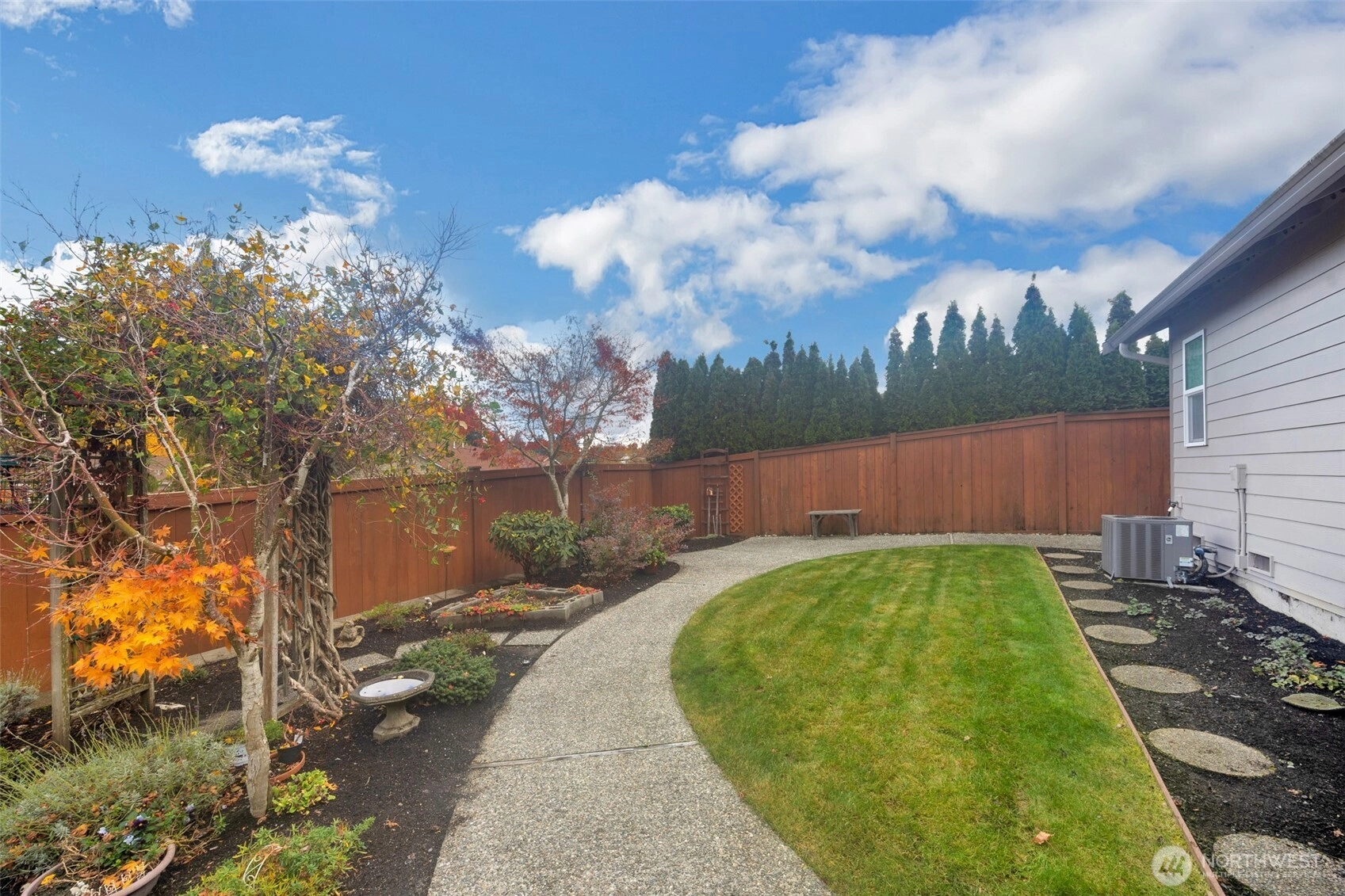Welcome to this beautifully maintained great room rambler on a private Mill Creek cul-de-sac. Enjoy laminated hardwood floors, vaulted ceilings, a gas fireplace, & glass doors to a serene patio. The well-designed kitchen & living areas flow seamlessly, while French doors open to a versatile den ideal for a home office or retreat. The primary en suite offers a soaking tub, separate shower, & dual sinks, plus two additional bedrooms for guests or hobbies. The landscaped yard & spacious deck are perfect for relaxing or entertaining. Enjoy year-round comfort with a brand-new gas furnace, sprinkler system, air conditioning, & the efficiency of natural gas. This charming rambler has outstanding curb appeal & is the perfect place to call home.
