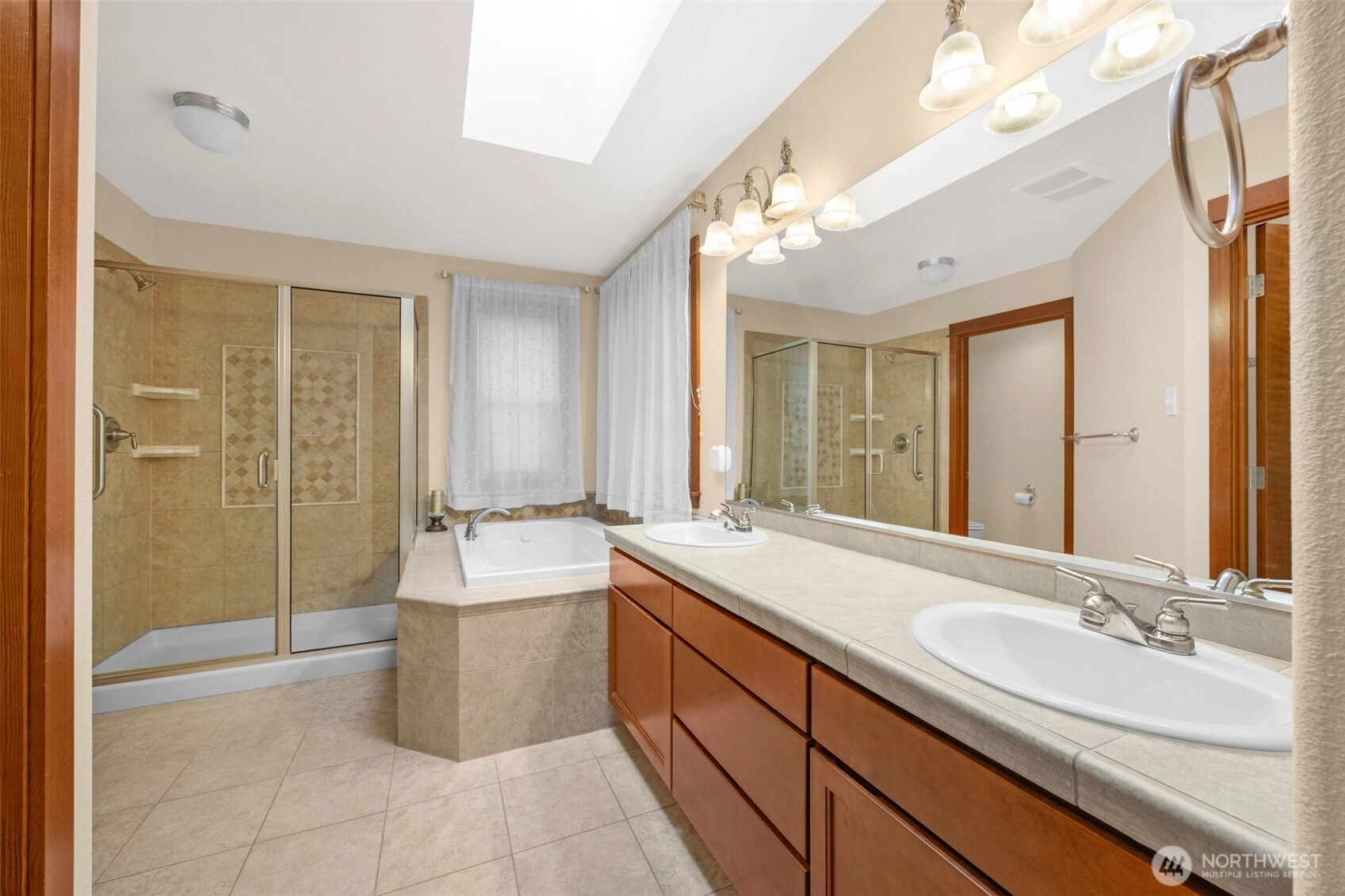 Bath Off Primary Ceiling Fan(s) Double Pane/Storm Window Dining Room Fireplace French Doors High Tech Cabling Security System Skylight(s) Sprinkler System Vaulted Ceiling(s) Walk-In Closet(s) Water Heater