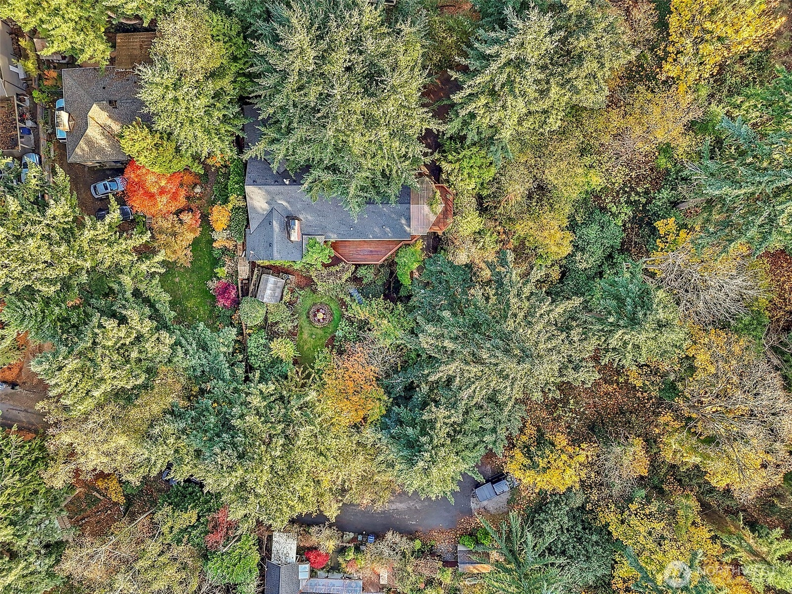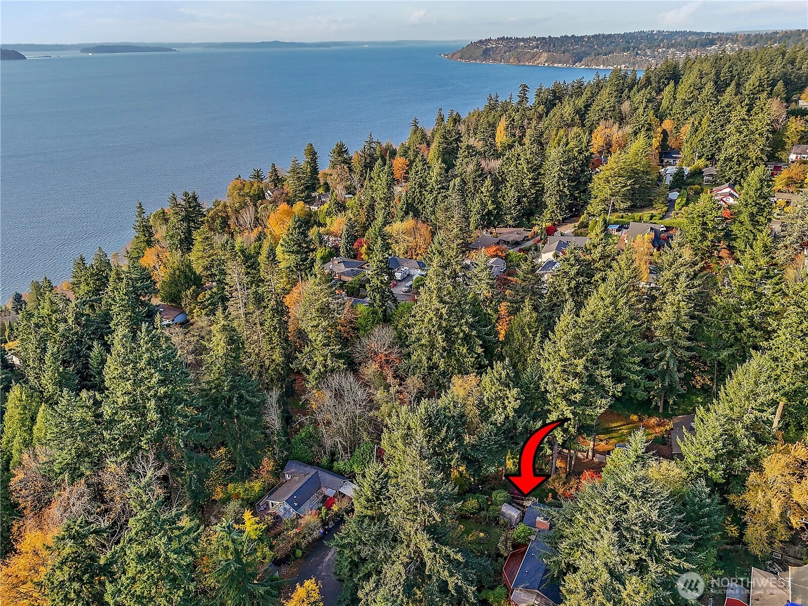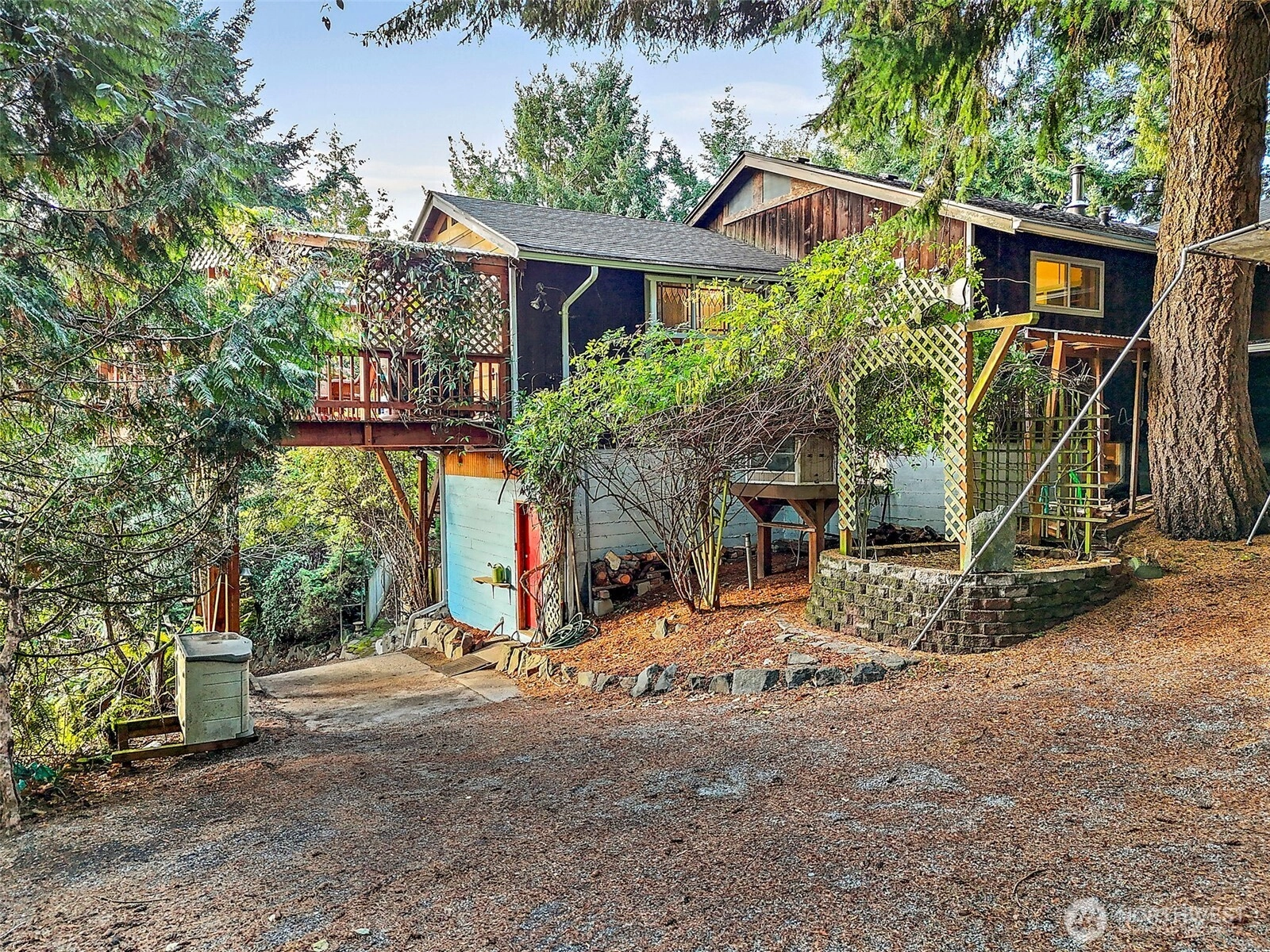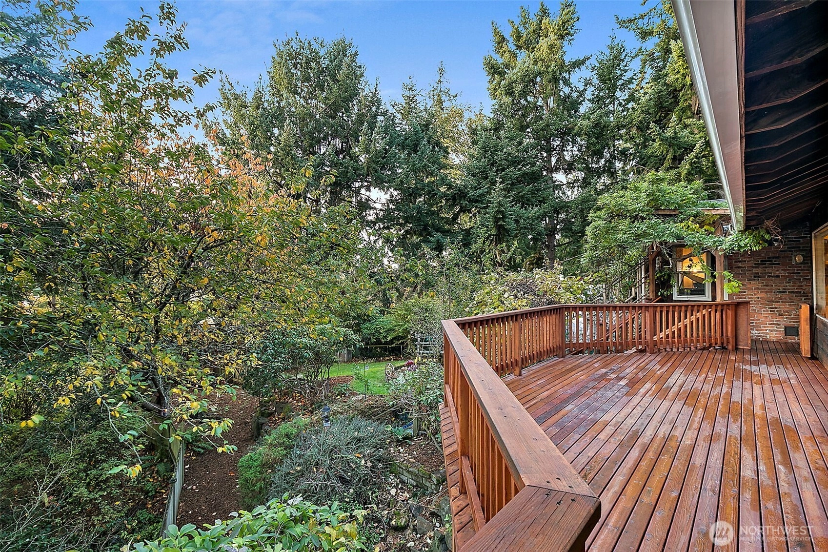 Privacy abounds on this rare double-sized lot in coveted Seahurst! Tucked at the end of a quiet cul-de-sac, this 3 bedroom, 1.5 bath mid-century modern retreat feels like living in a treehouse-surrounded by a lush greenbelt & wrap-around deck. Showcasing beautiful mid-century wood built-ins, wood burning stove + 2 fireplaces, glimpses of the Puget Sound, a new roof ('23), & a fully fenced gardener's dream w/magical landscape. The lower level offers full-height ceilings, flex/bonus rm ideal for office or play, plus huge storage/workshop area. Easy access to downtown Burien shops, the beach, dining & Seahurst waterfront park. À well-maintained vintage gem offering space, serenity & style.
