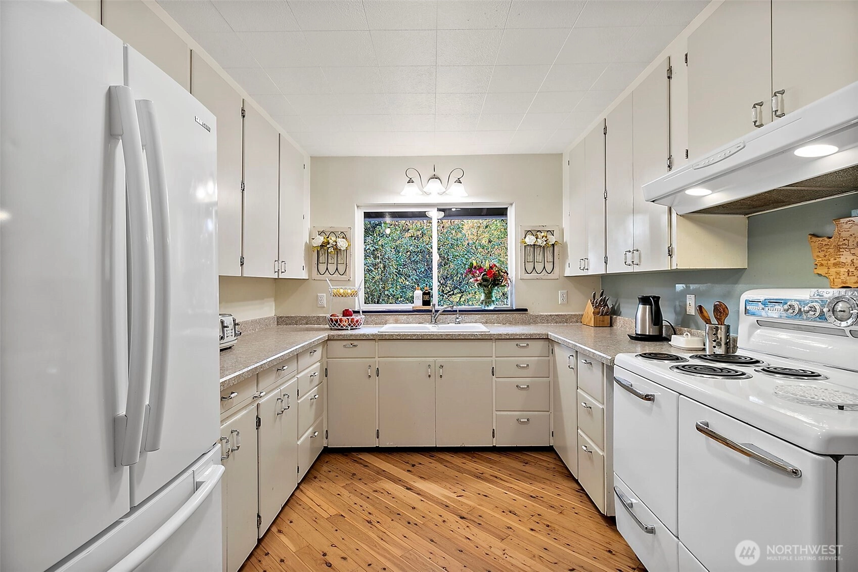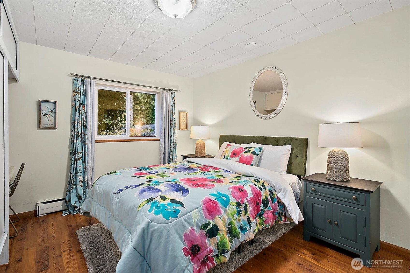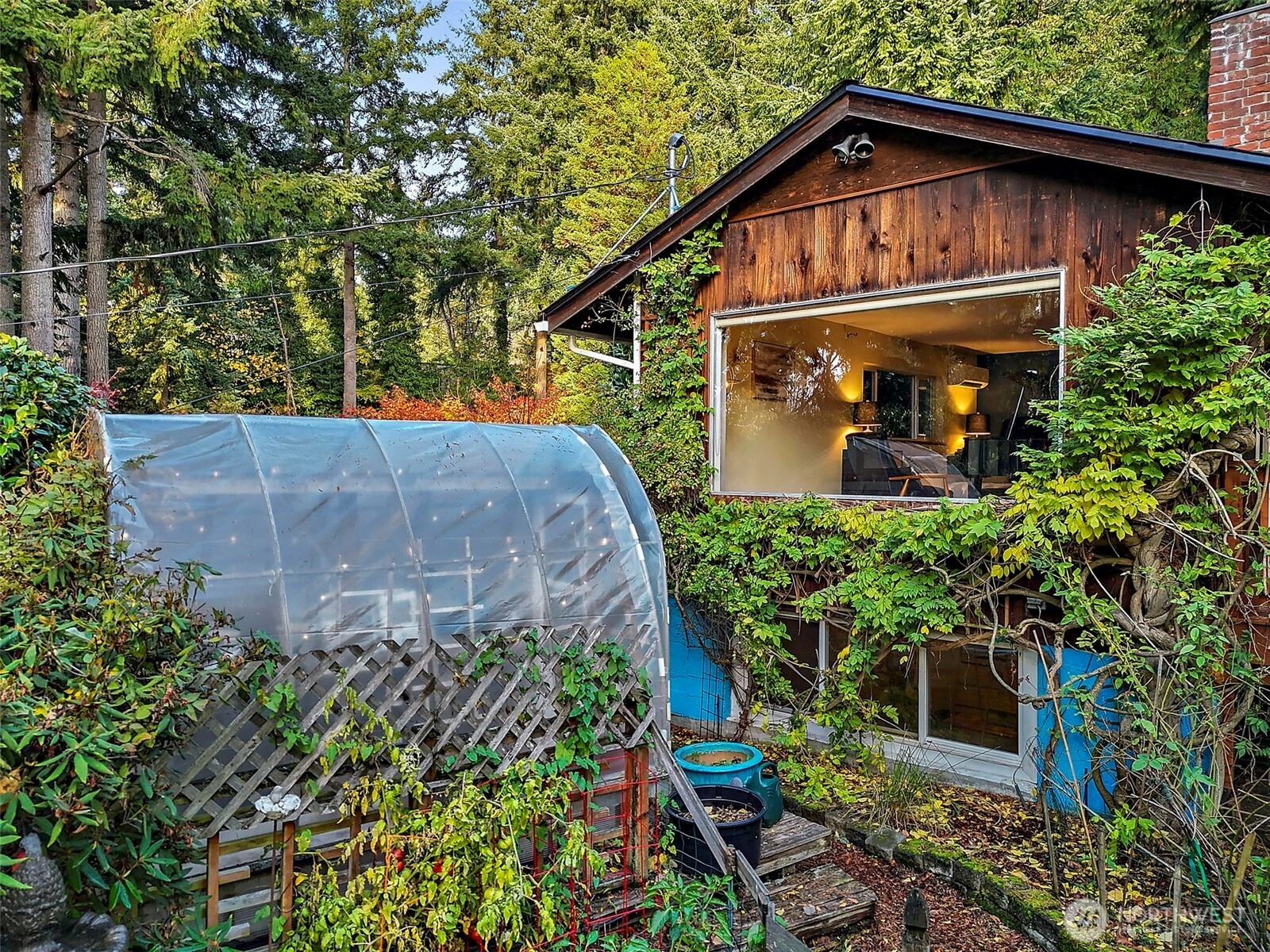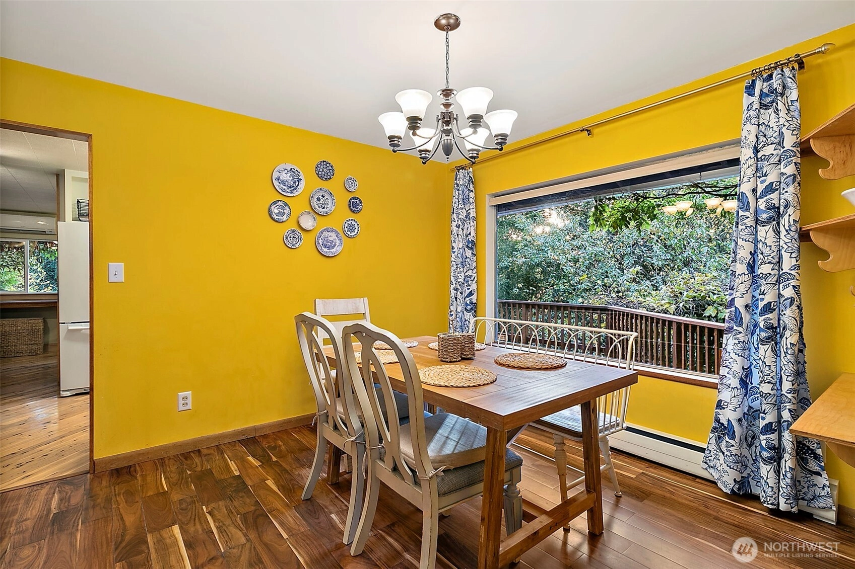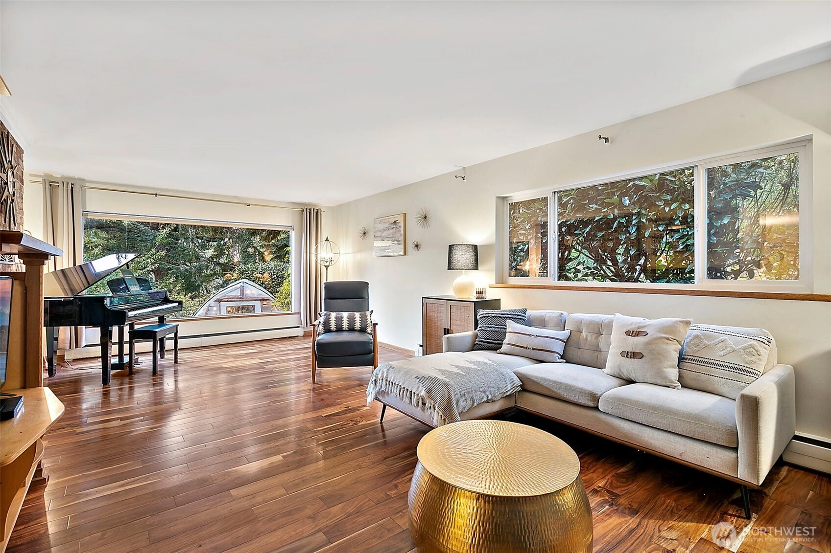 Privacy abounds on this rare double-sized lot in coveted Seahurst! Tucked at the end of a quiet cul-de-sac, this 3 bedroom, 1.5 bath mid-century modern retreat feels like living in a treehouse-surrounded by a lush greenbelt & wrap-around deck. Showcasing beautiful mid-century wood built-ins, wood burning stove + 2 fireplaces, glimpses of the Puget Sound, a new roof ('23), & a fully fenced gardener's dream w/magical landscape. The lower level offers full-height ceilings, flex/bonus rm ideal for office or play, plus huge storage/workshop area. Easy access to downtown Burien shops, the beach, dining & Seahurst waterfront park. À well-maintained vintage gem offering space, serenity & style.